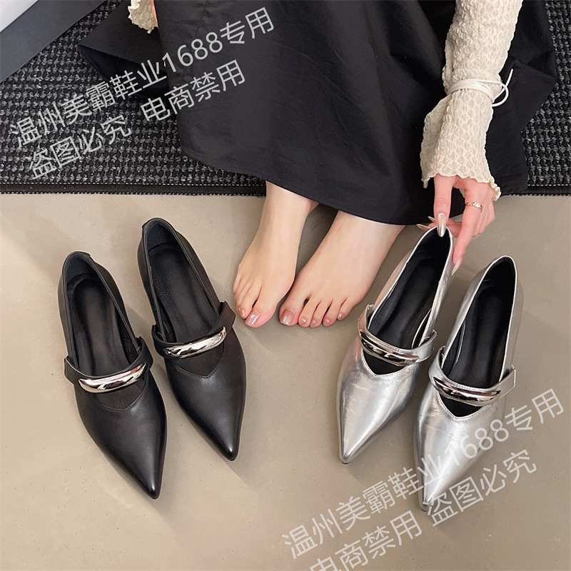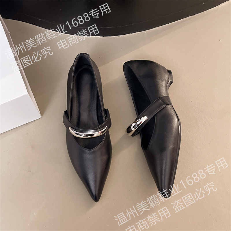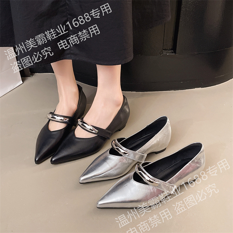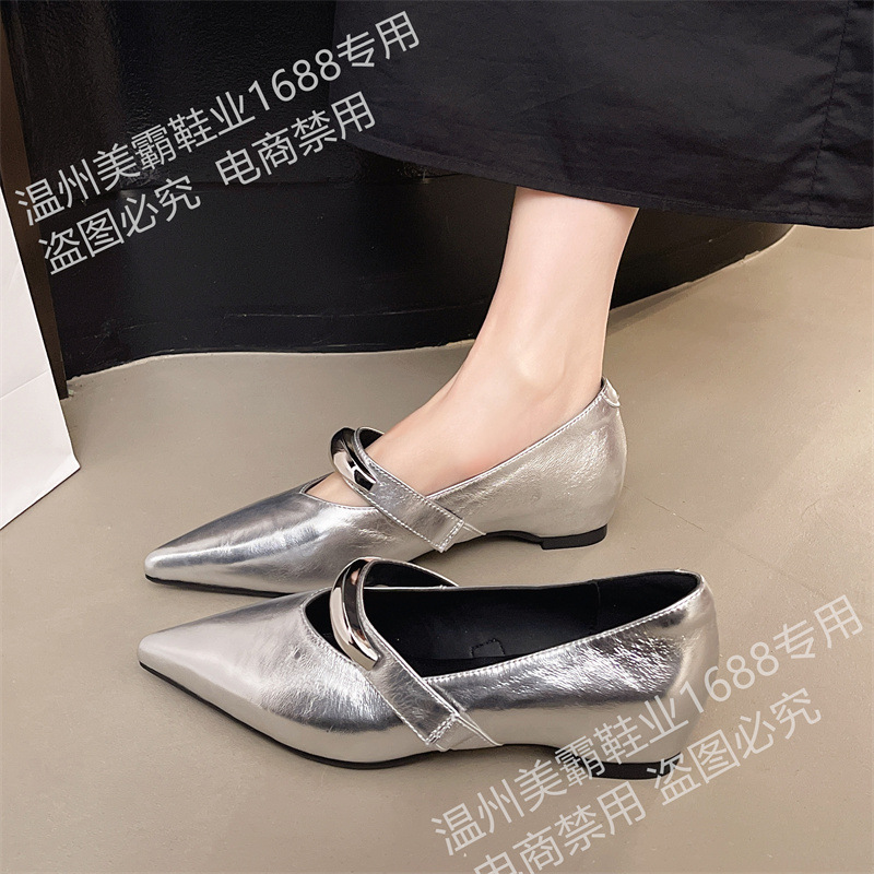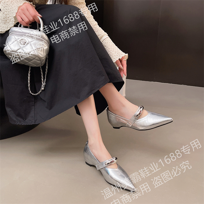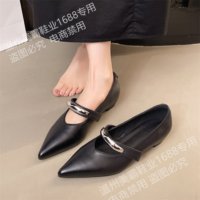 탑 레이어 소 가죽 작은 신발 여성의 2025 봄과 여름 새로운 가죽 뾰족한 금속 버클 높이 증가 여성 신발스토어 가기