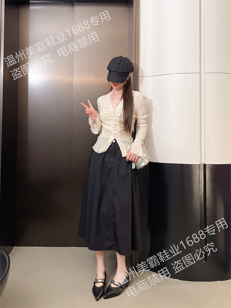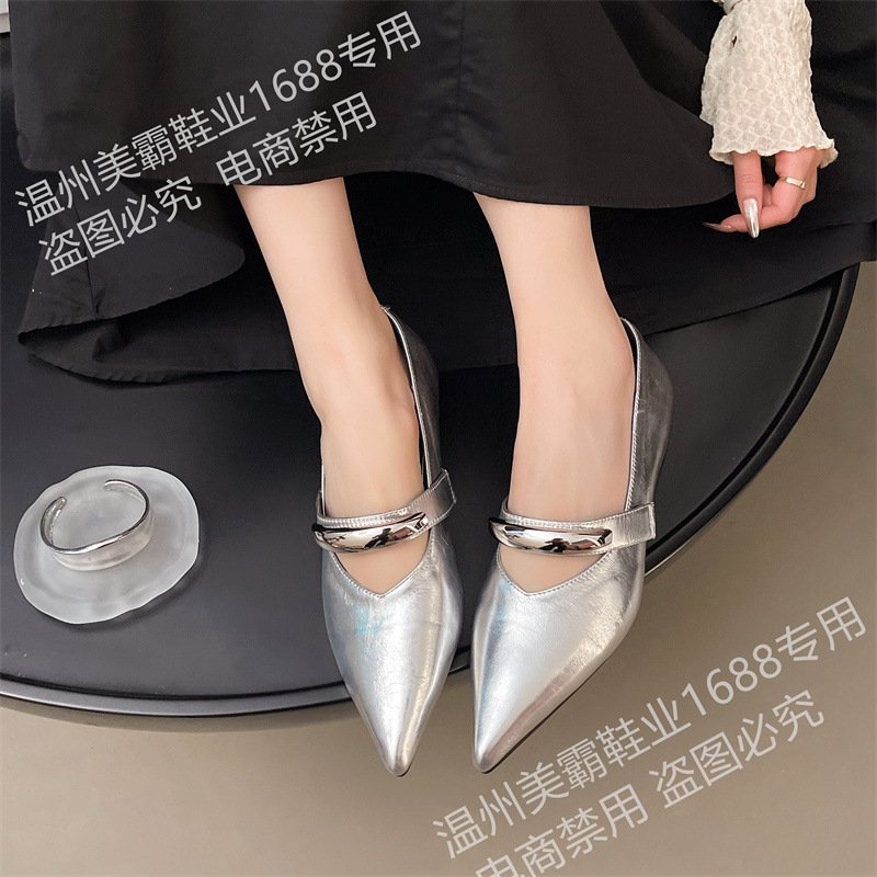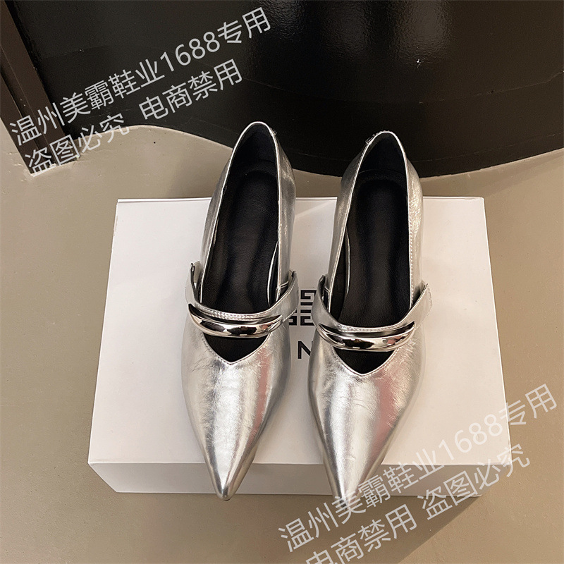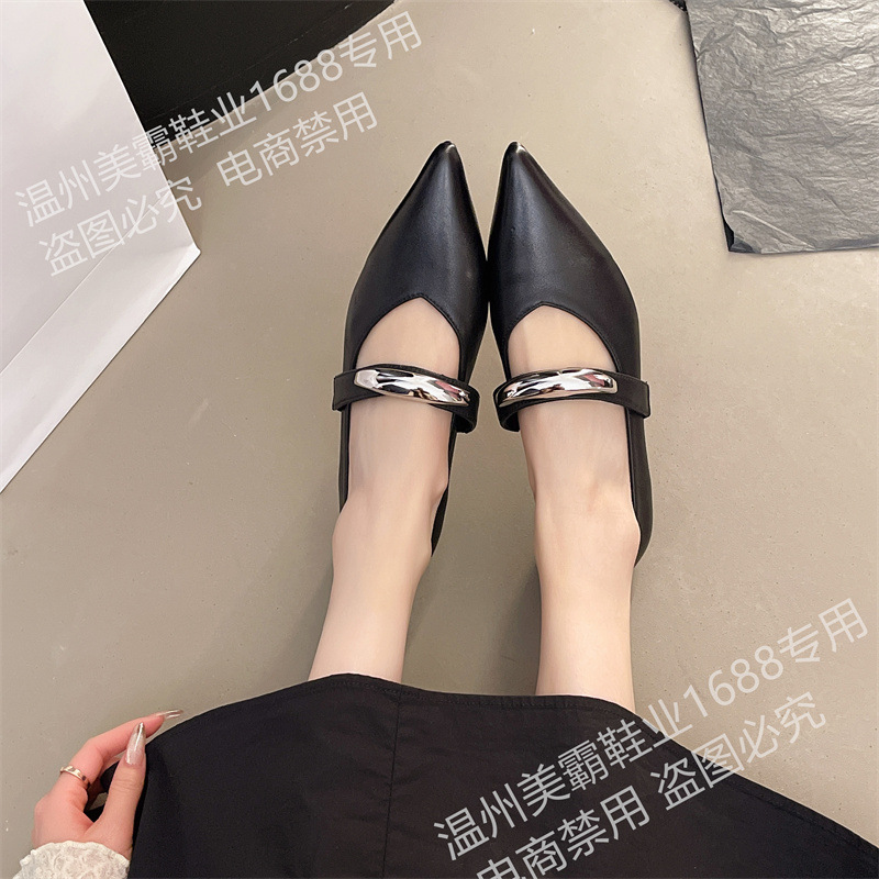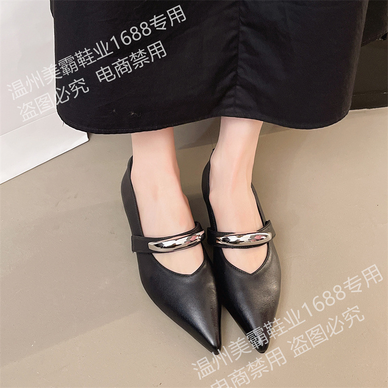 탑 레이어 소 가죽 작은 신발 여성의 2025 봄과 여름 새로운 가죽 뾰족한 금속 버클 높이 증가 여성 신발스토어 가기