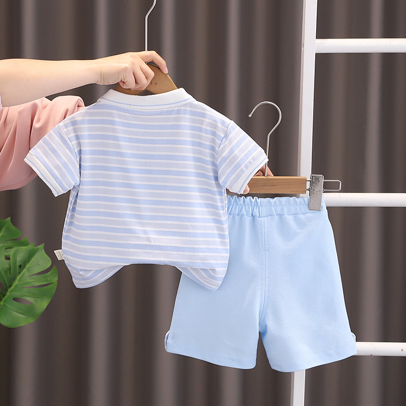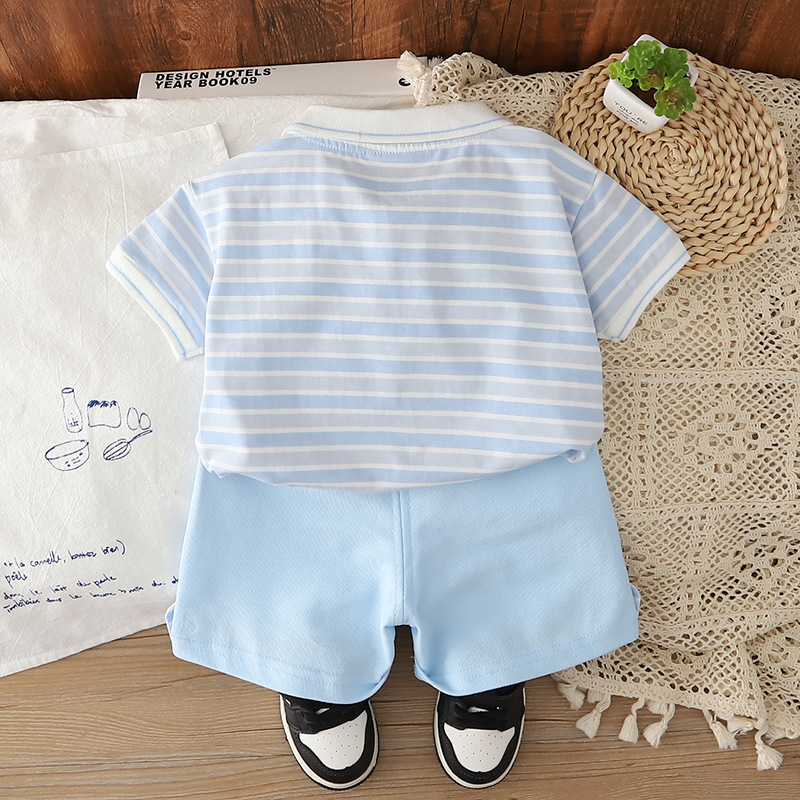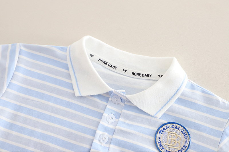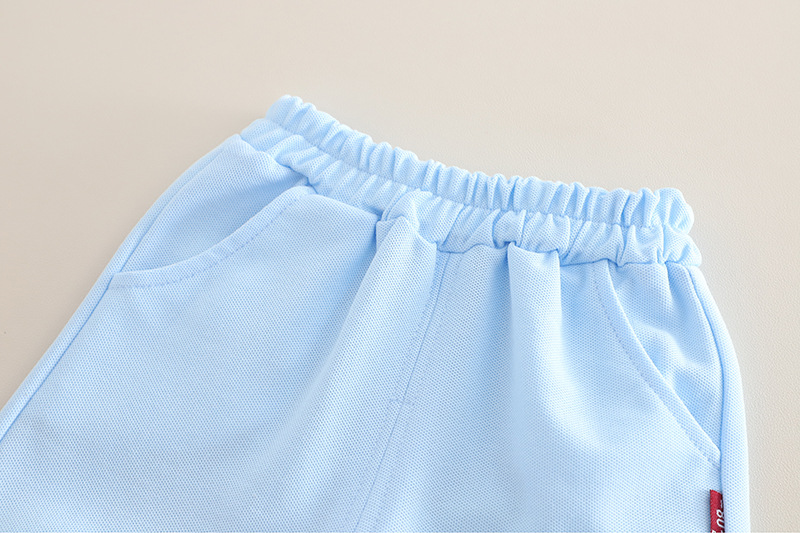 2025년 여름 어린이 자수 라운드 라벨 서양식 라운드 넥 반바지 정장 유행 여름 소년 베이비 반팔 정장