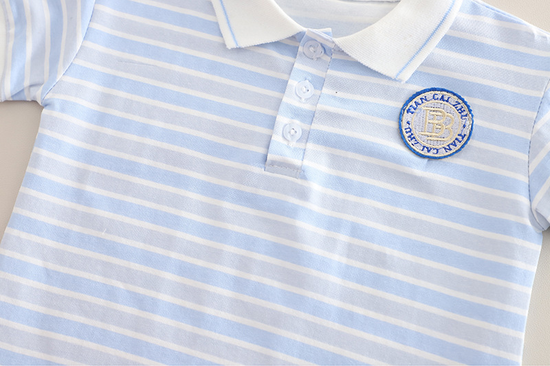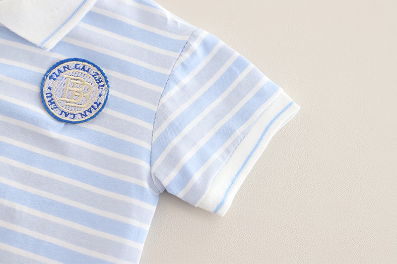 2025년 여름 어린이 자수 라운드 라벨 서양식 라운드 넥 반바지 정장 유행 여름 소년 베이비 반팔 정장스토어 가기