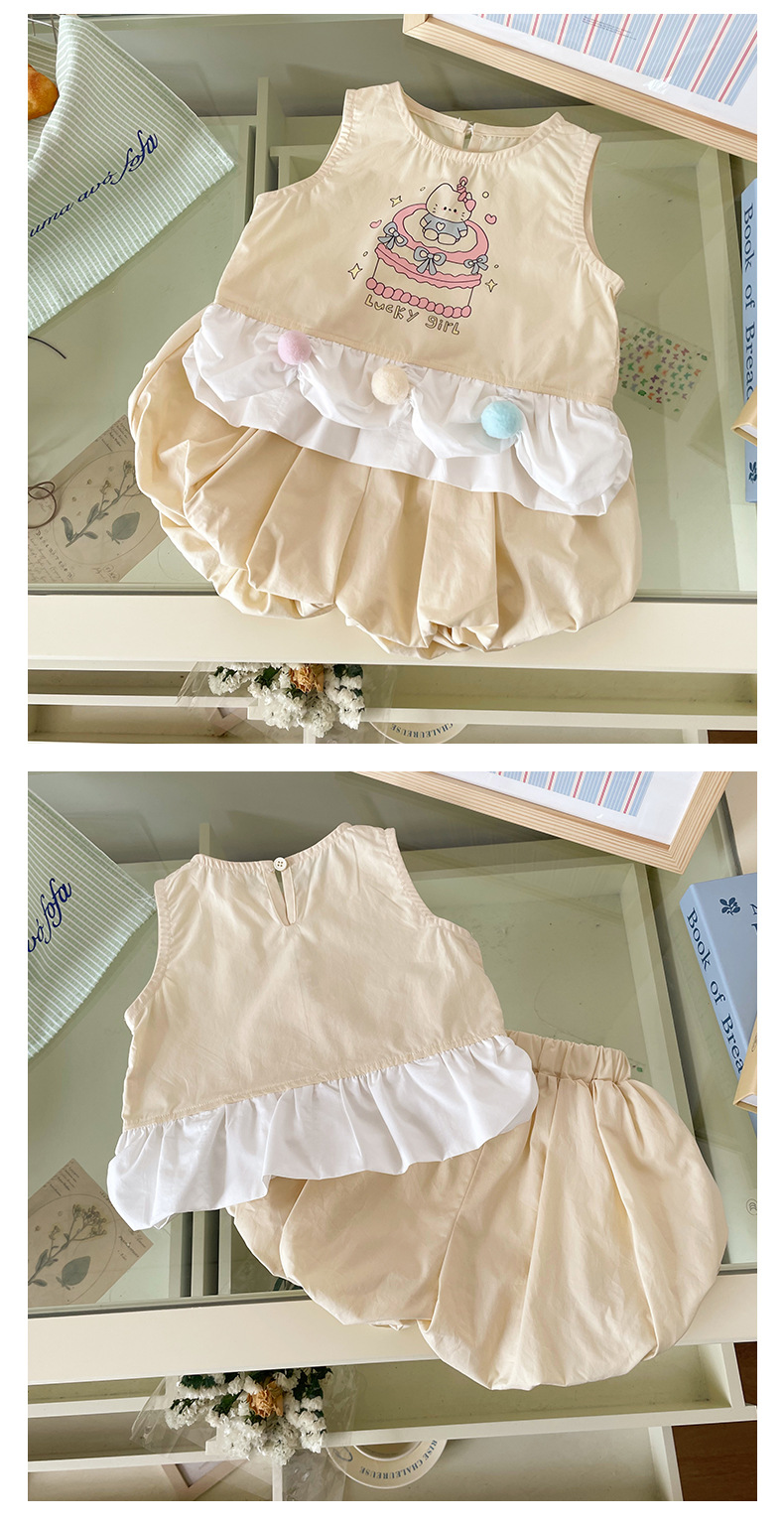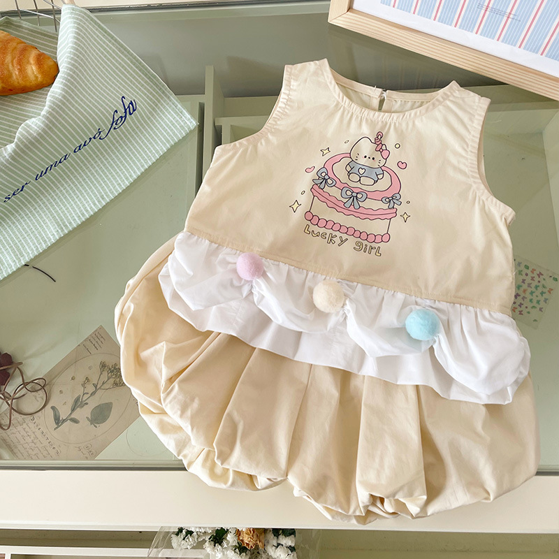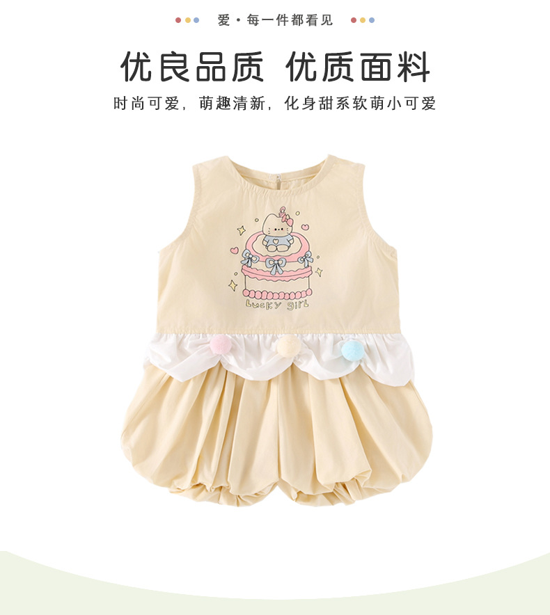 XT254021 소녀의 세트 202 여름 새로운 만화 고양이 패치 워크 조끼 최고 꽃 바지 투피스 세트스토어 가기