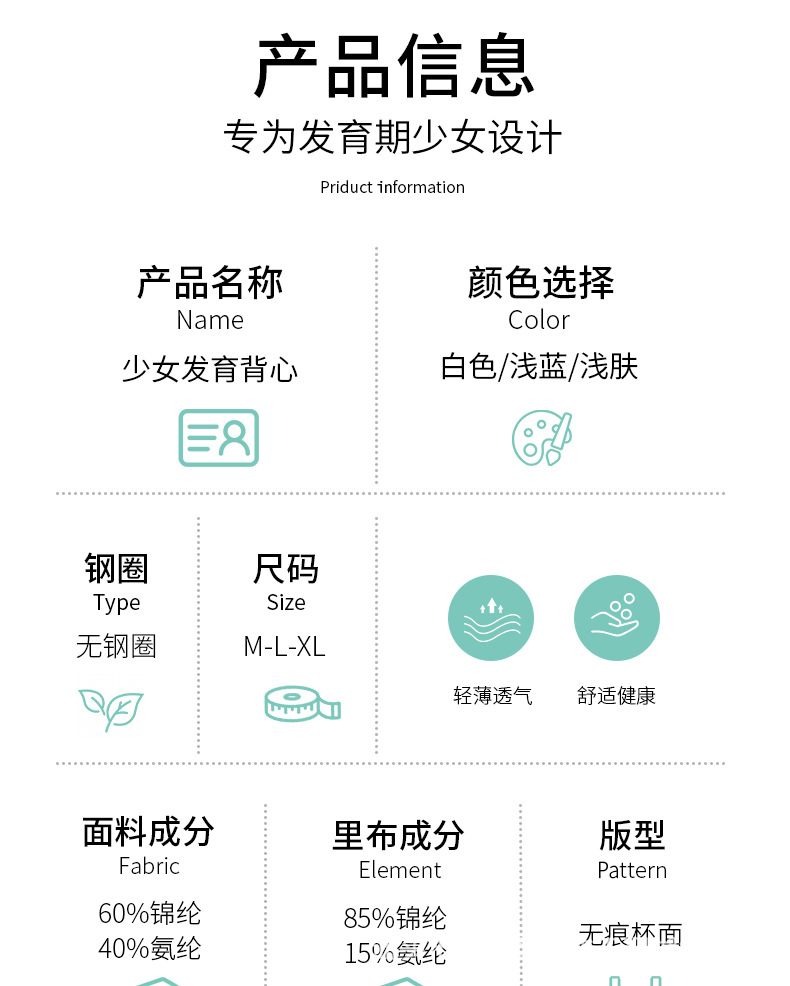 여아 속옷, 중학생 및 고등학생, 사춘기 여아, 아동 조끼, 스포츠 충격 방지 브라