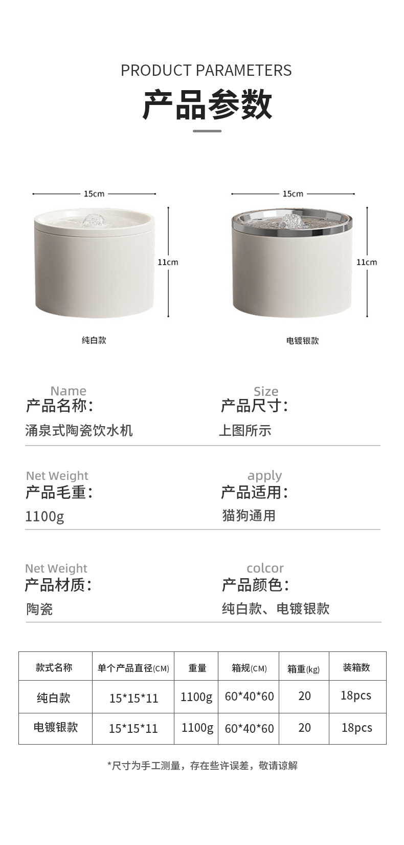 고양이 물 디스펜서 자동 순환 세라믹 애완 동물 물 피더 흐르는 물 침묵 물 마시는 장치 개 물 마시는 장치