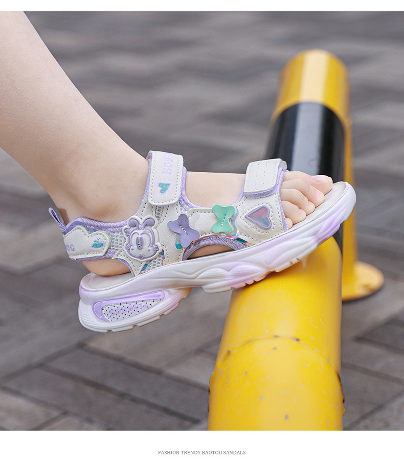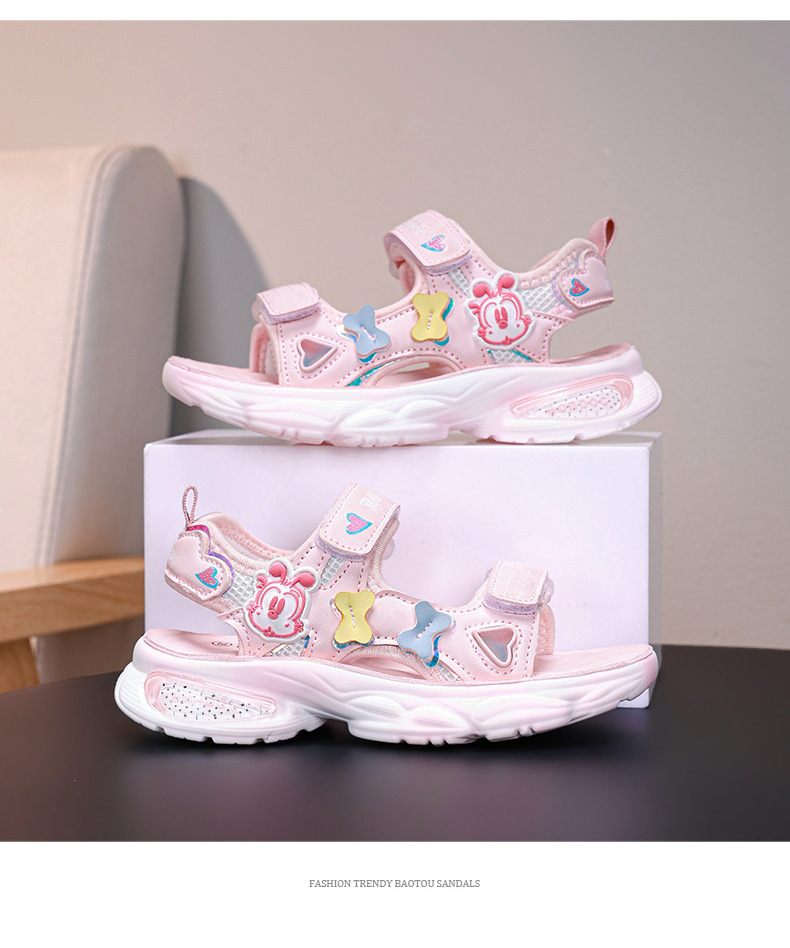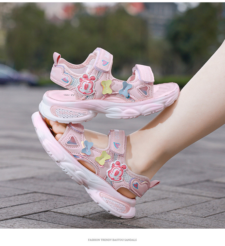 바부 콩 소녀 샌들 여름 새로운 소녀 공주 스타일 캐주얼 소프트 단독 비치 신발 핑크 귀여운 멋진 신발스토어 가기