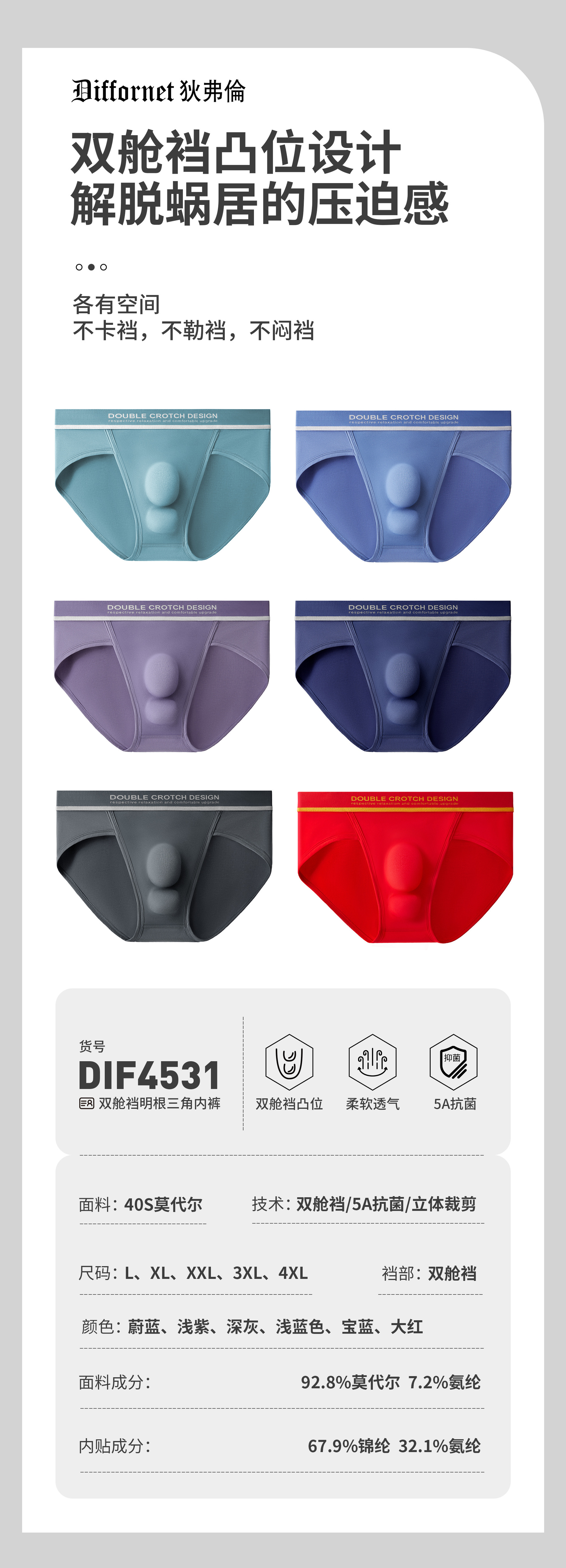 모달 남성 속옷 더블 볼록 팬티 남성 삼각 팬티 중간 허리 항균 피부 친화적 부드러운 얇은 비즈니스 스포츠 팬티스토어 가기