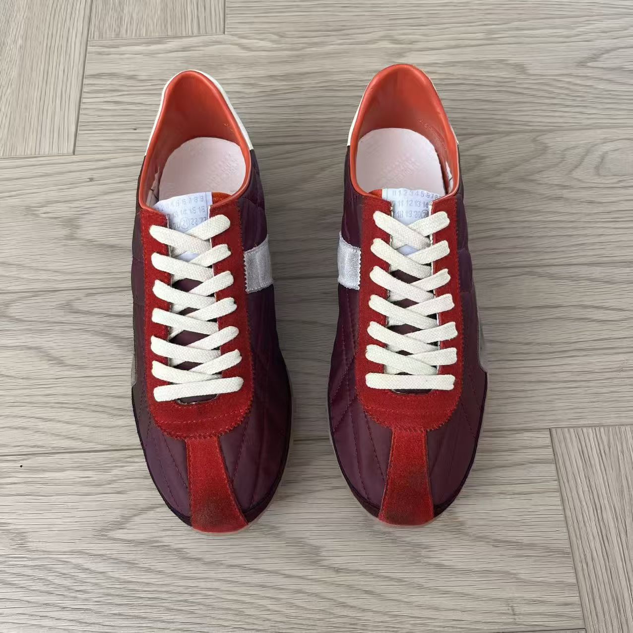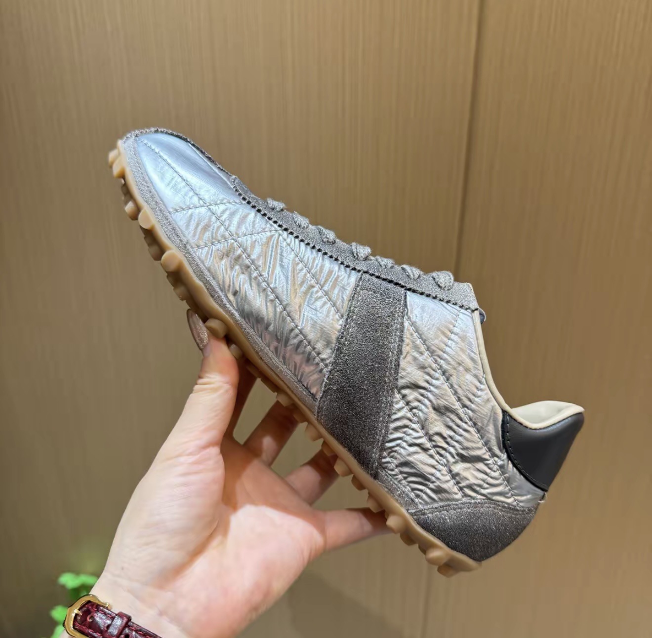 mm*6 레이싱 슈즈, 천연 가죽 라운드 토, 컬러 블록 플랫 솔, 레이스업, 독일군 트레이닝 슈즈, 아간 스타일 스포츠 캐주얼 천 신발, 여성용 독일군 트레이닝 슈즈스토어 가기