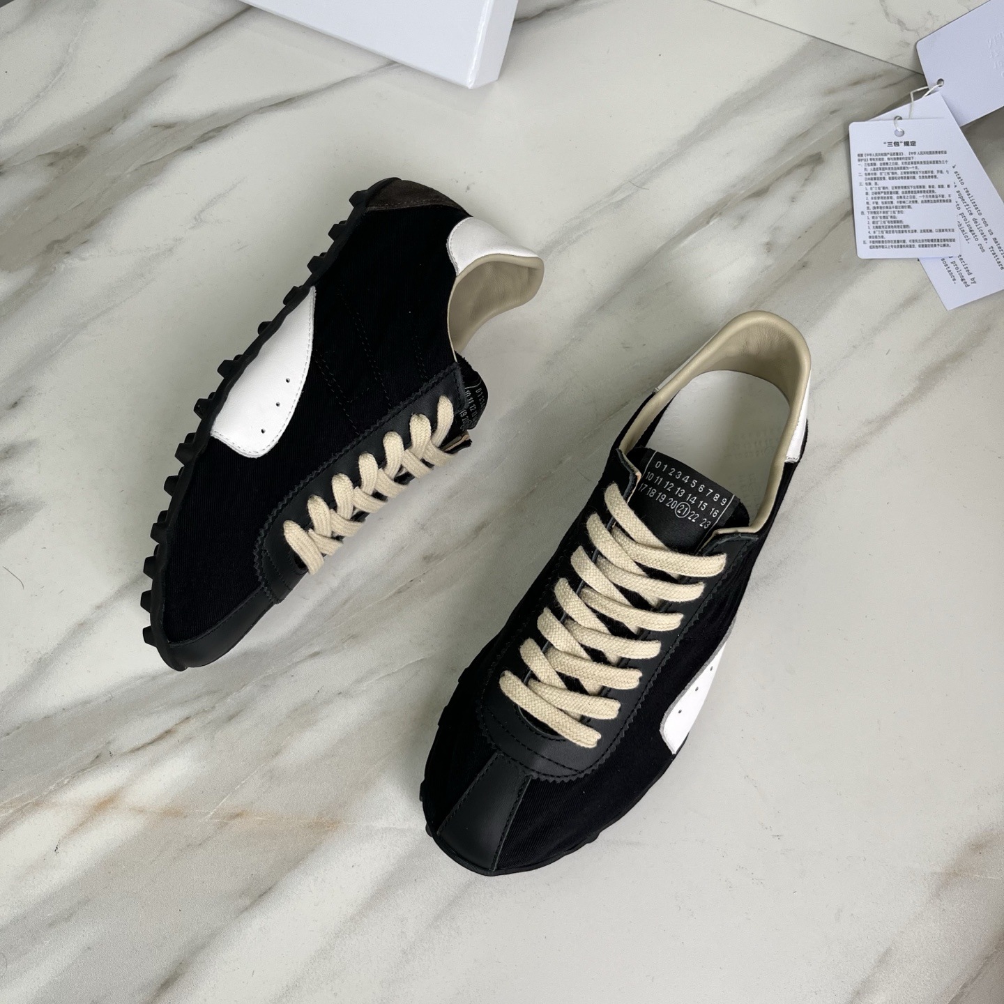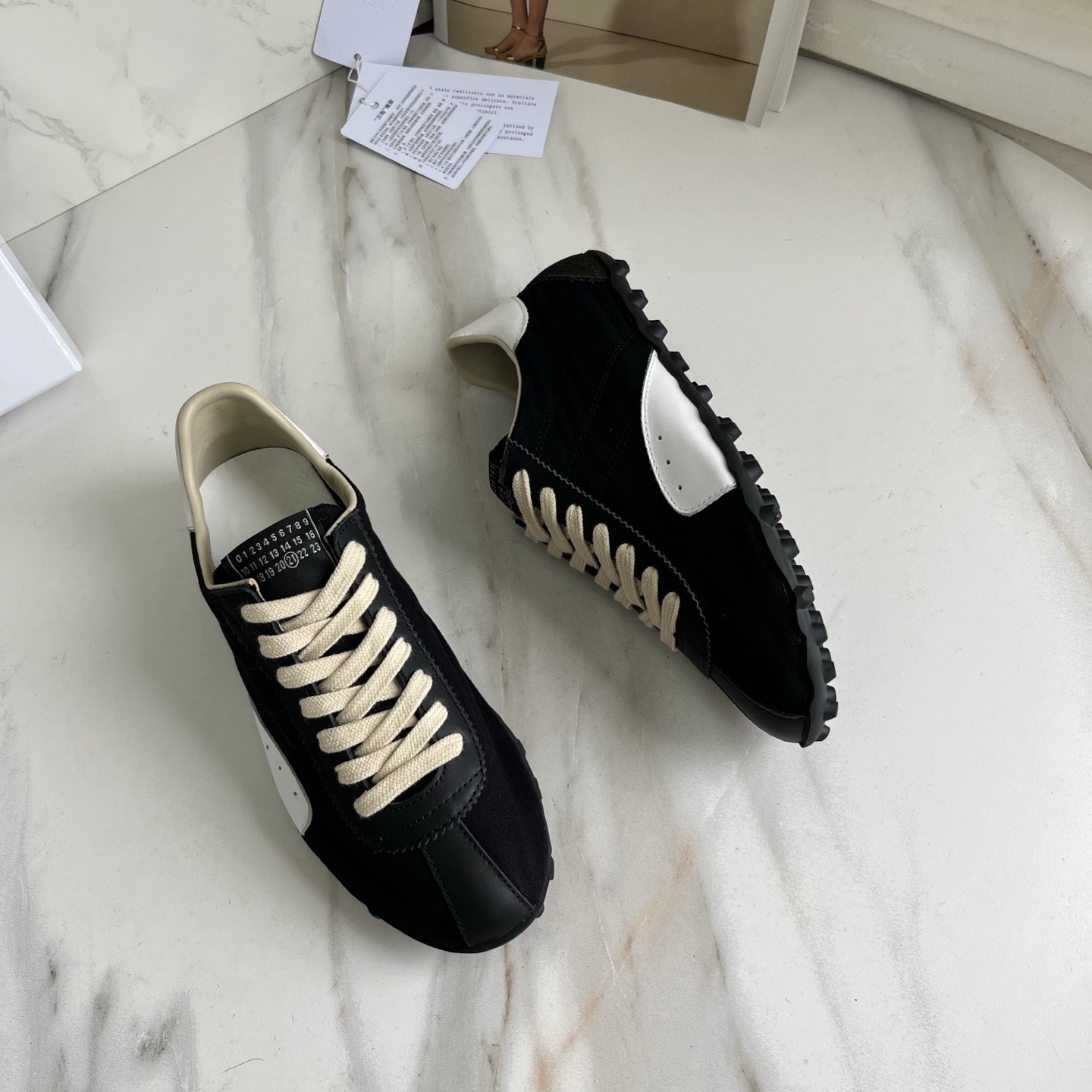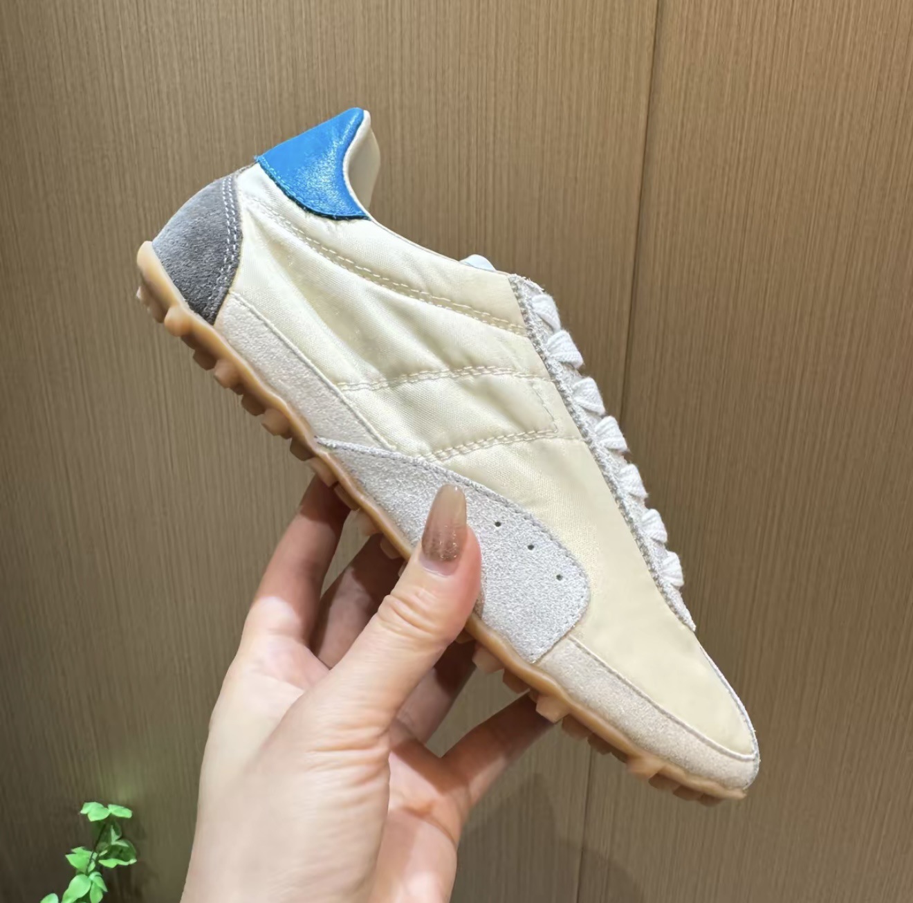 mm*6 레이싱 슈즈, 천연 가죽 라운드 토, 컬러 블록 플랫 솔, 레이스업, 독일군 트레이닝 슈즈, 아간 스타일 스포츠 캐주얼 천 신발, 여성용 독일군 트레이닝 슈즈