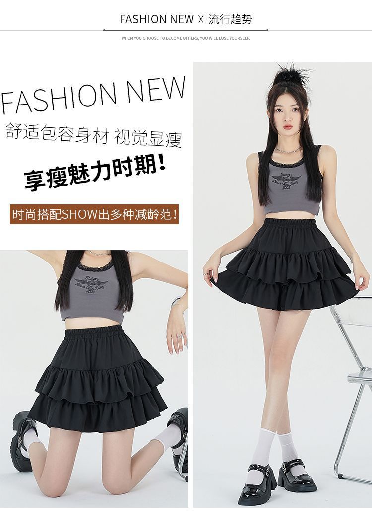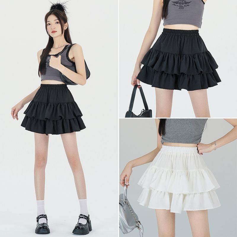 2025 새로운 봄과 여름 케이크 치마 여성 높은 허리 슬리밍 연꽃 잎 퍼프 스커트 작은 연잎 반쪽 치마스토어 가기