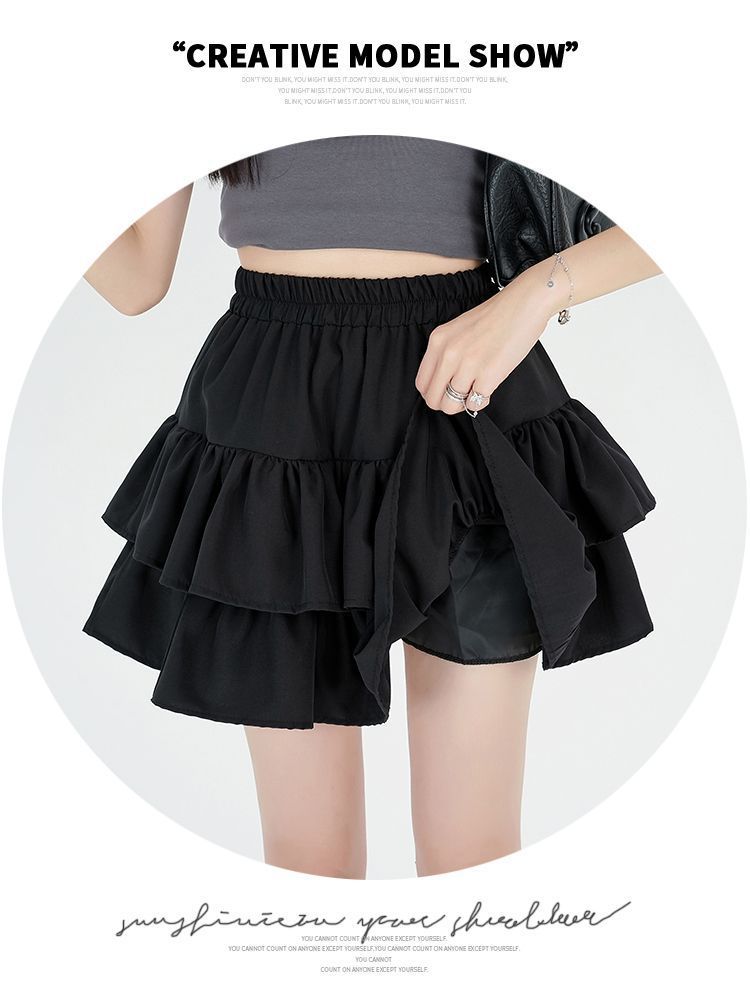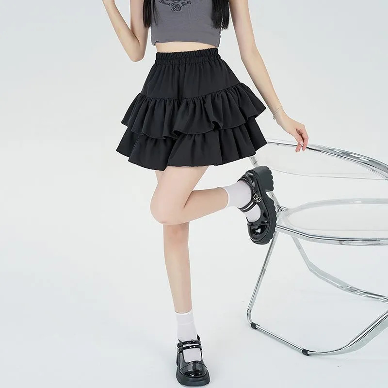 2025 새로운 봄과 여름 케이크 치마 여성 높은 허리 슬리밍 연꽃 잎 퍼프 스커트 작은 연잎 반쪽 치마