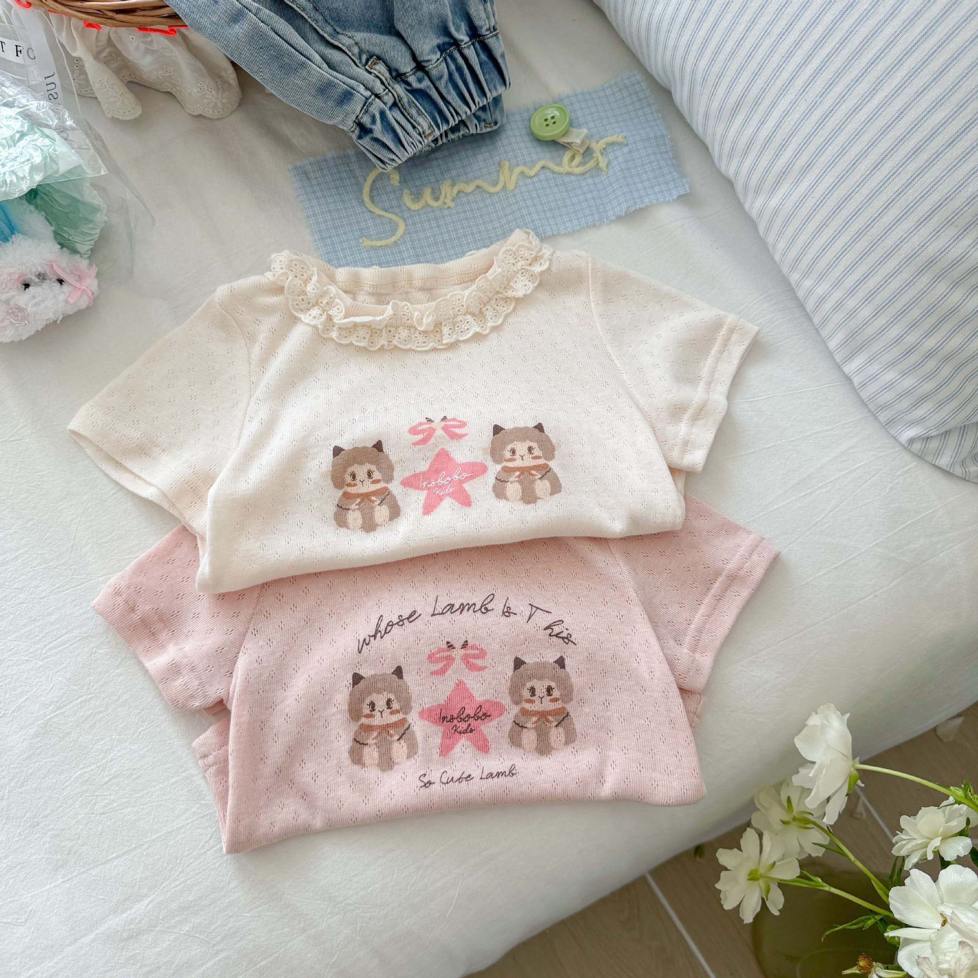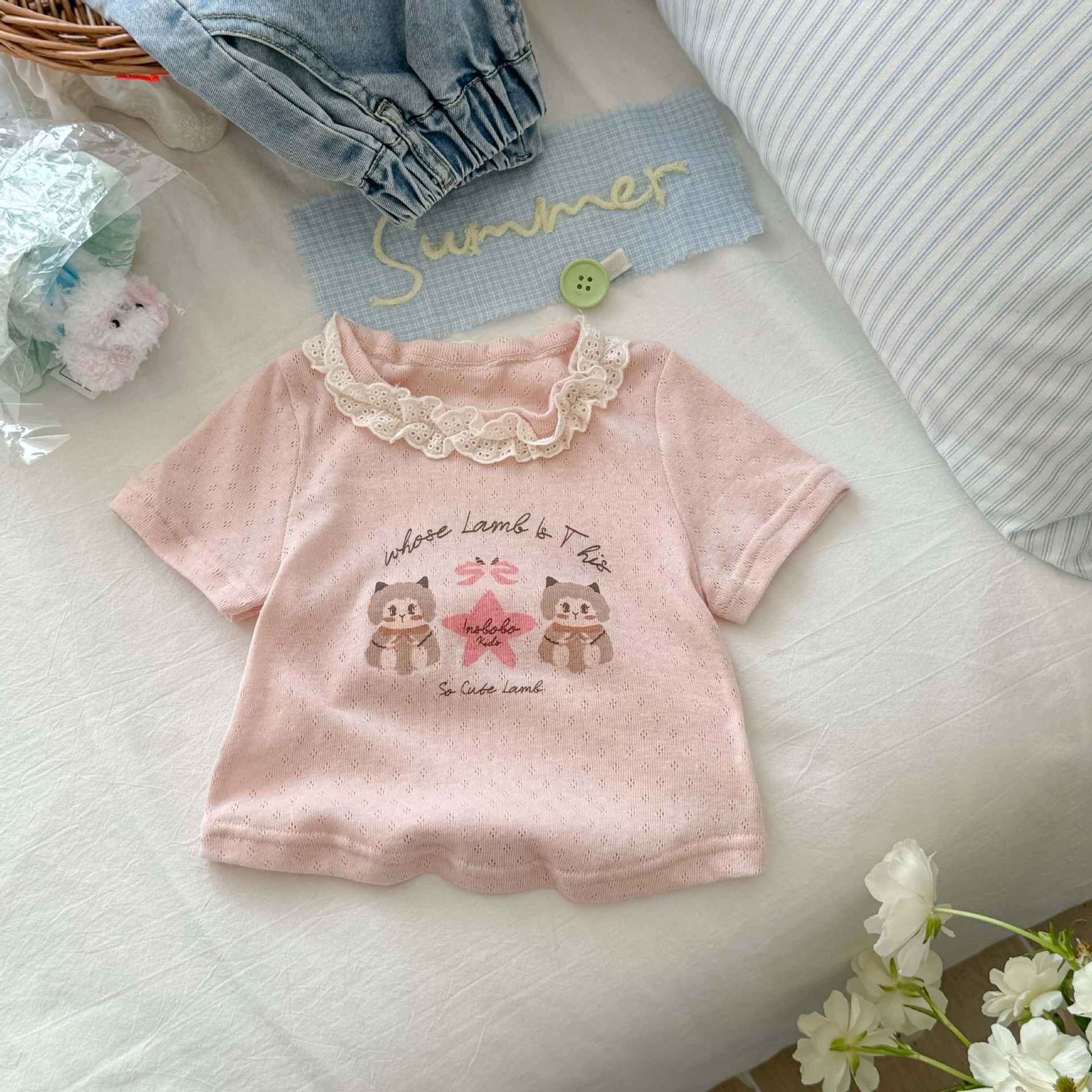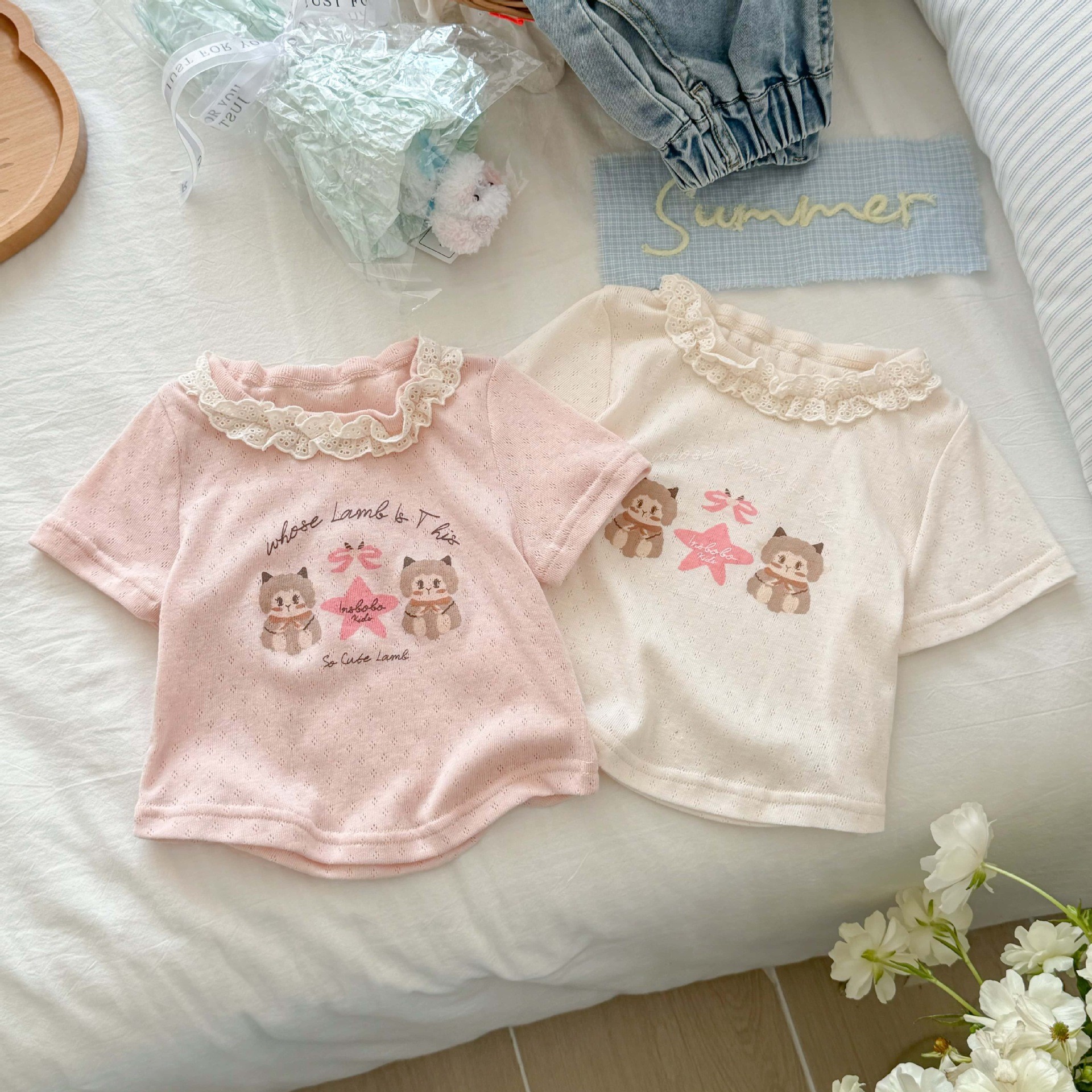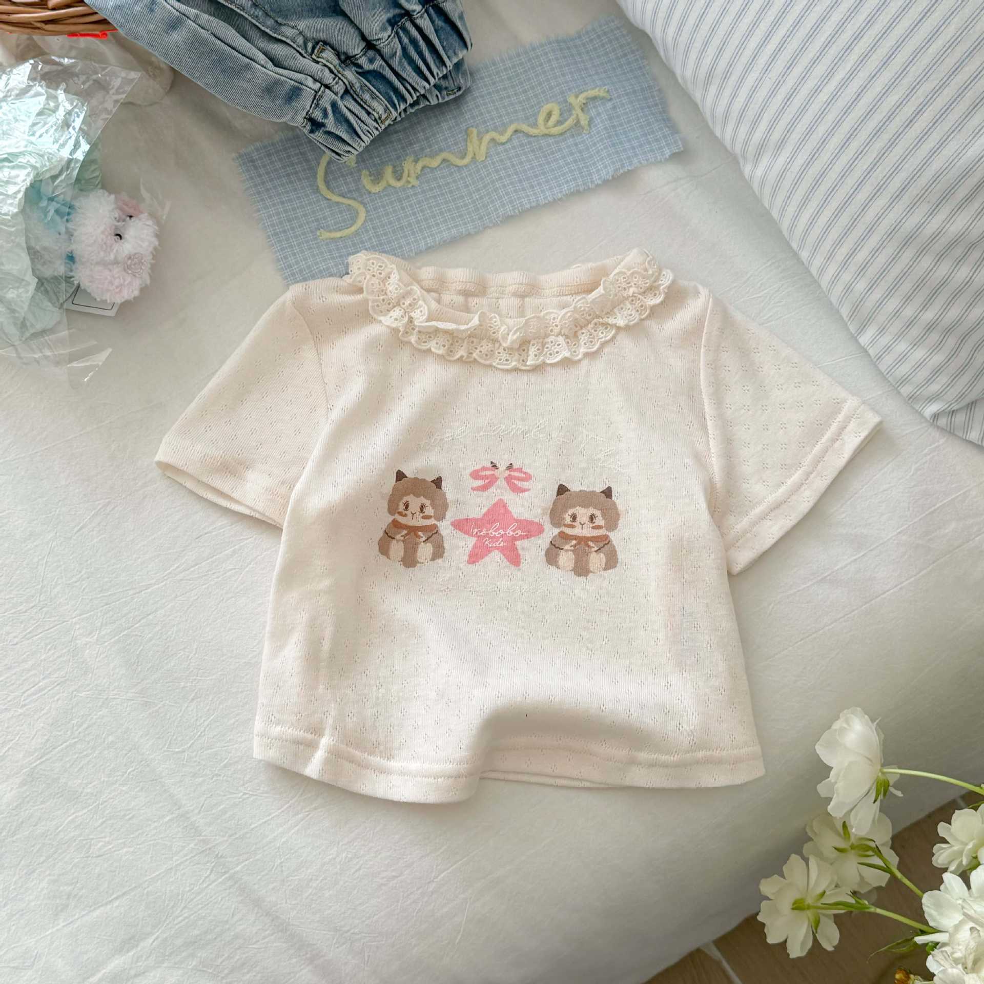 Tong Xingyuan 아동복 소녀 반팔 티셔츠 여름 새 어린이 여름 탑 여성 바오 외국인 스타일 레이스베이스 셔츠 T스토어 가기