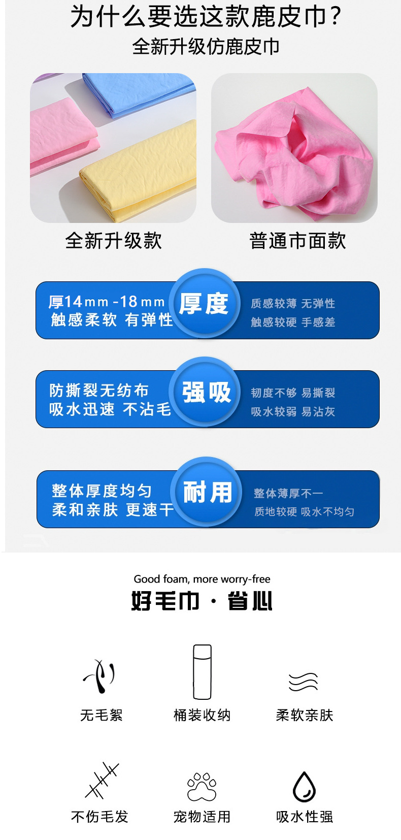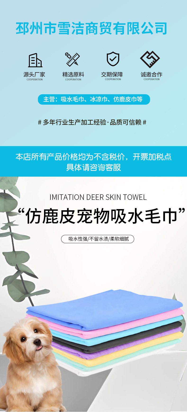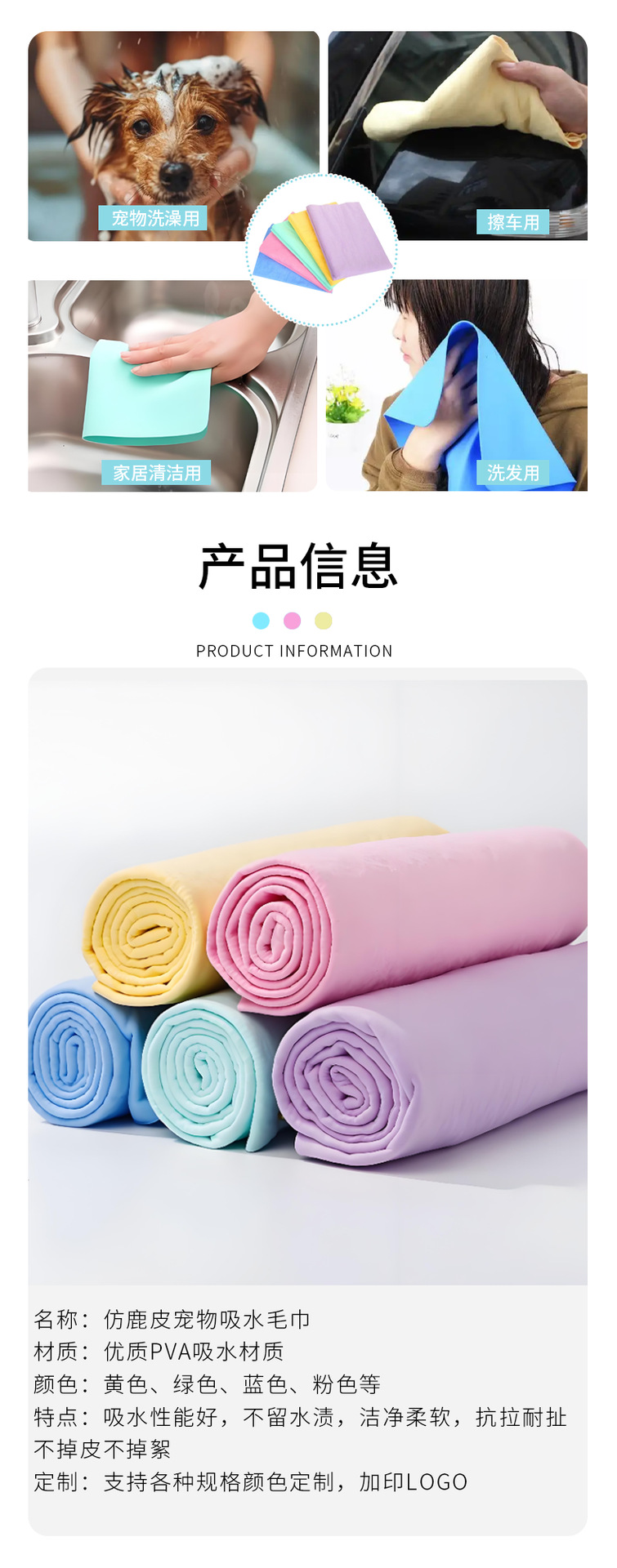 국경 간 새로운 PVA 애완 동물 수건 만화 사슴 가죽 수건 빠른 건조 흡수성 개 수건 고양이 청소 목욕 타월