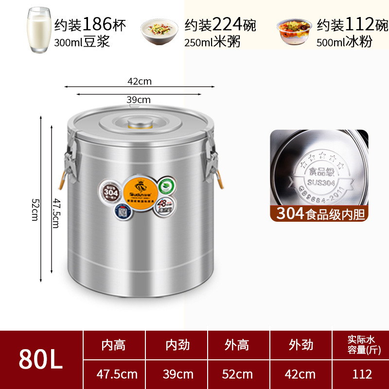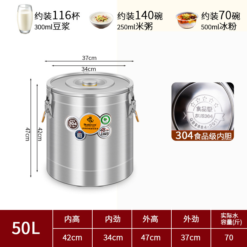Oaton 304 스테인레스 스틸 절연 버킷 상업용 대용량 얼음 버킷 쌀 두유 얼음 가루 쌀 버킷 죽 스톨스토어 가기