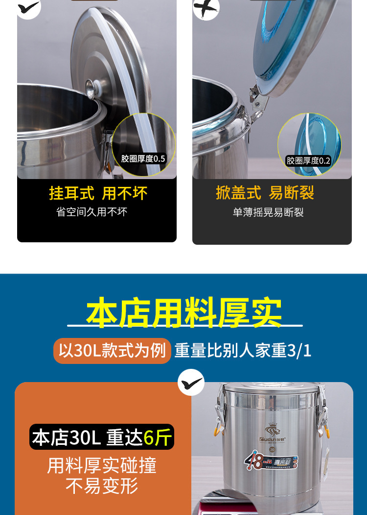 Oaton 304 스테인레스 스틸 절연 버킷 상업용 대용량 얼음 버킷 쌀 두유 얼음 가루 쌀 버킷 죽 스톨