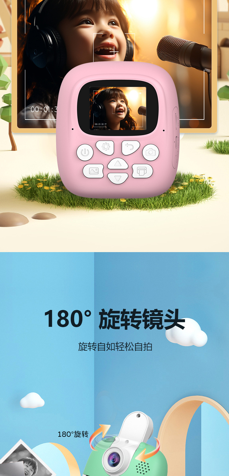 국경 간 새로운 어린이용 폴라로이드 카메라 HD 디지털 카메라 전면 및 후면 듀얼 카메라 열전사 인쇄 카메라 재미