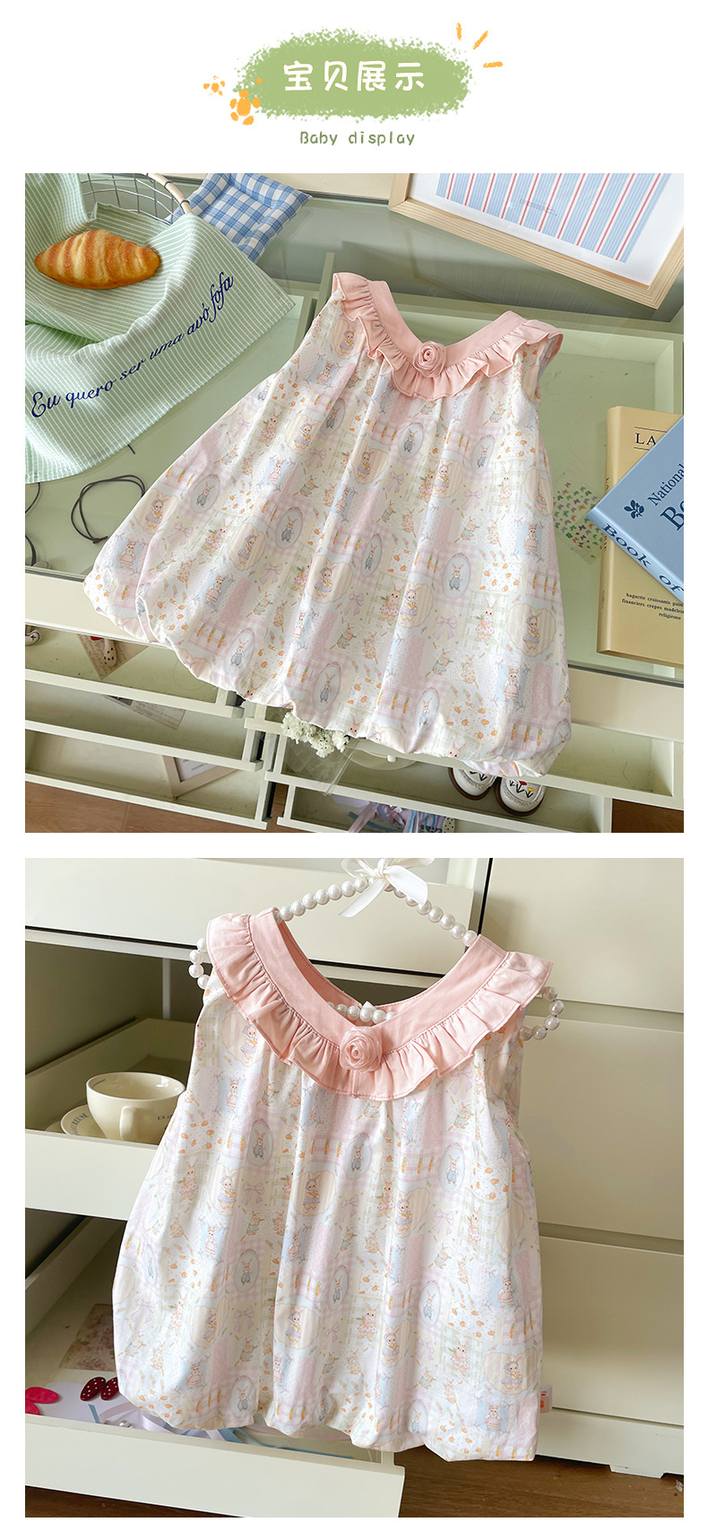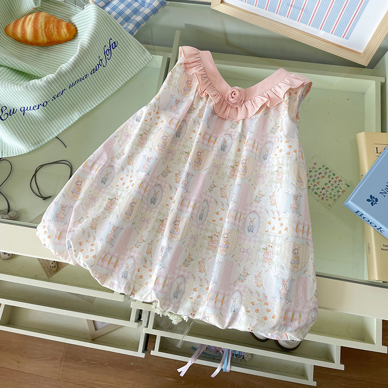 [재고] DZ25X306 여자 어린이 원피스 2025 여름 새로운 달콤한 옷깃 장미 재미 인쇄 공주스토어 가기