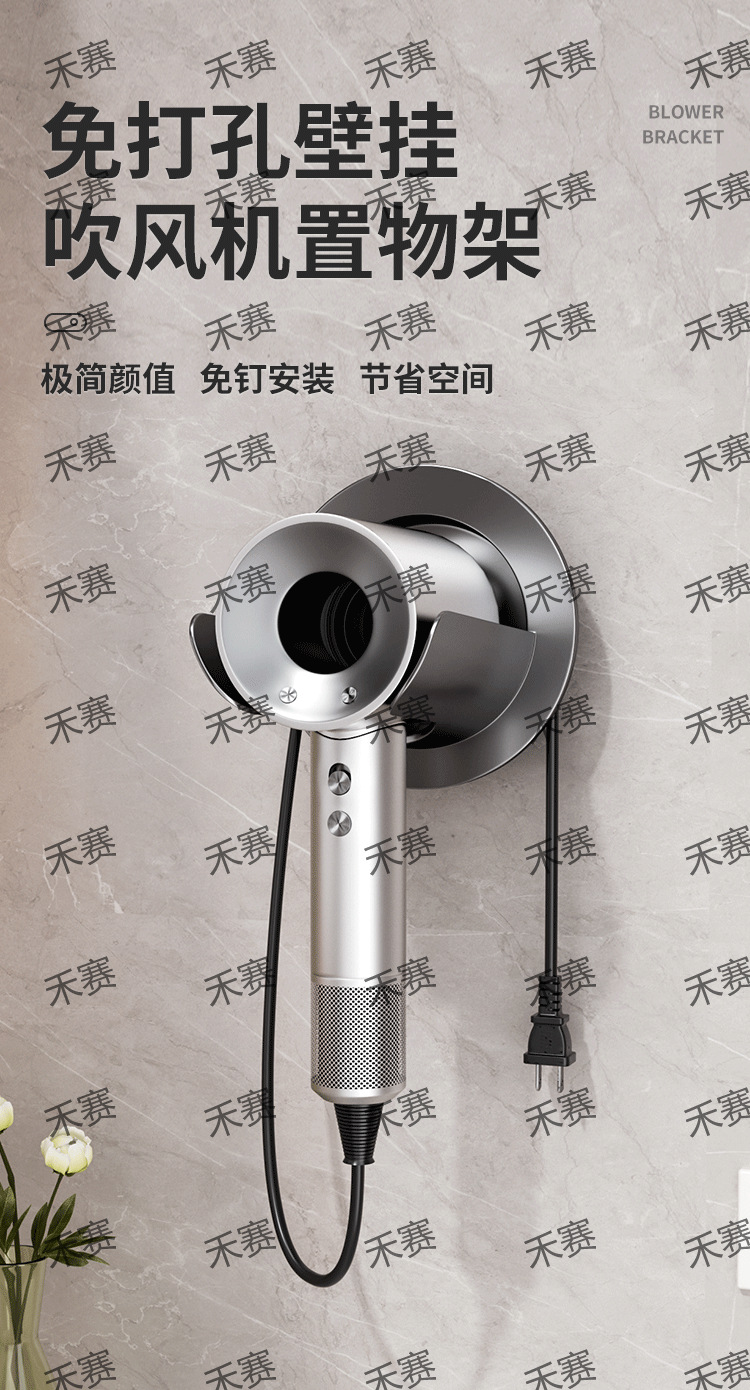 국경 간 뜨거운 판매 헤어 드라이어 저장 랙 펀치없는 옷걸이 벽 교수형 욕실 스크래치 방지 헤어 드라이어 저장 소스 공장스토어 가기