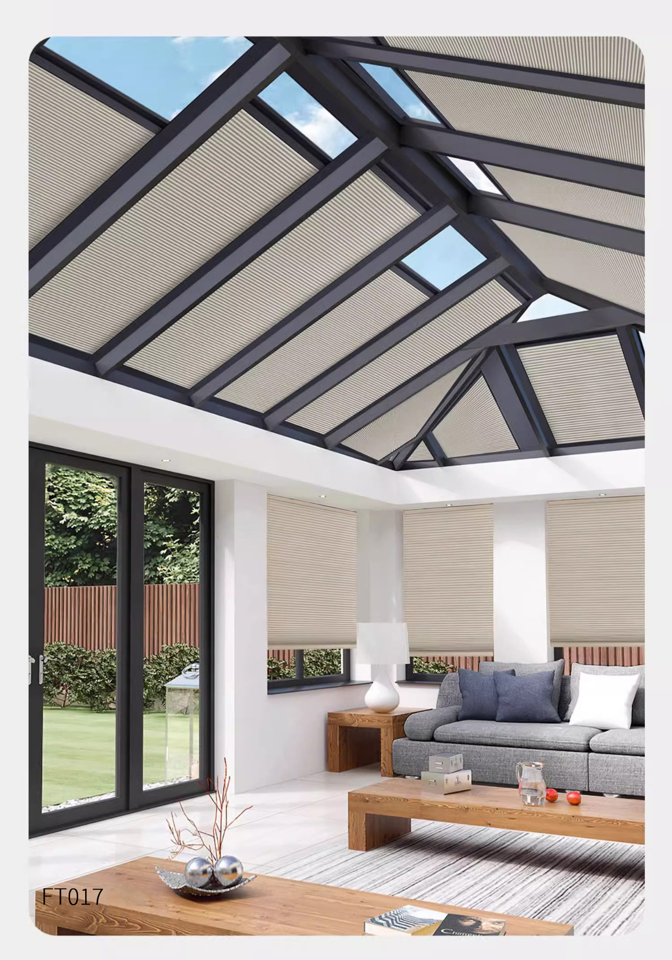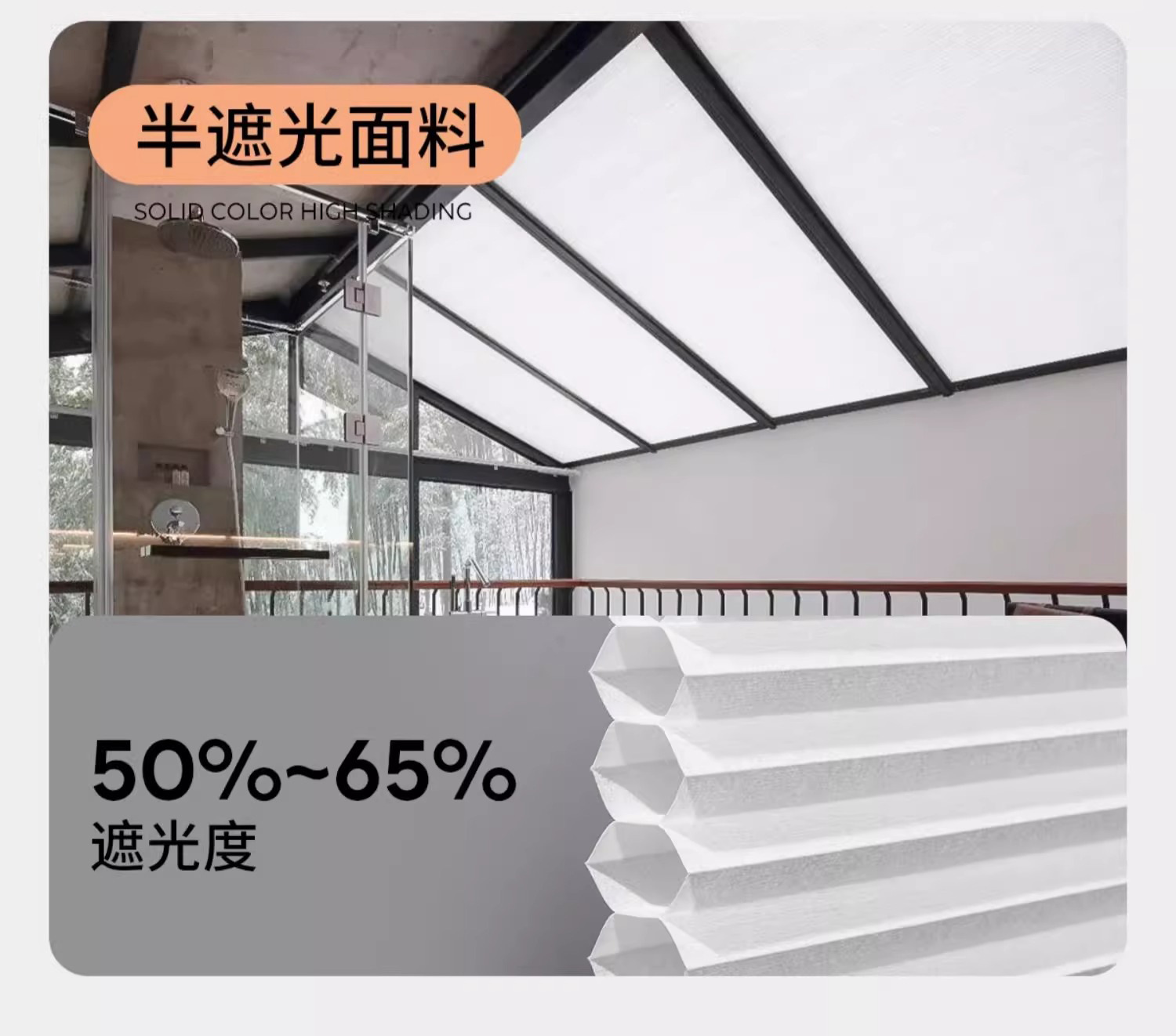 유리실 선샤인 룸 지능형 전기 원격 제어 차폐 열 절연 망원경 접히는 선 스크린 방수 천장 벌집 커튼