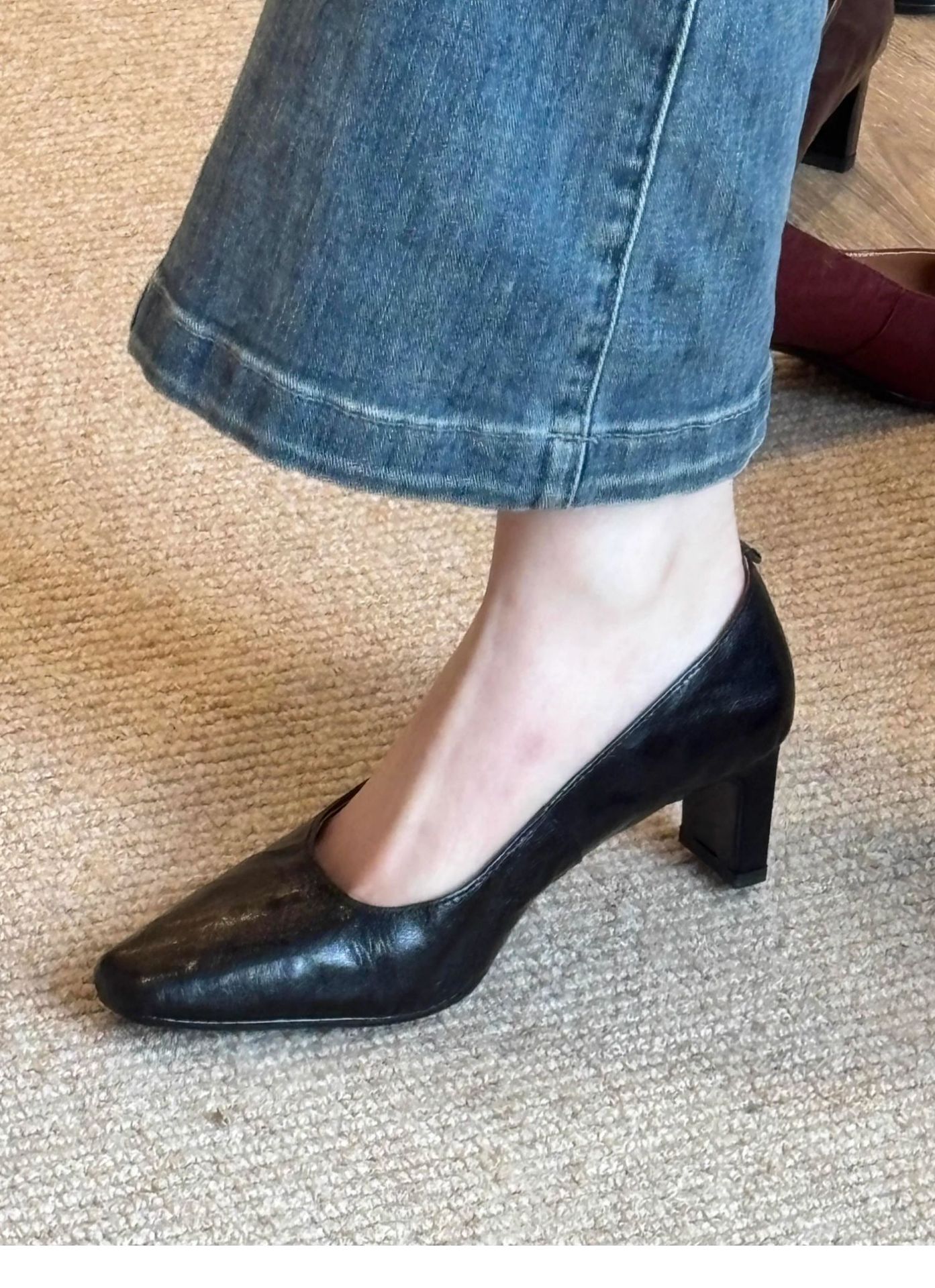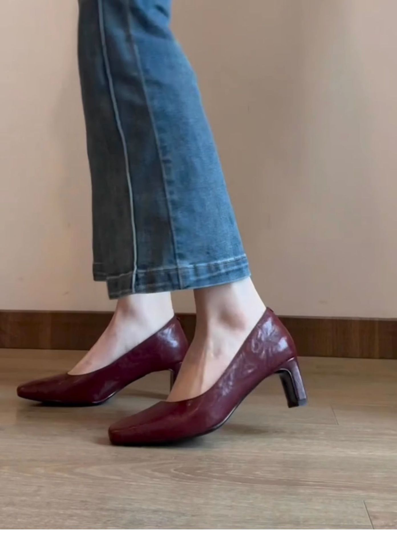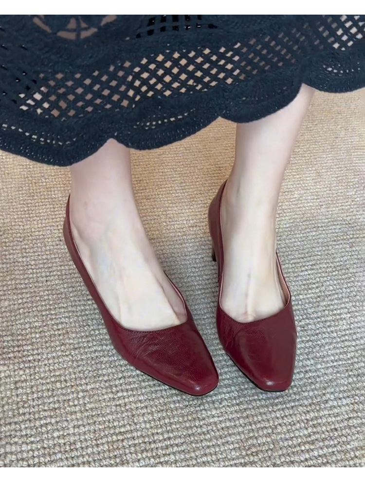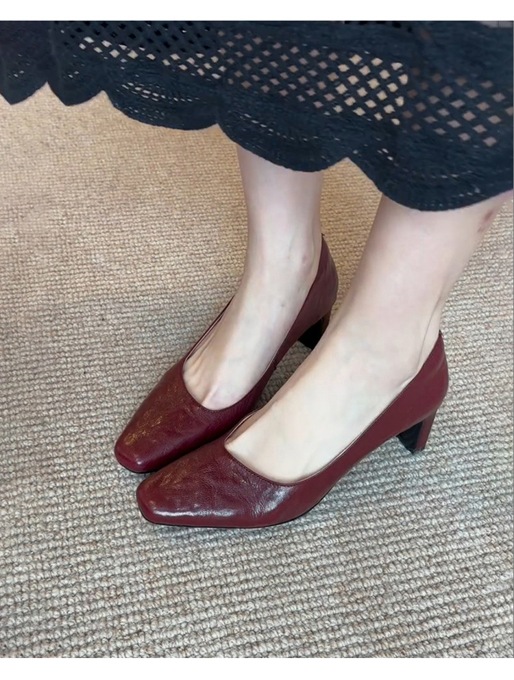신상 주름 레트로 스타일 여성용 하이힐, 스퀘어토, 굽이 두꺼운, 앞트임, 출퇴근용, 슬립온, 가죽 신발스토어 가기