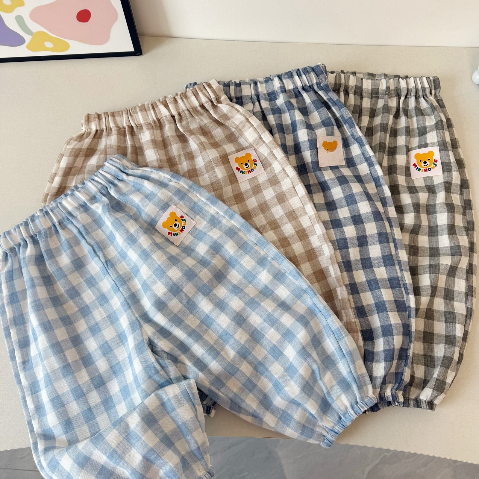 소프트 후호 ~ 어린이 모기 방지 바지 소년과 소녀 면 격자 무늬 바지 아기의 부드러운 서양식 캐주얼 블루머스 트렌디스토어 가기