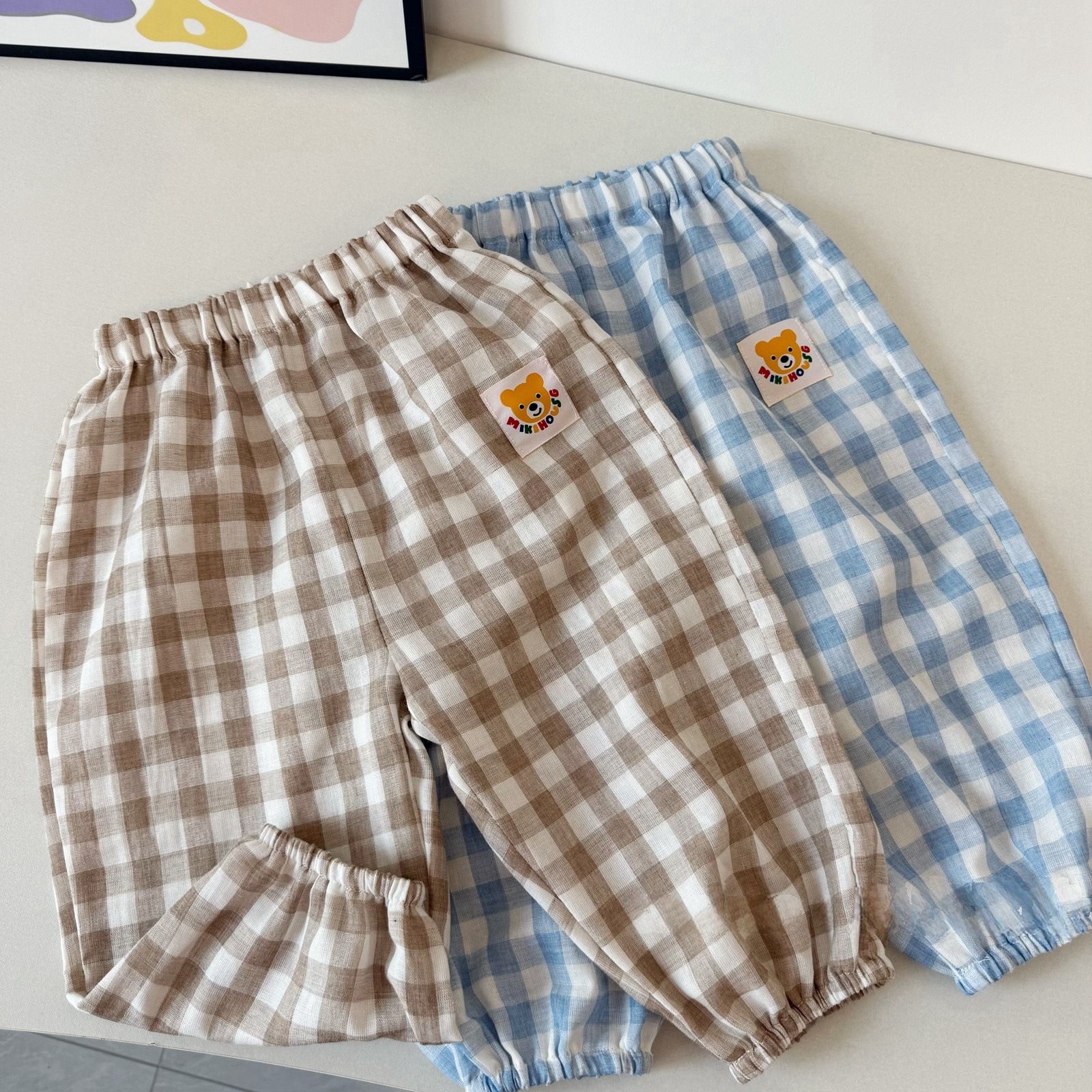 소프트 후호 ~ 어린이 모기 방지 바지 소년과 소녀 면 격자 무늬 바지 아기의 부드러운 서양식 캐주얼 블루머스 트렌디