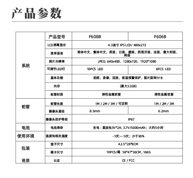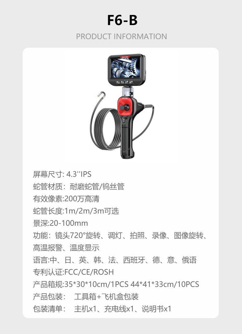 RALCAM/Ruikankan HD 휴대용 편리한 자동차 감지기 파이프라인 카메라 산업용 내시경(스크린 포함)스토어 가기