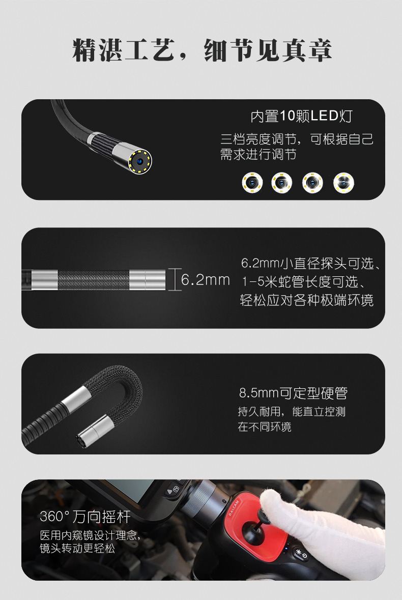 RALCAM/Ruikankan HD 휴대용 편리한 자동차 감지기 파이프라인 카메라 산업용 내시경(스크린 포함)