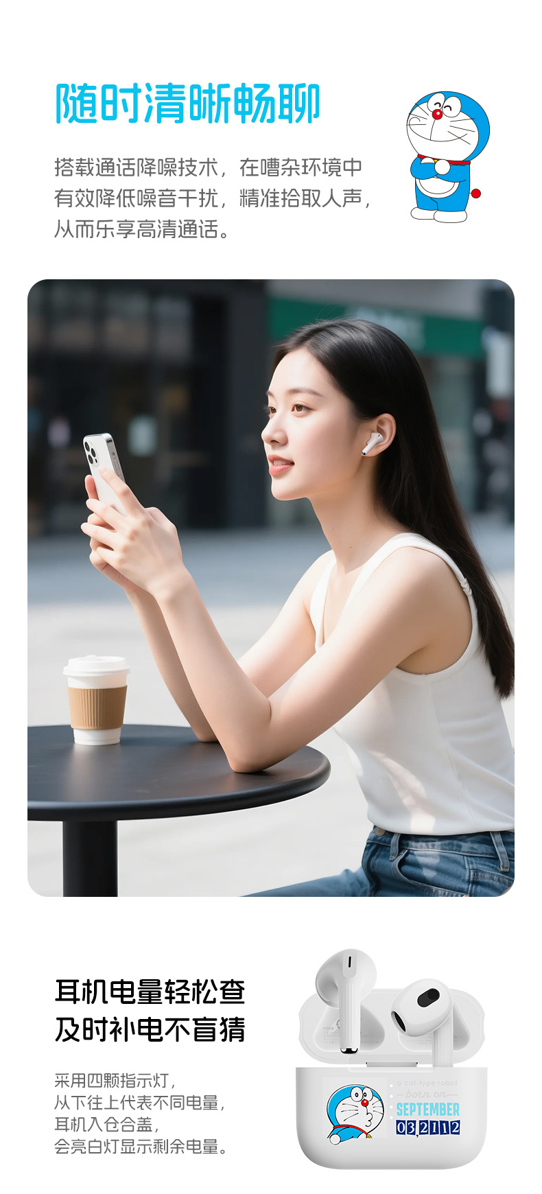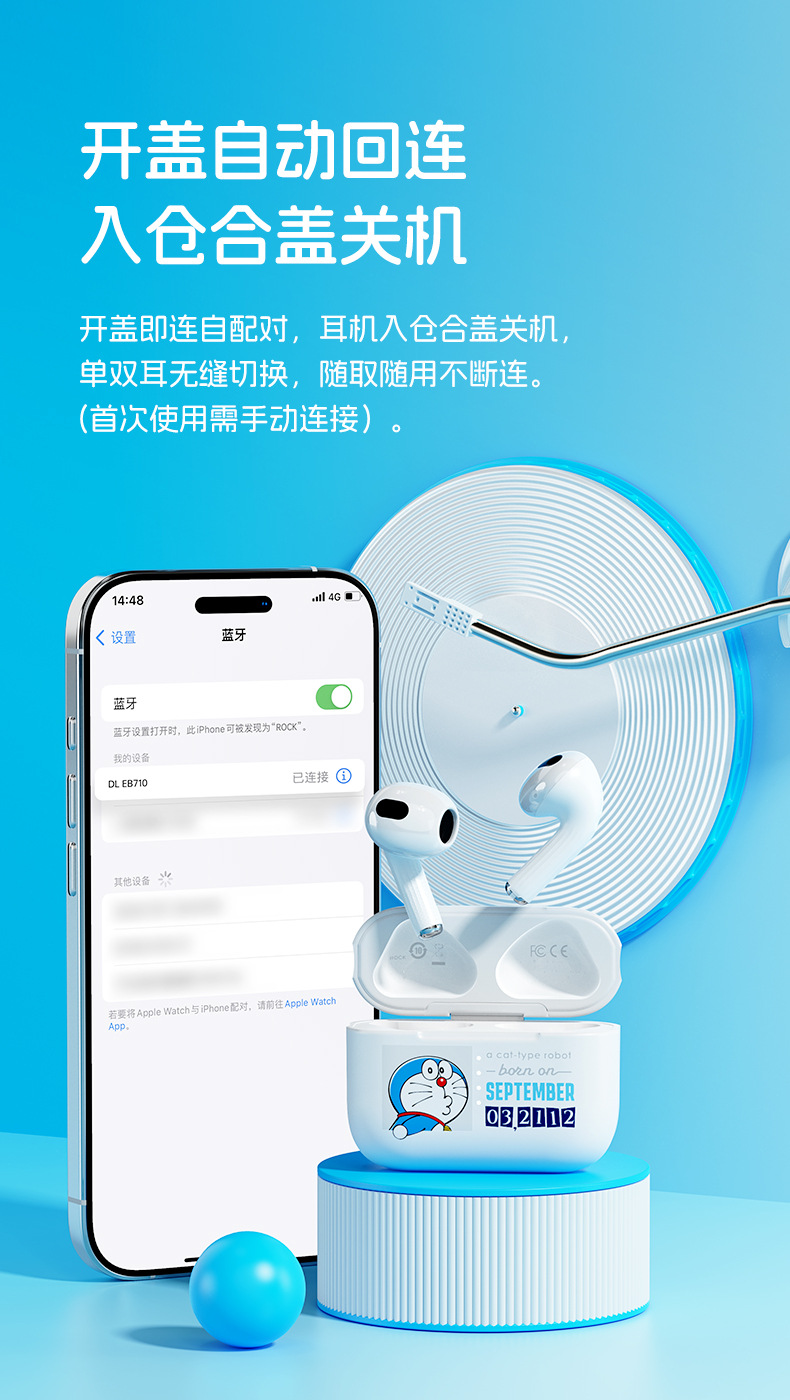 도라에몽/크레용신짱 ROCK 헤드폰 TWS 인이어 EB710 소음 감소 긴 배터리 수명 무선 블루투스 헤드폰스토어 가기