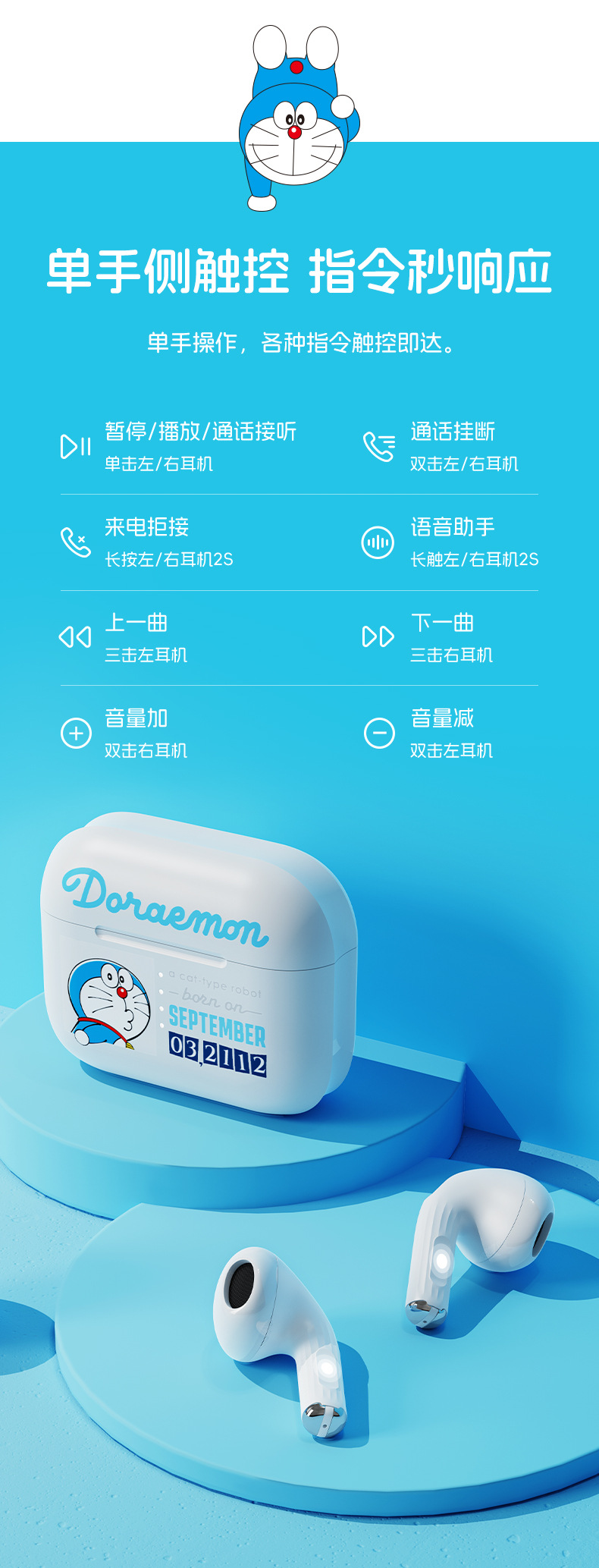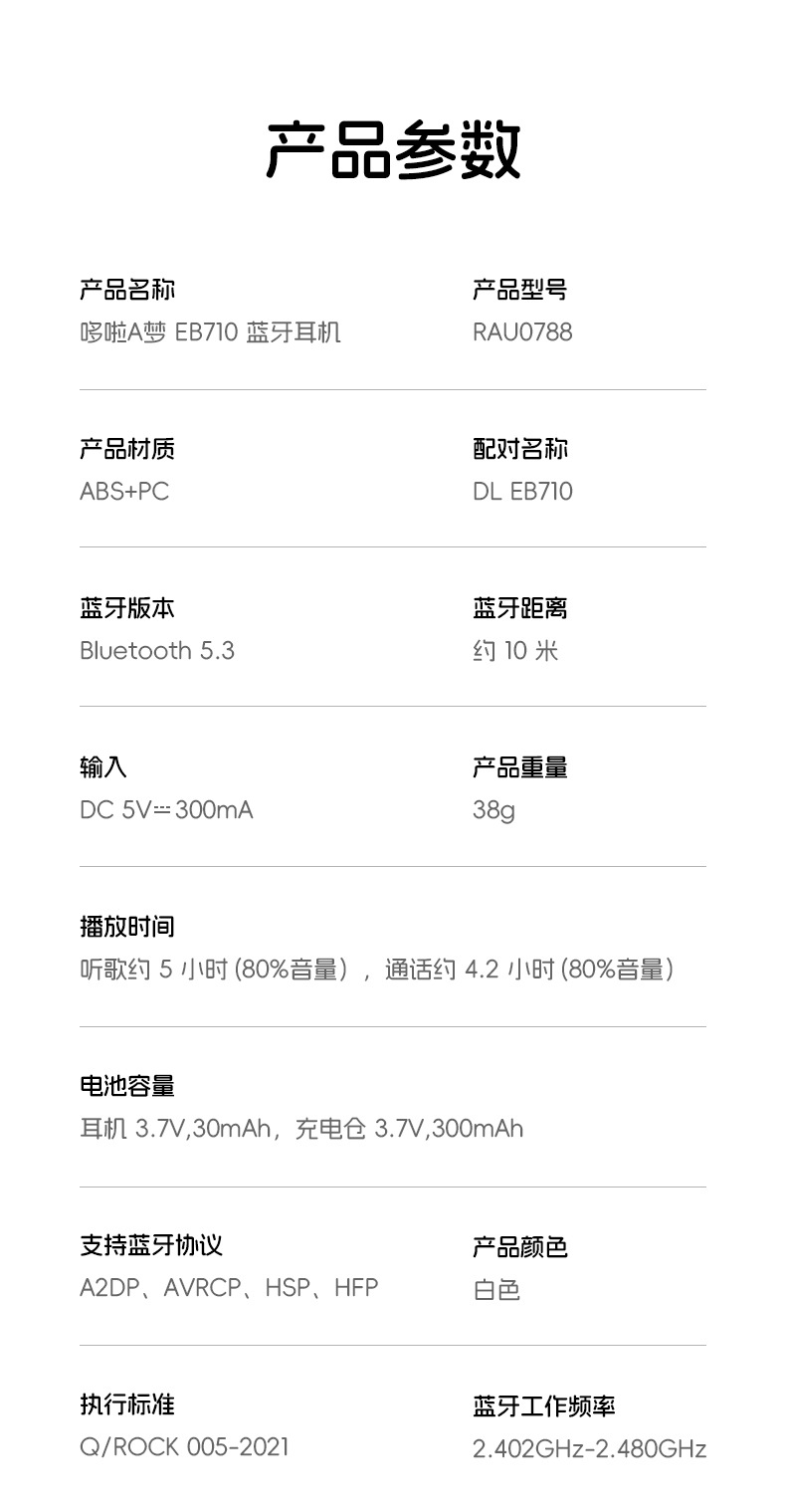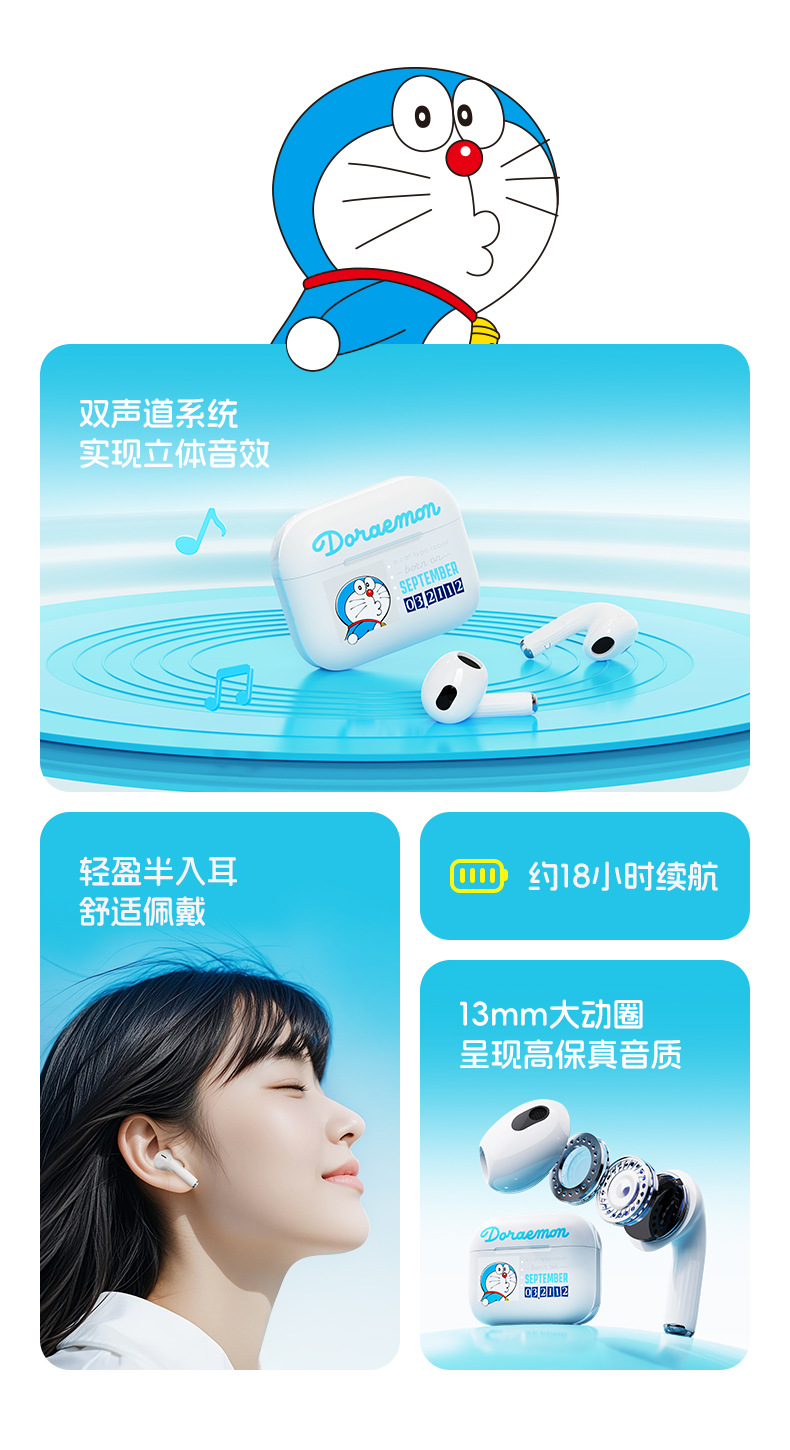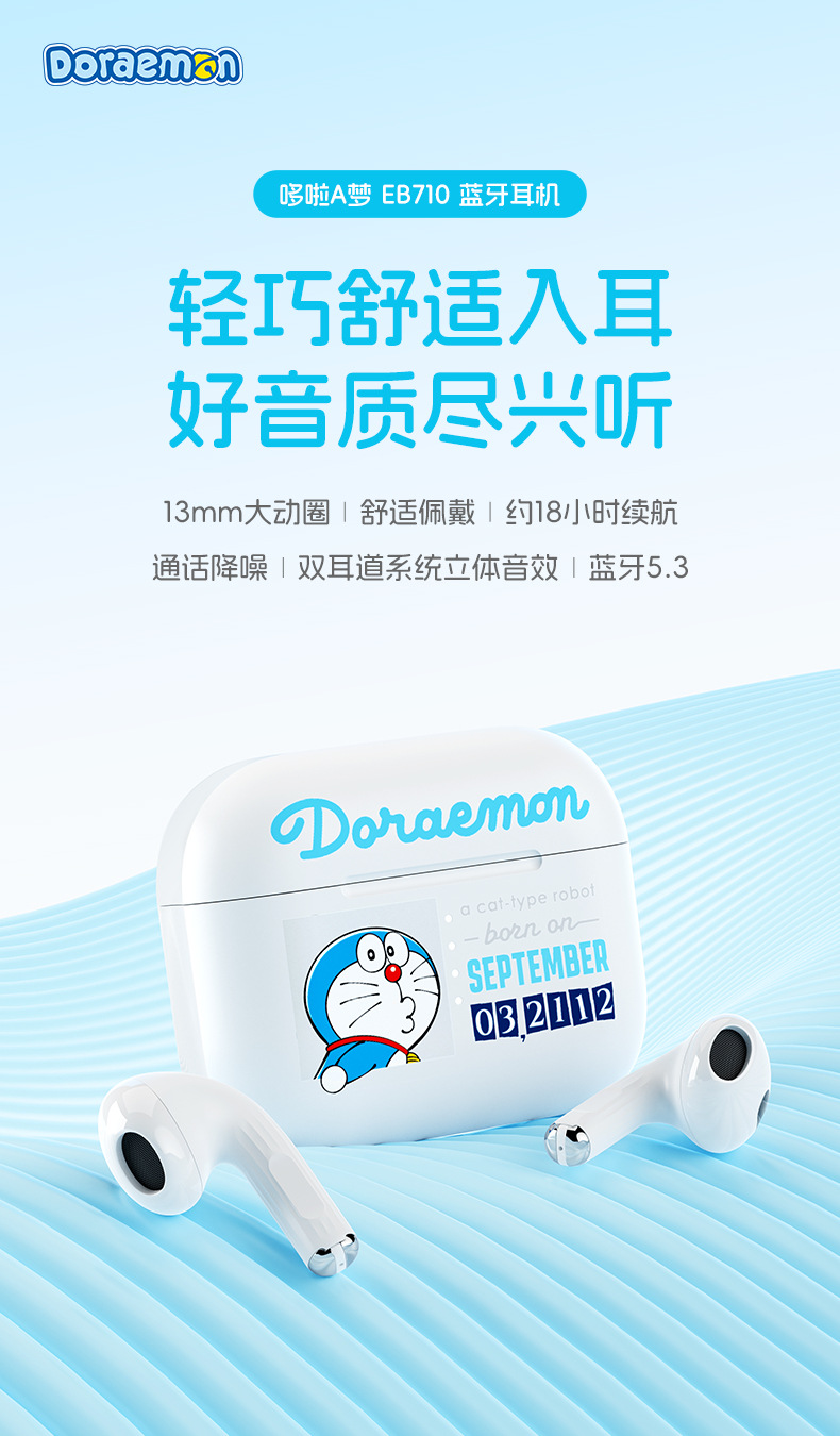 도라에몽/크레용신짱 ROCK 헤드폰 TWS 인이어 EB710 소음 감소 긴 배터리 수명 무선 블루투스 헤드폰