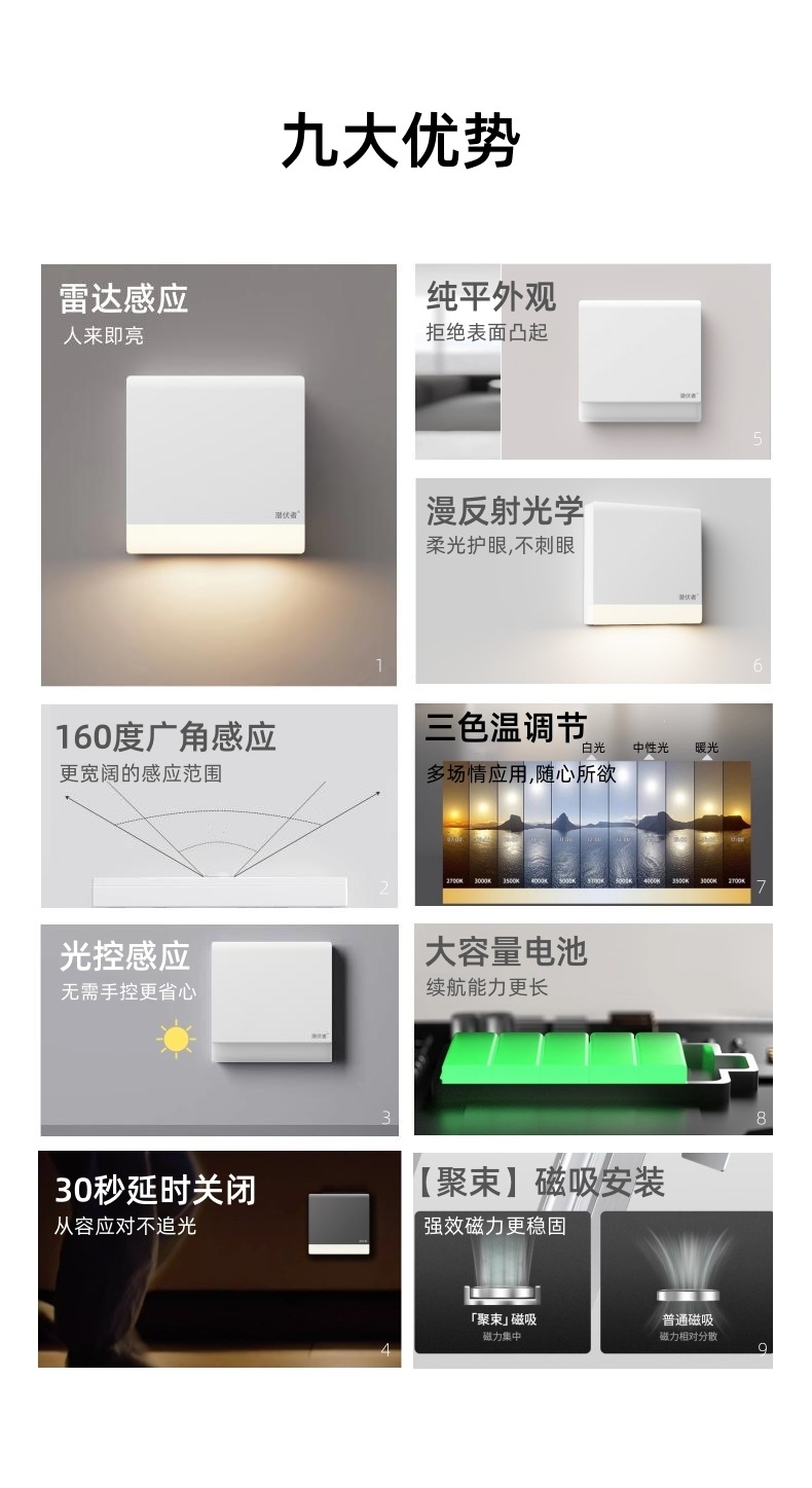 • 충전식 모델/회색 3색온도[레이더+조광]