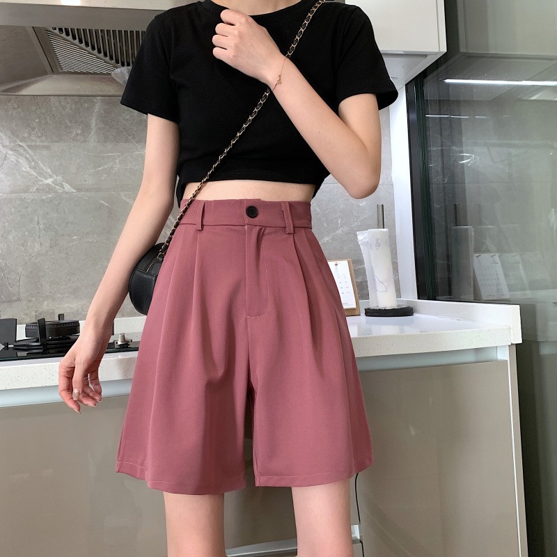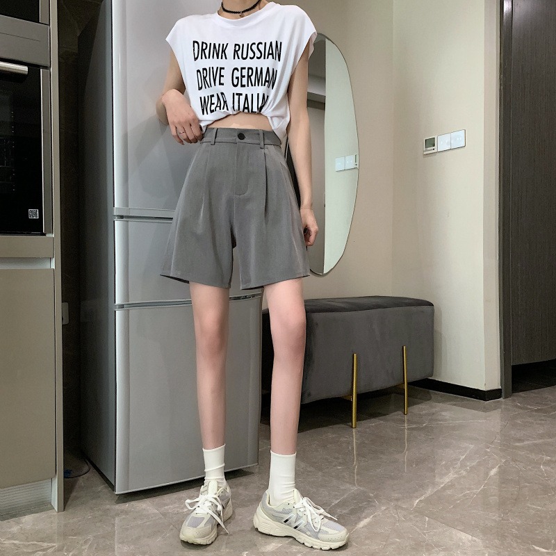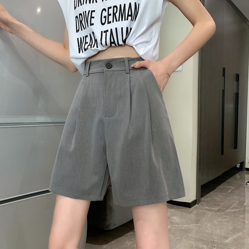 여름 신상 하이웨이스트 스트레이트 슈트 반바지 여성용 얇은 루즈 캐주얼 5부 팬츠 하이웨이스트 와이드 팬츠 여성용
