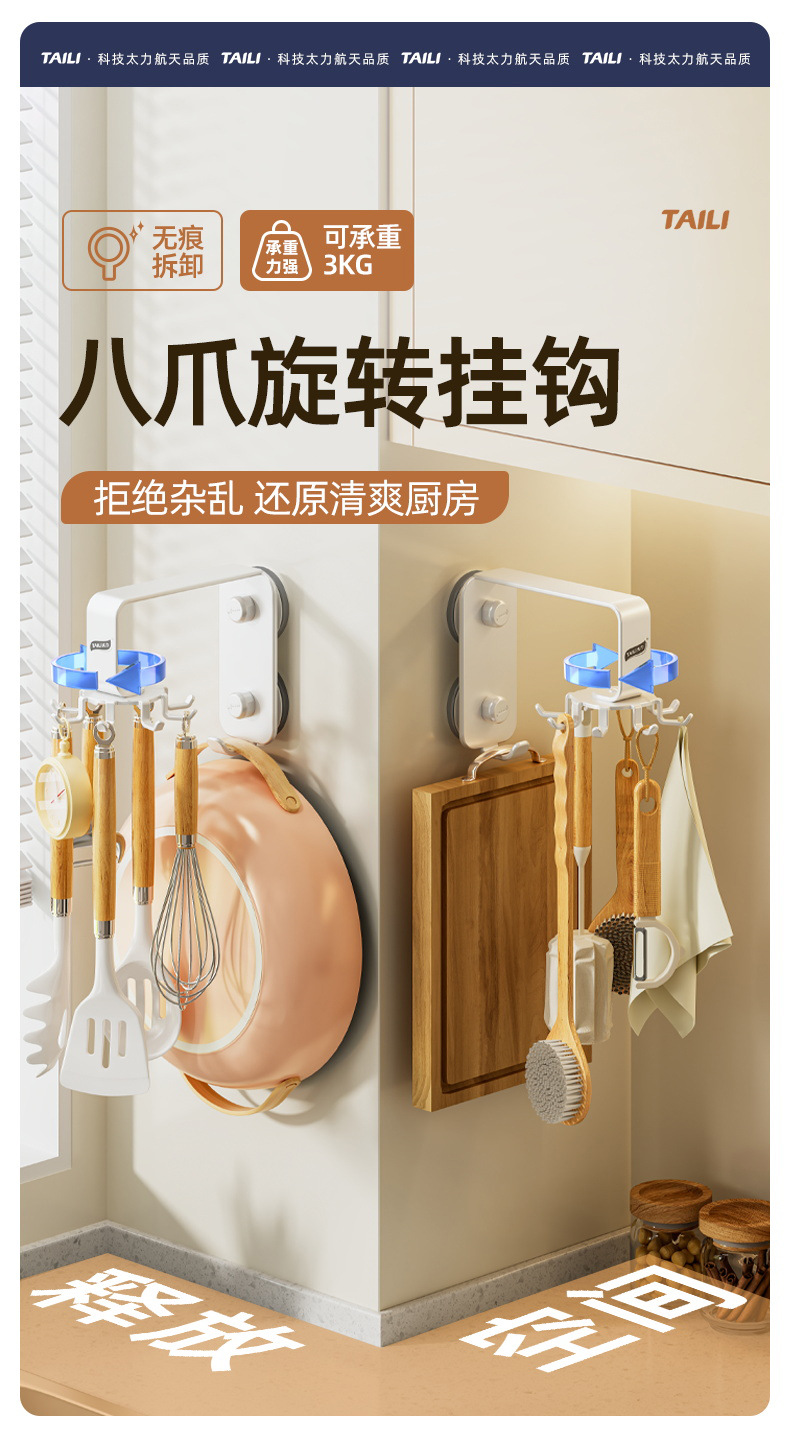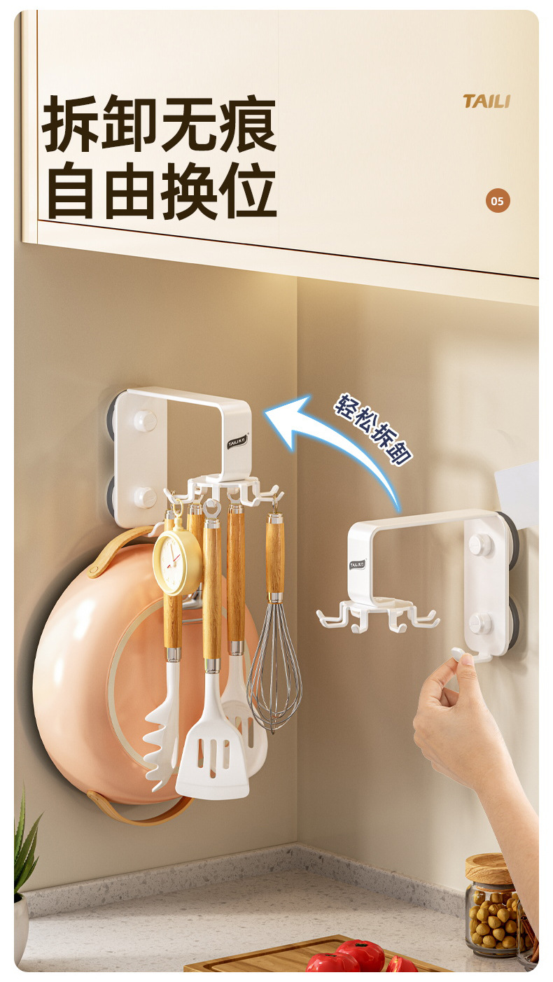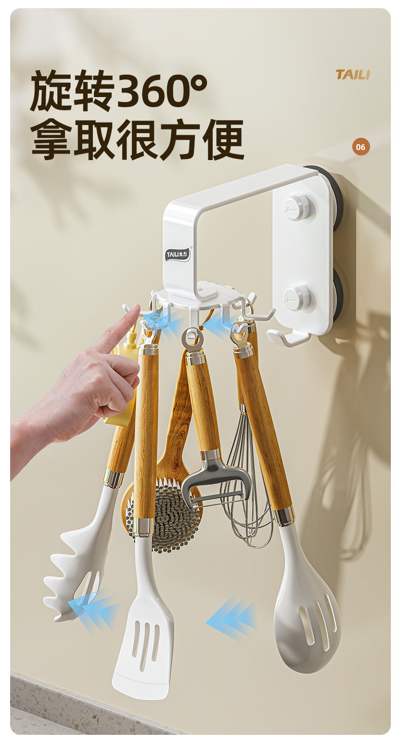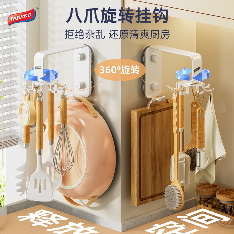 Taili 주방 회전 후크 벽걸이 형 수납 선반 주방 용품 수납 선반 주걱 스푼 삽 걸이 펀치 없음