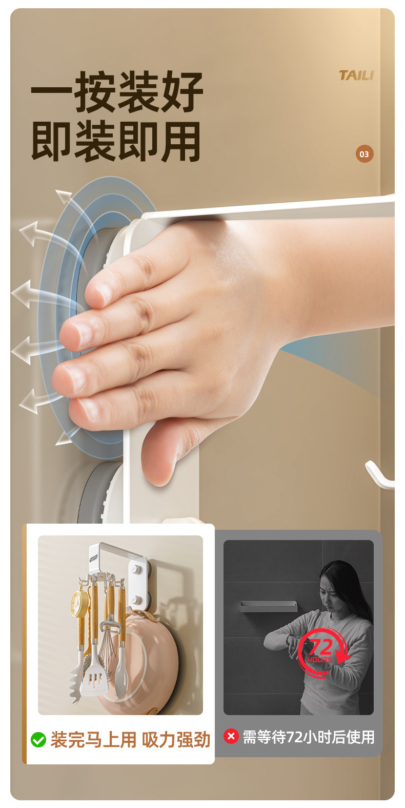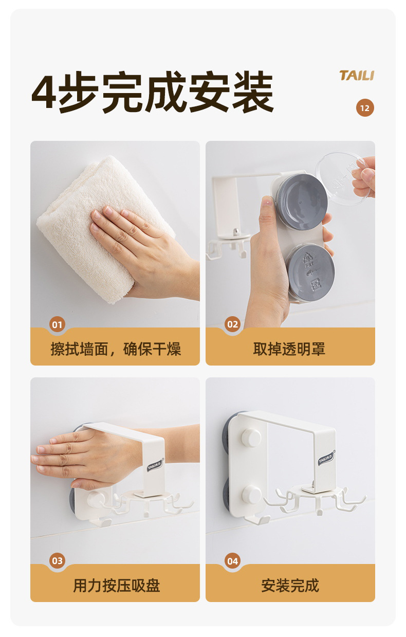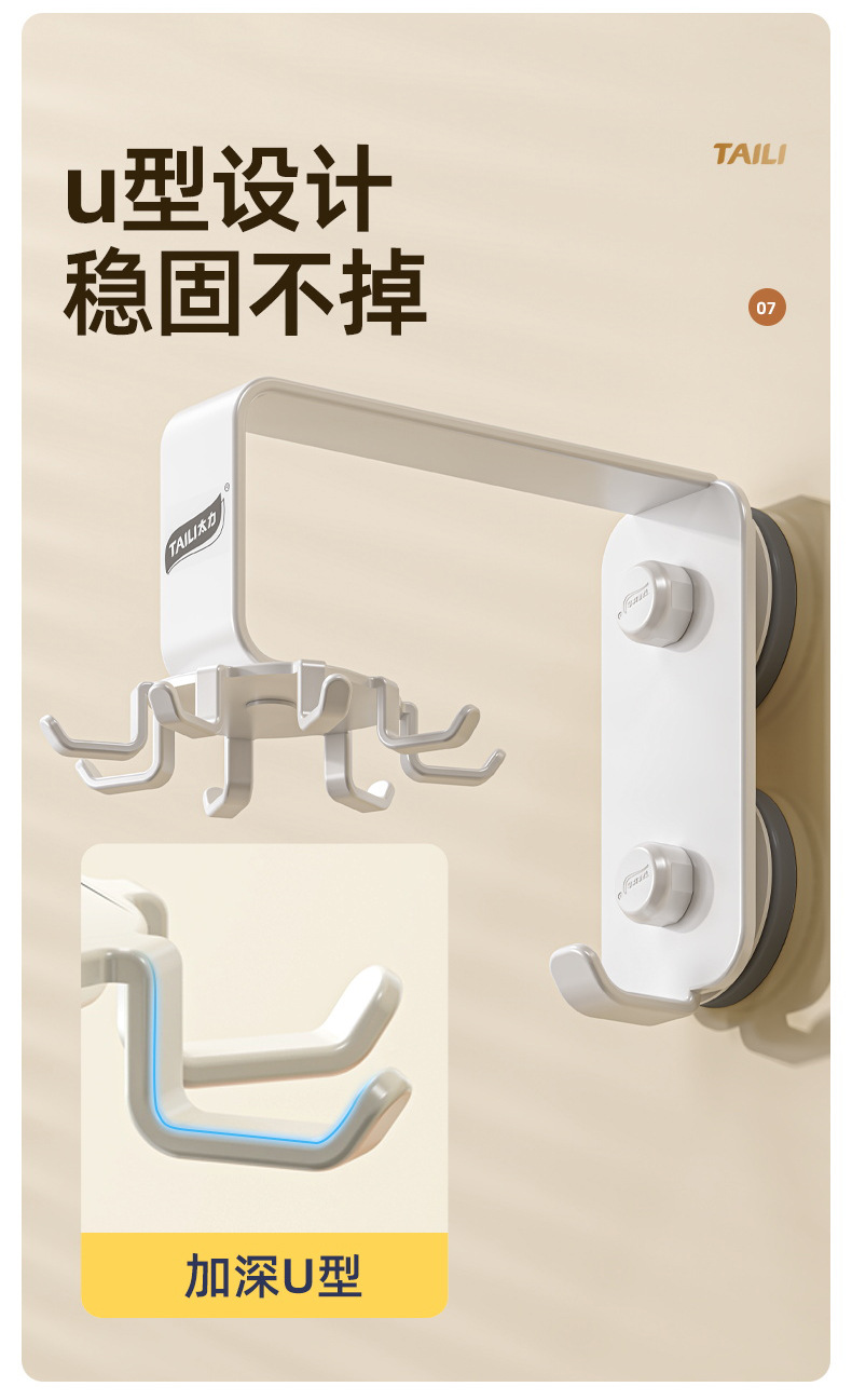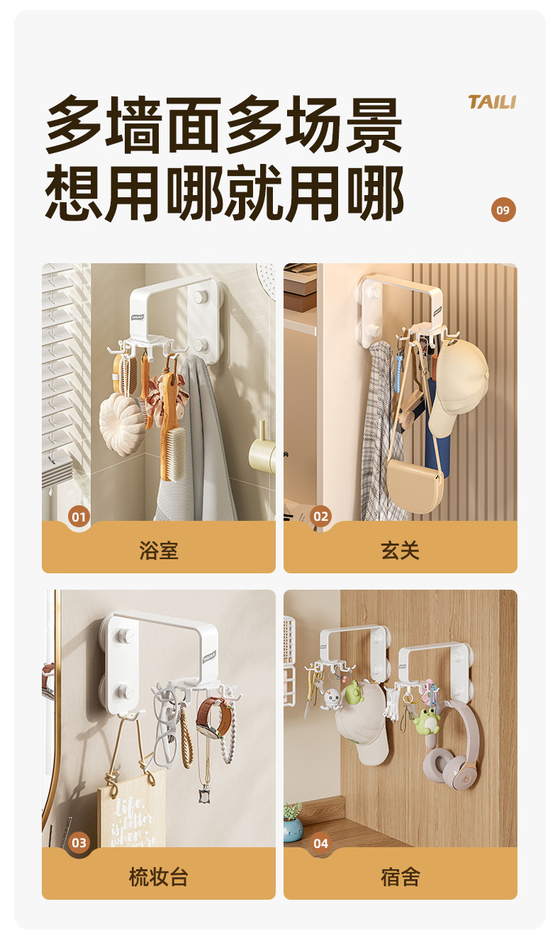 Taili 주방 회전 후크 벽걸이 형 수납 선반 주방 용품 수납 선반 주걱 스푼 삽 걸이 펀치 없음