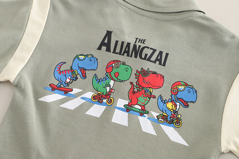 • 녹색 폴로 사이클링 공룡 반팔 슈트