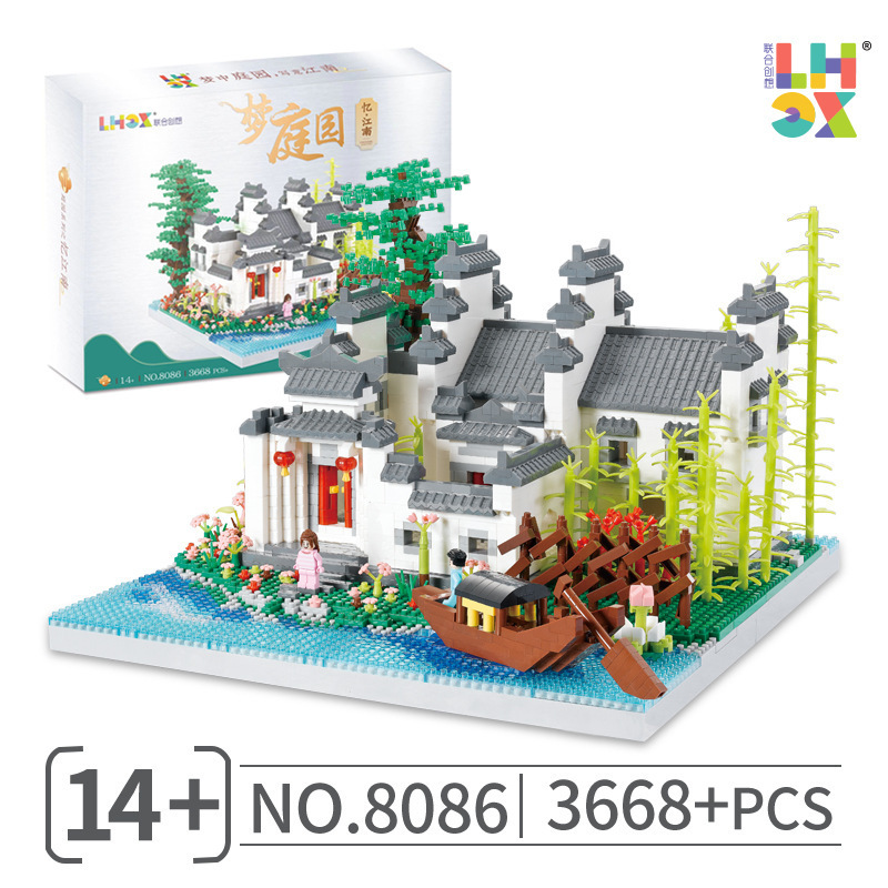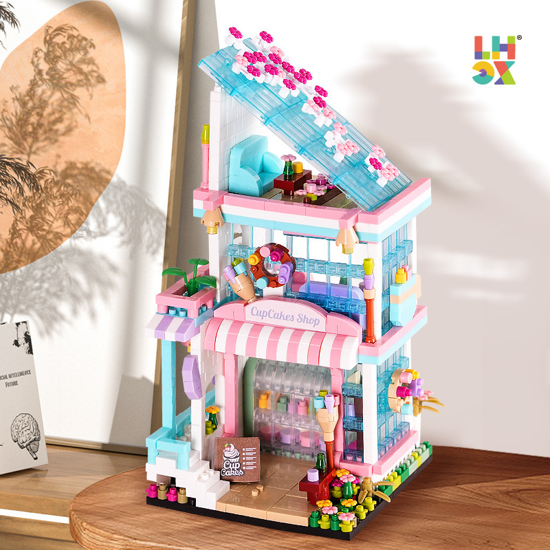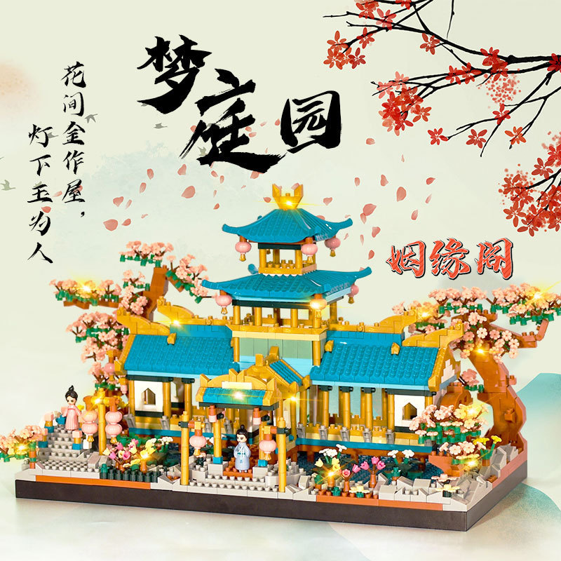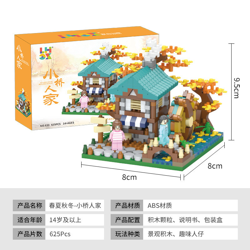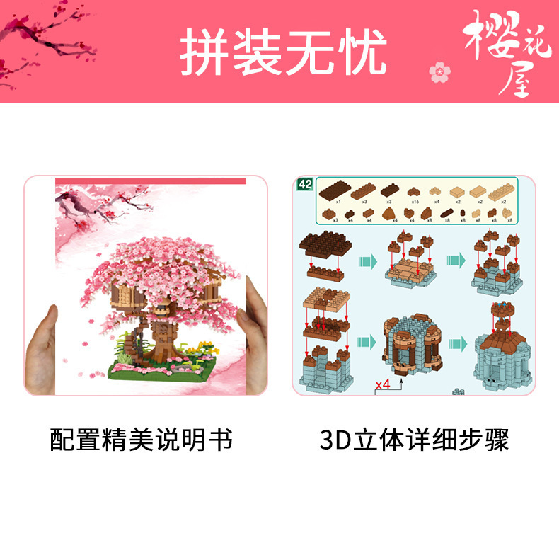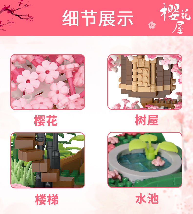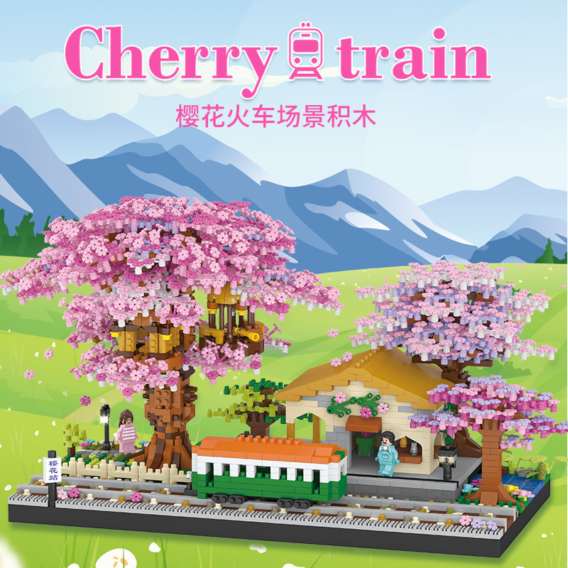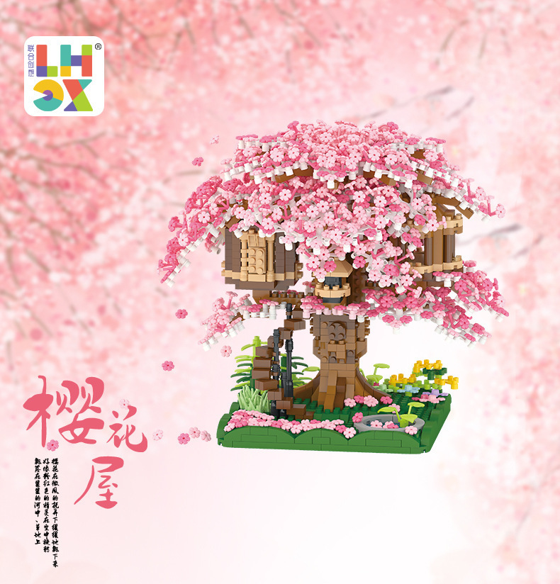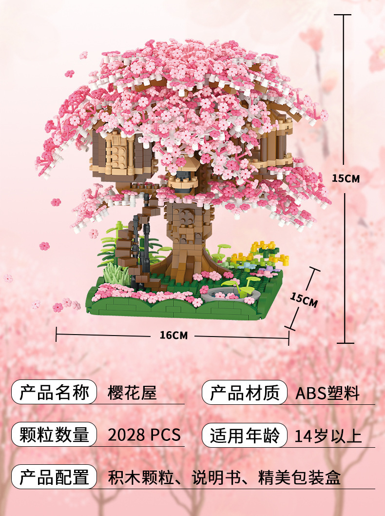 국경 간 레지 마이크로 입자 작은 빌딩 블록 크리 에이 티브 교육 건설 시리즈 벚꽃 나무 집 시리즈 어린이 조립 장난감스토어 가기