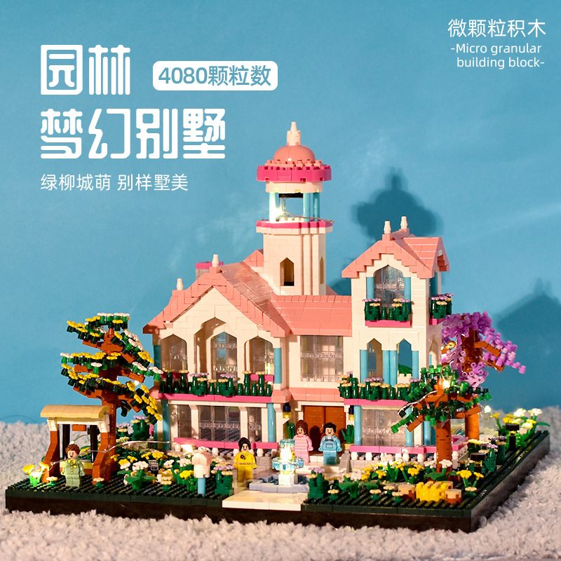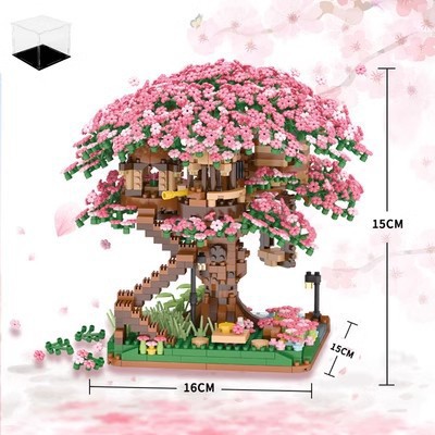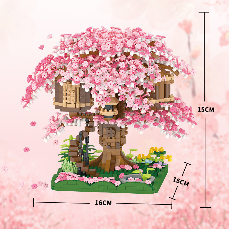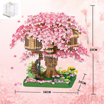 국경 간 레지 마이크로 입자 작은 빌딩 블록 크리 에이 티브 교육 건설 시리즈 벚꽃 나무 집 시리즈 어린이 조립 장난감