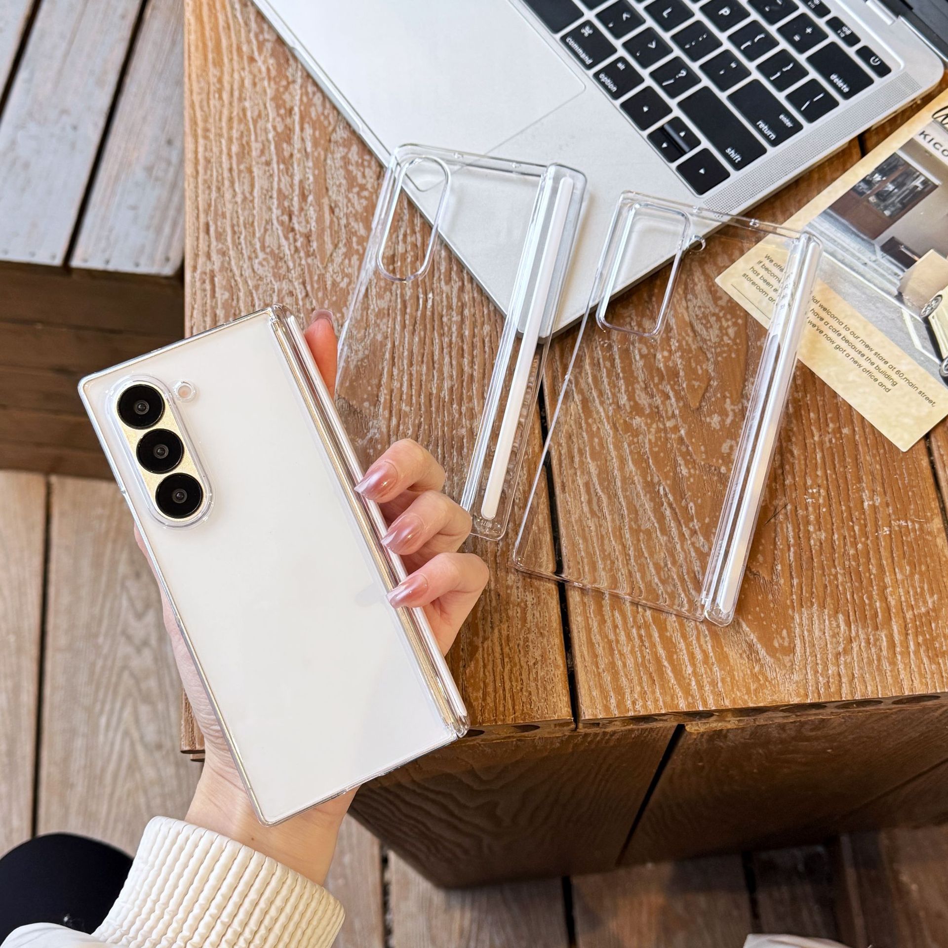 삼성 zfold7 휴대 전화 케이스에 적합 초박형 중앙 축 보호 Fold5 자기 힌지 모든 항목을 포함하는 w24 투명 PC 케이스