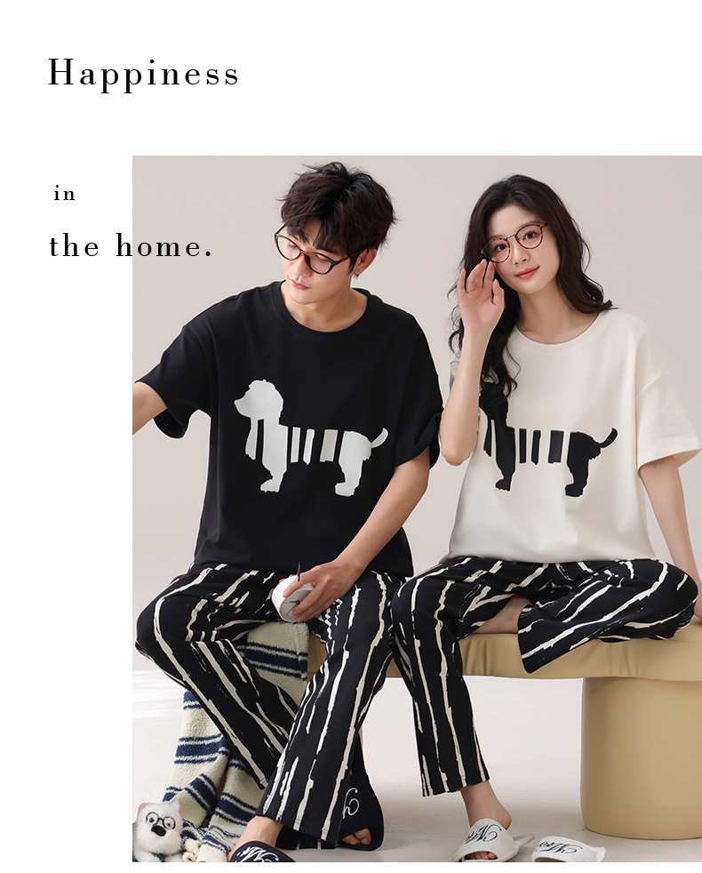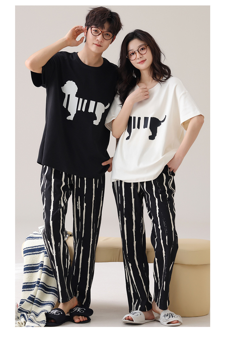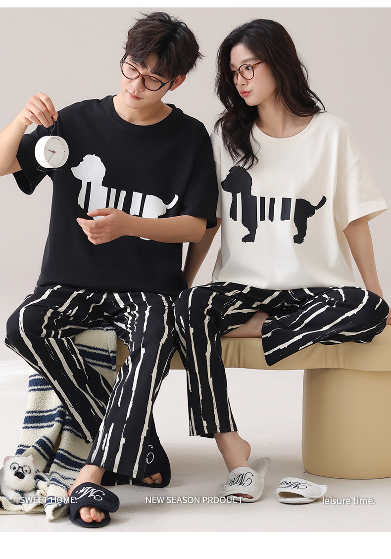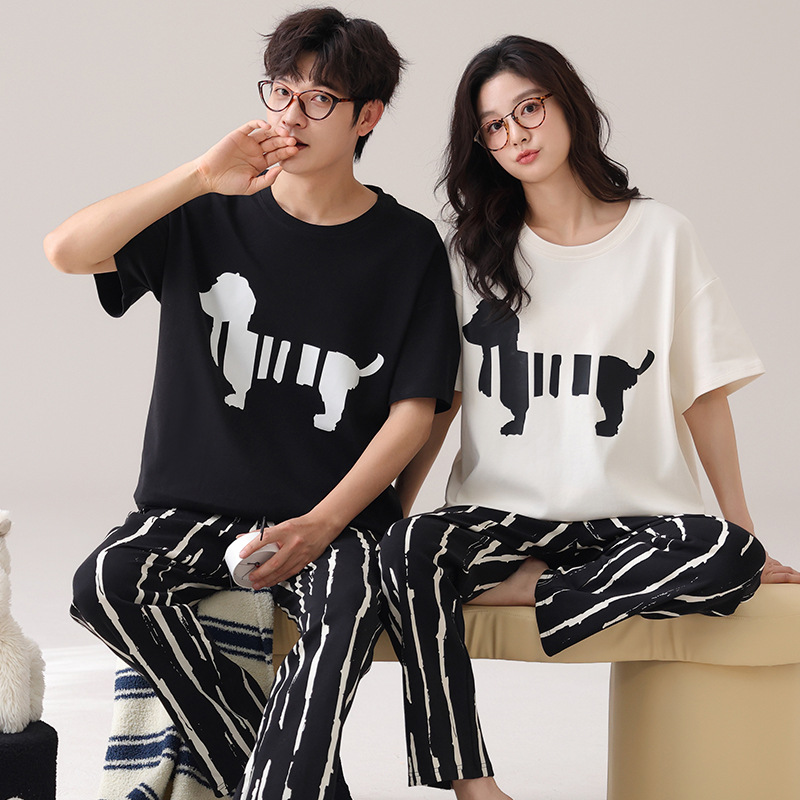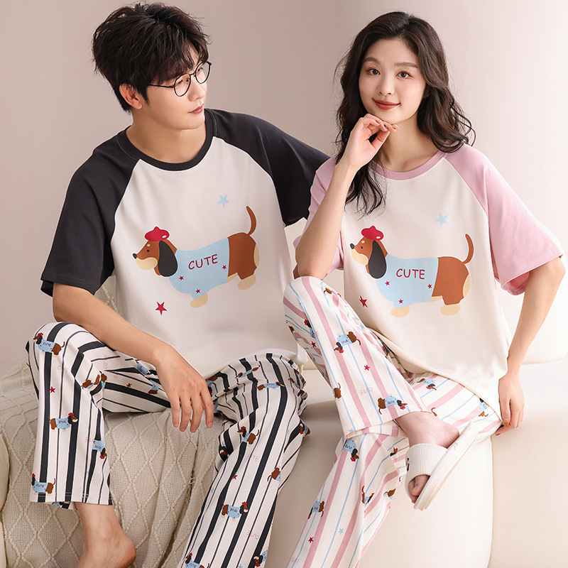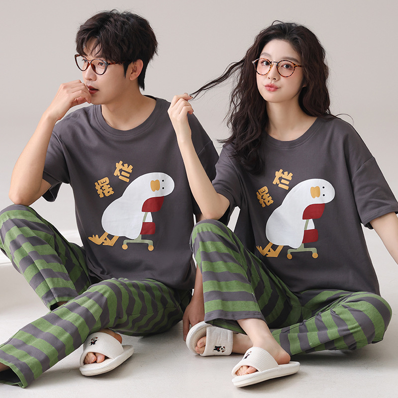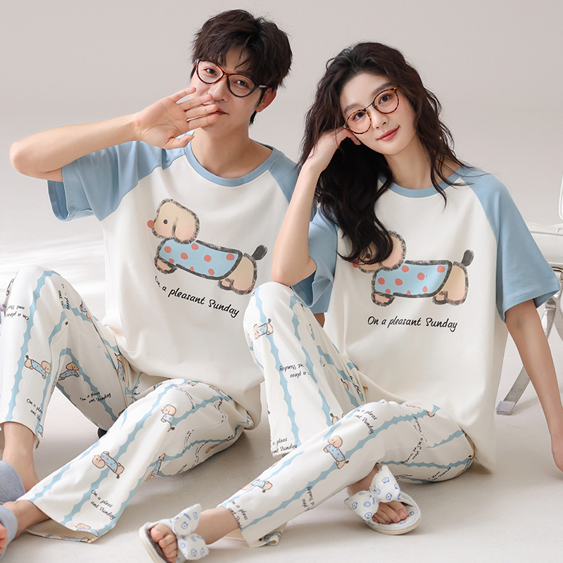 커플 잠옷 여성의 여름 순면 반팔 바지 달콤한 만화 젊은 소년과 소녀 캐주얼 겉옷 홈 옷스토어 가기