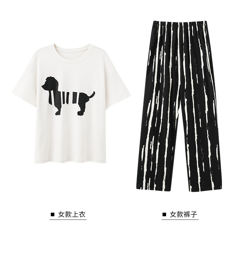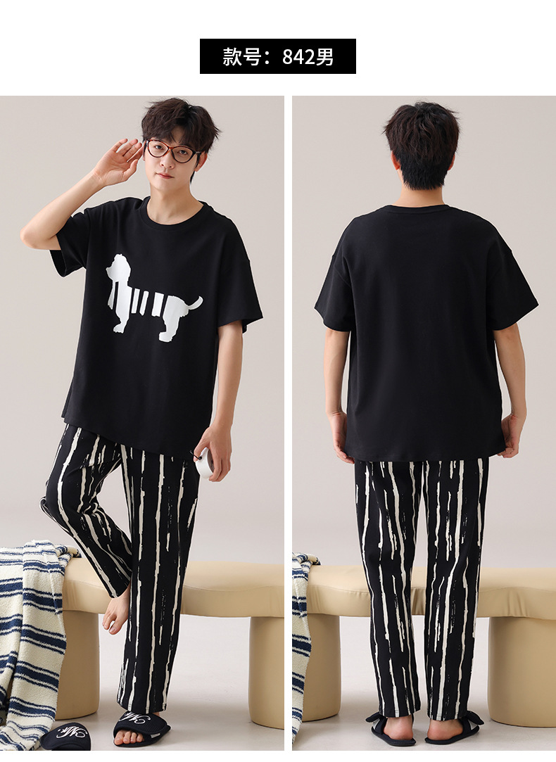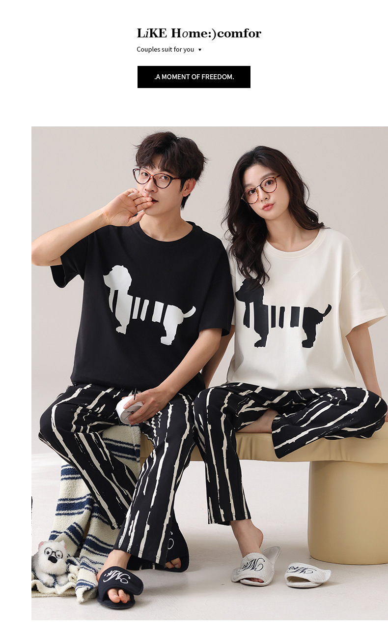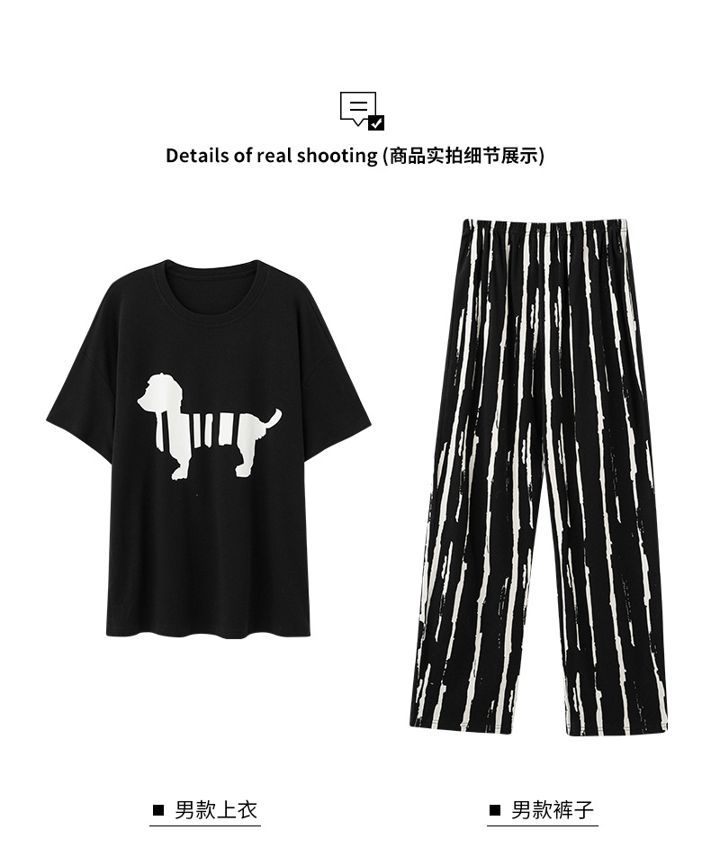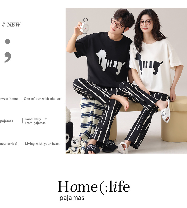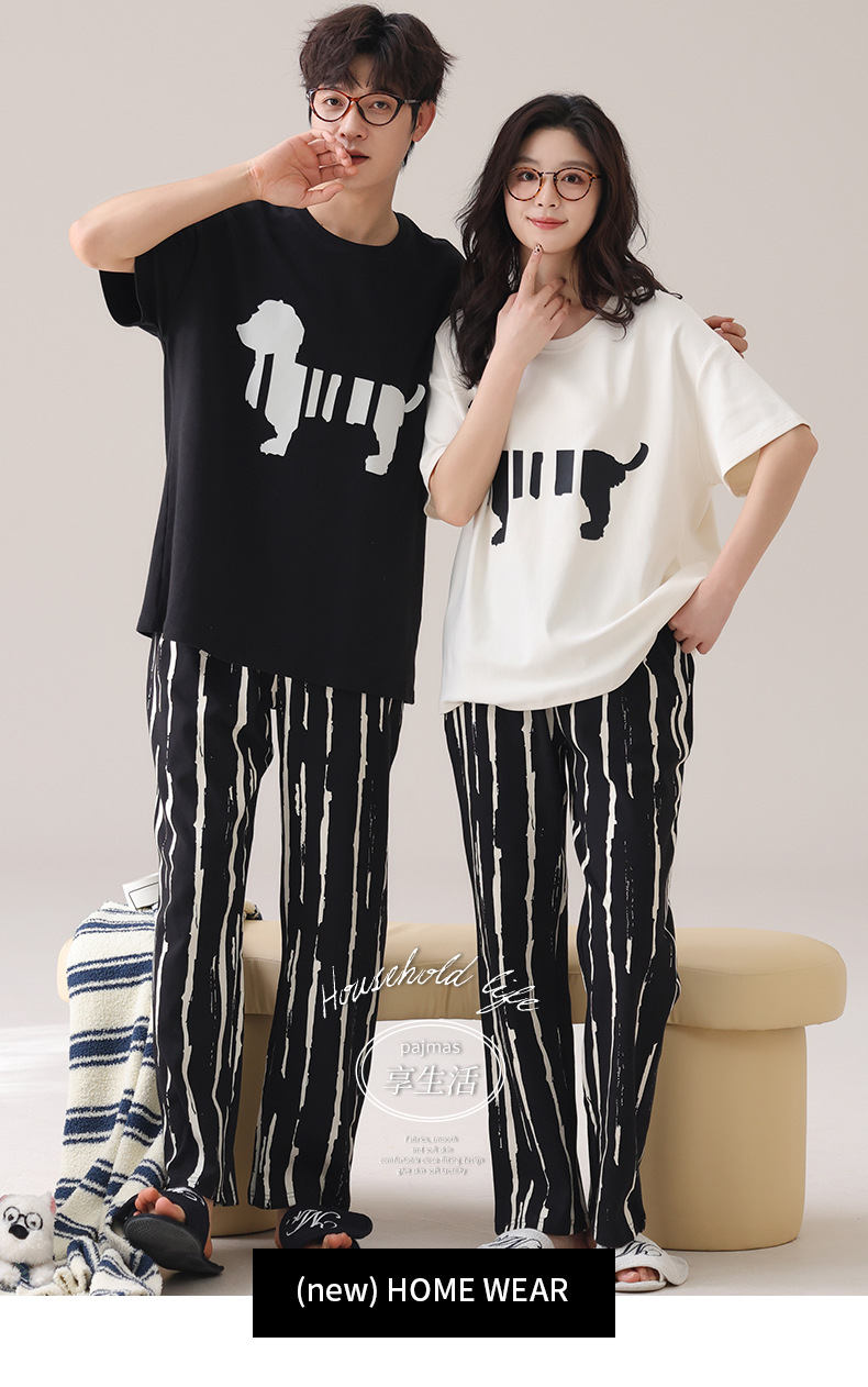 커플 잠옷 여성의 여름 순면 반팔 바지 달콤한 만화 젊은 소년과 소녀 캐주얼 겉옷 홈 옷스토어 가기