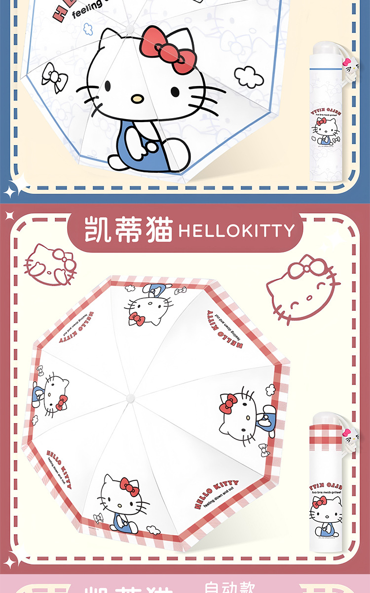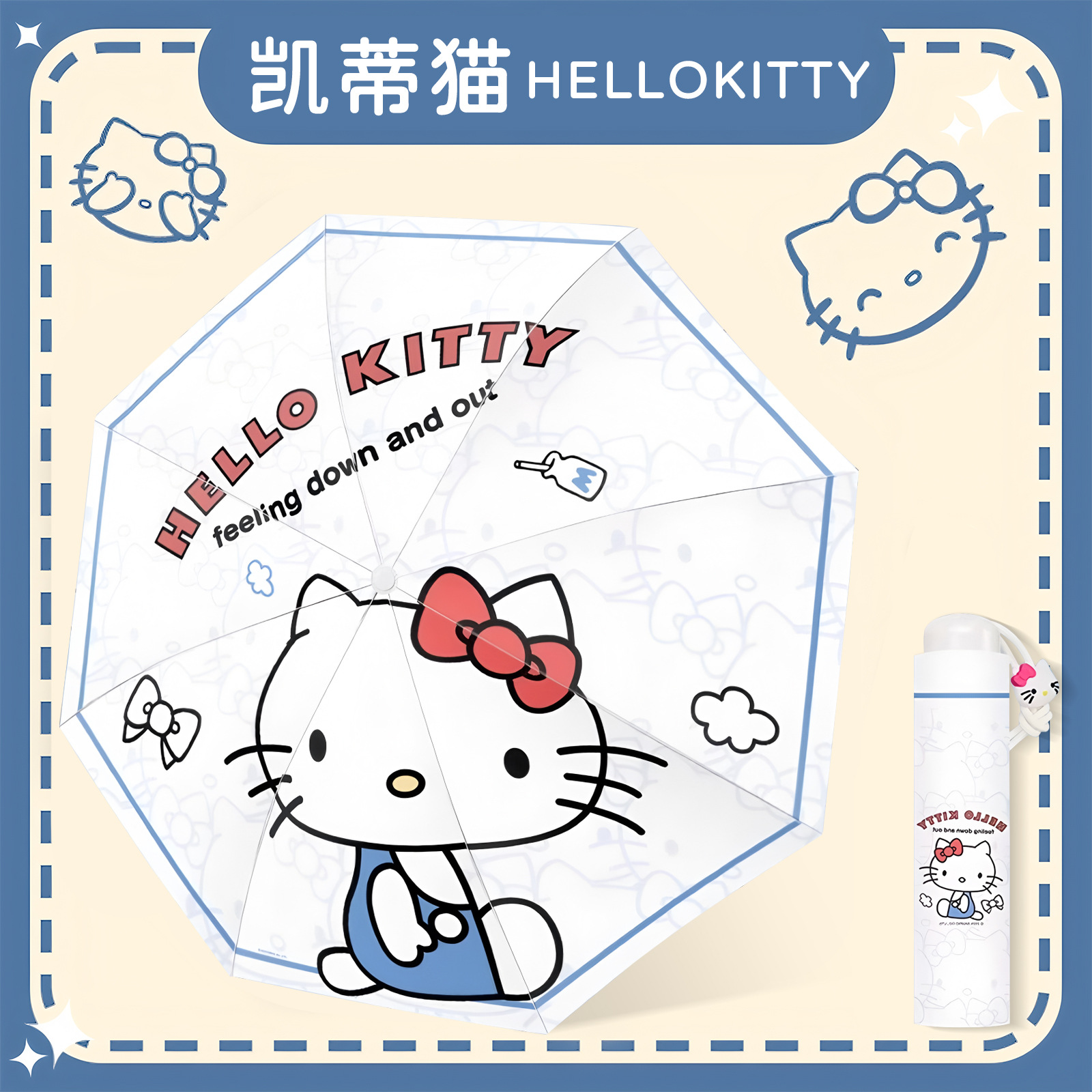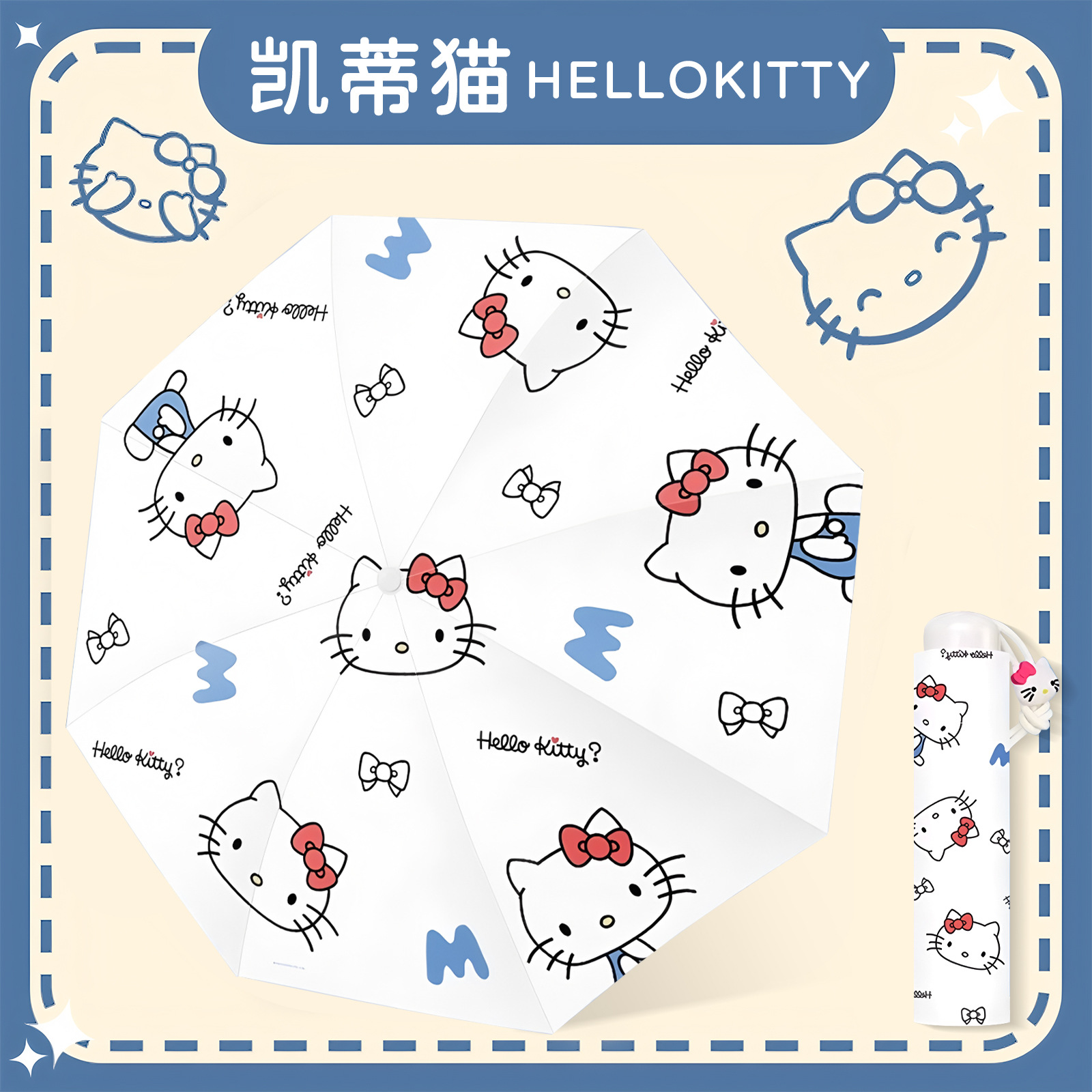 산리오 정품 Kt 고양이 맑고 비 이중 목적 매뉴얼 우산 하이 페이스 값 귀여운 학생 선 스크린 태양 우산스토어 가기