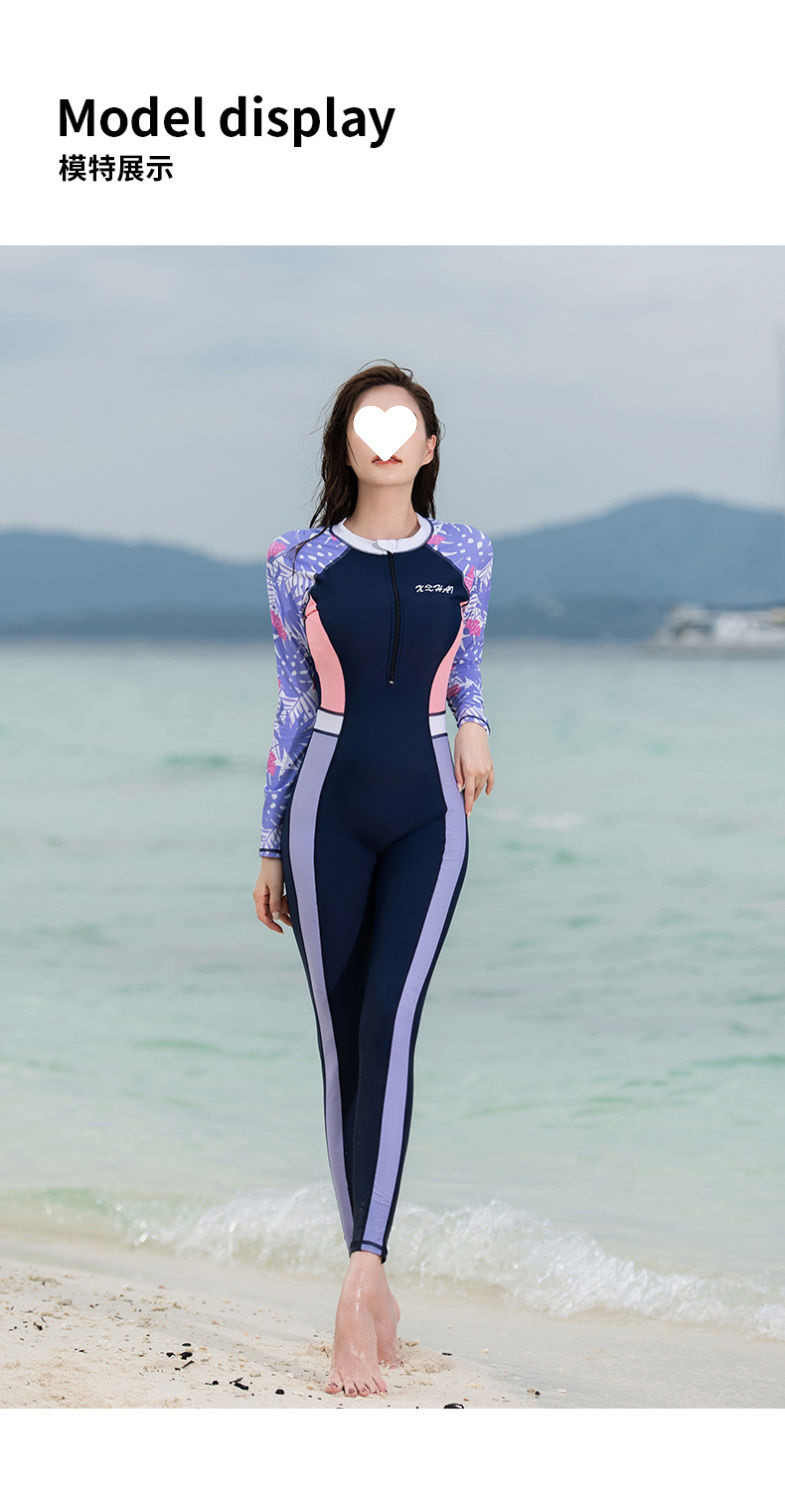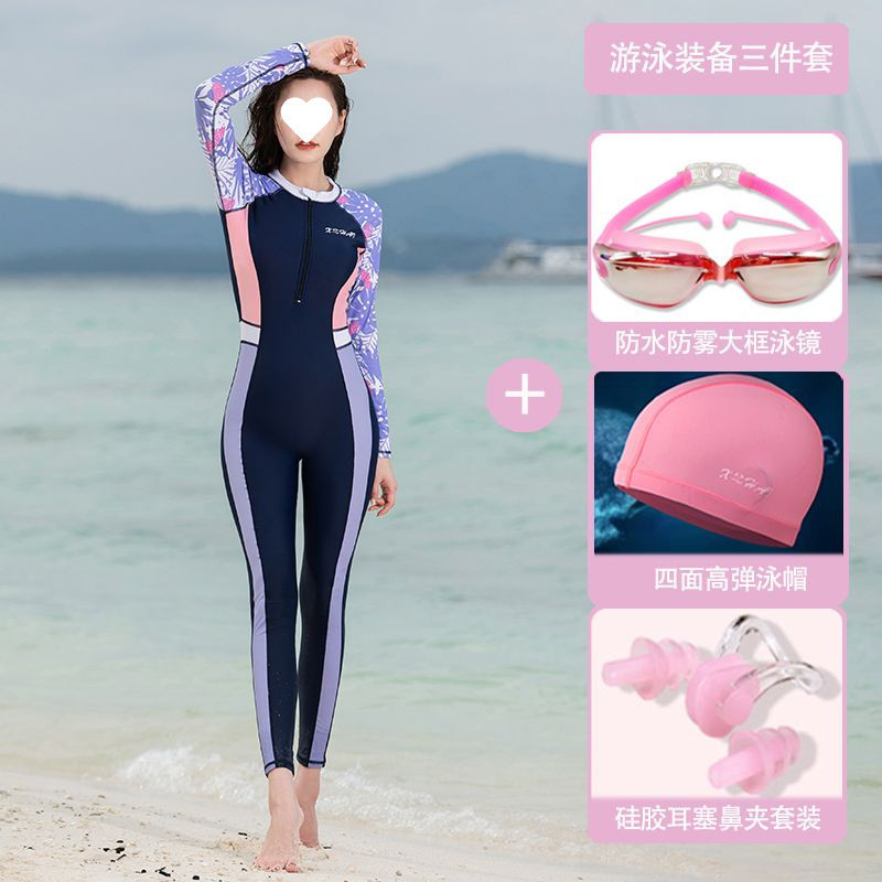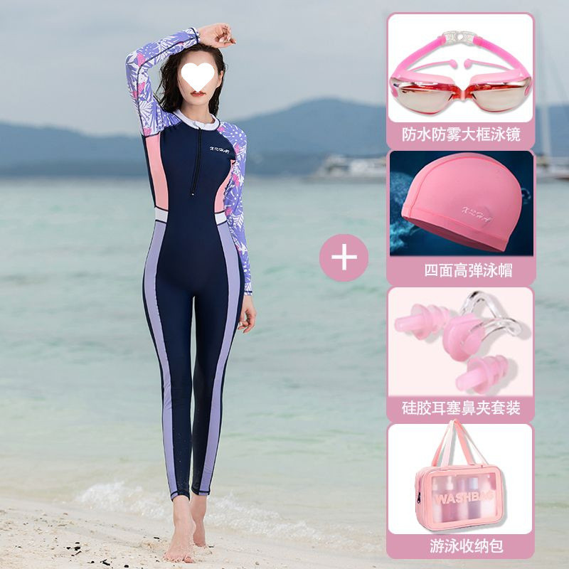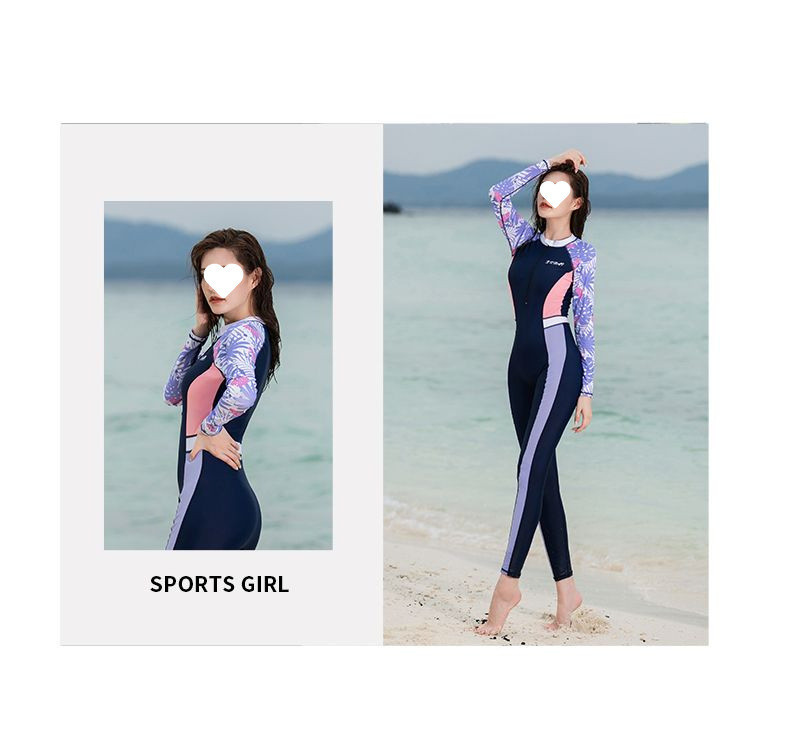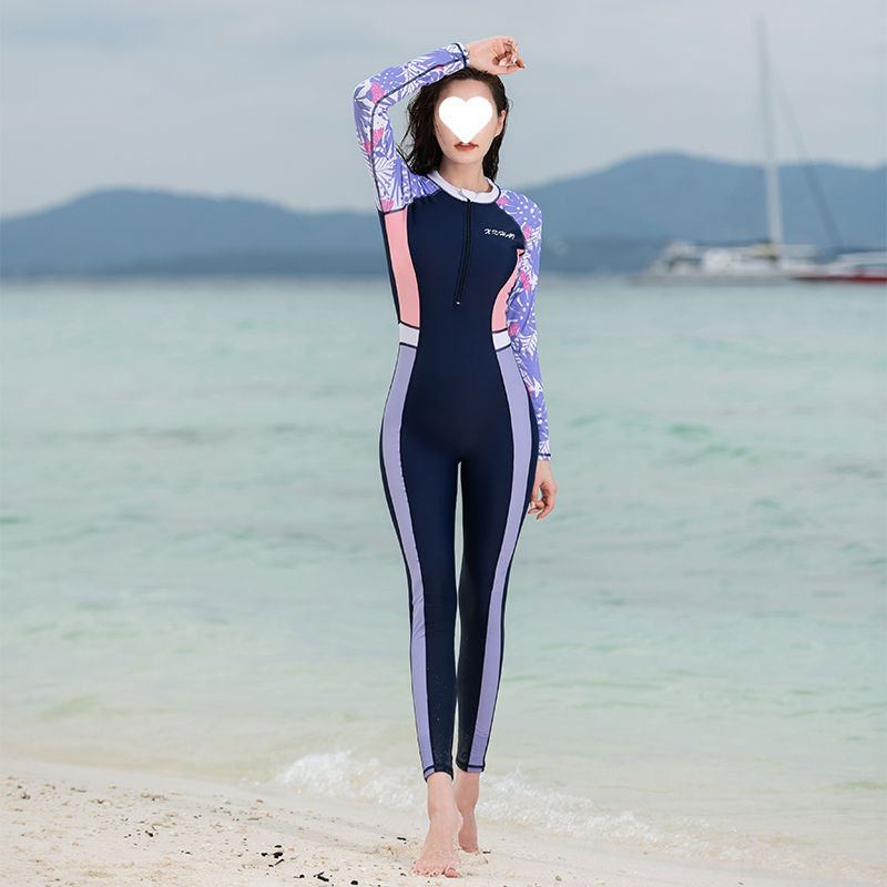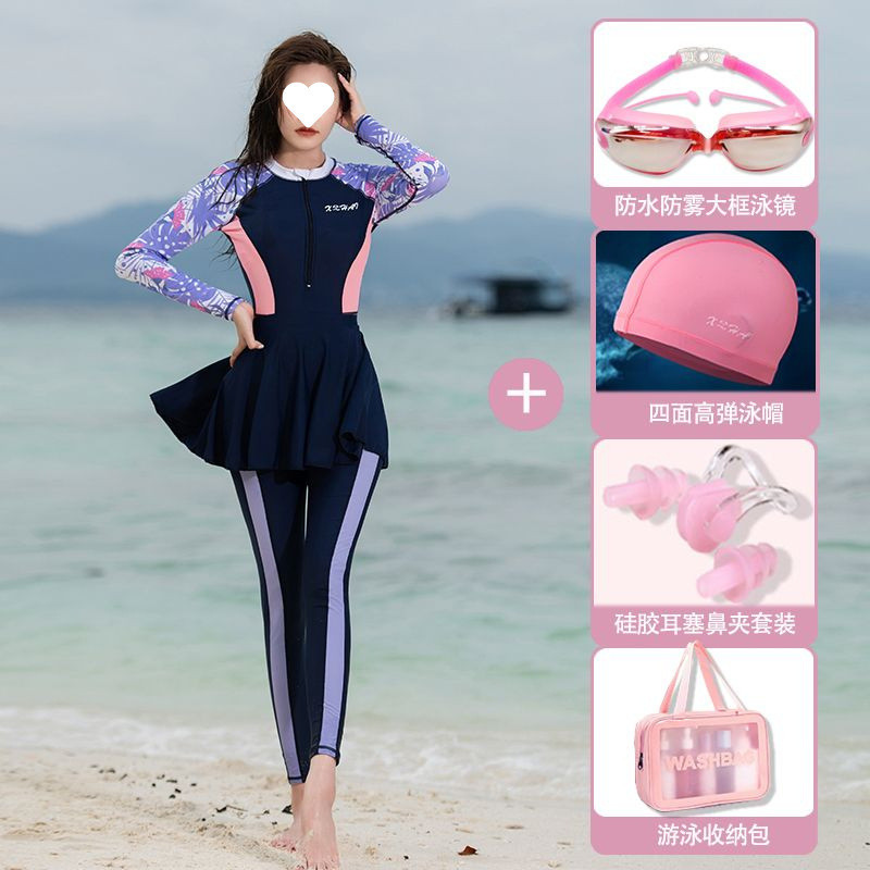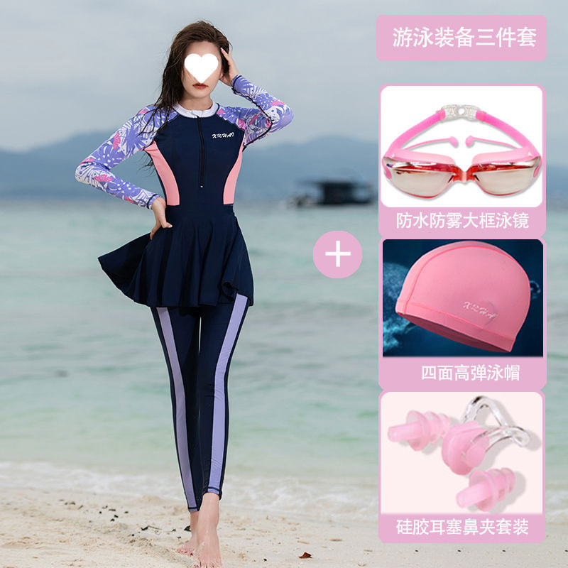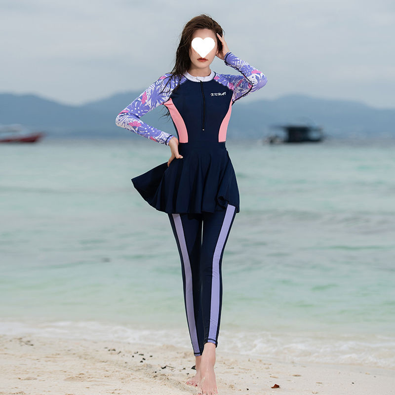 Z5J 수영복 여성용 원피스 긴팔 바지 보수적 자외선 차단 대형 탈착식 스커트 슬리밍 스노클링 서핑 수영