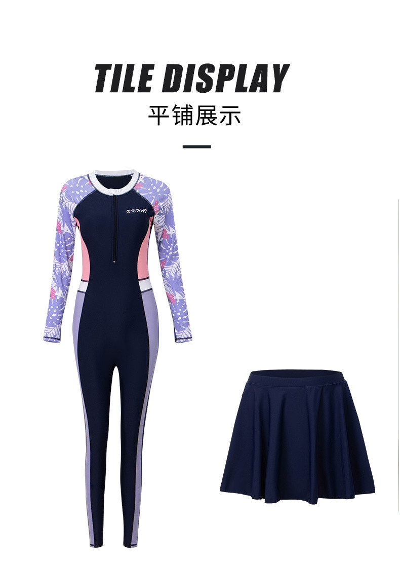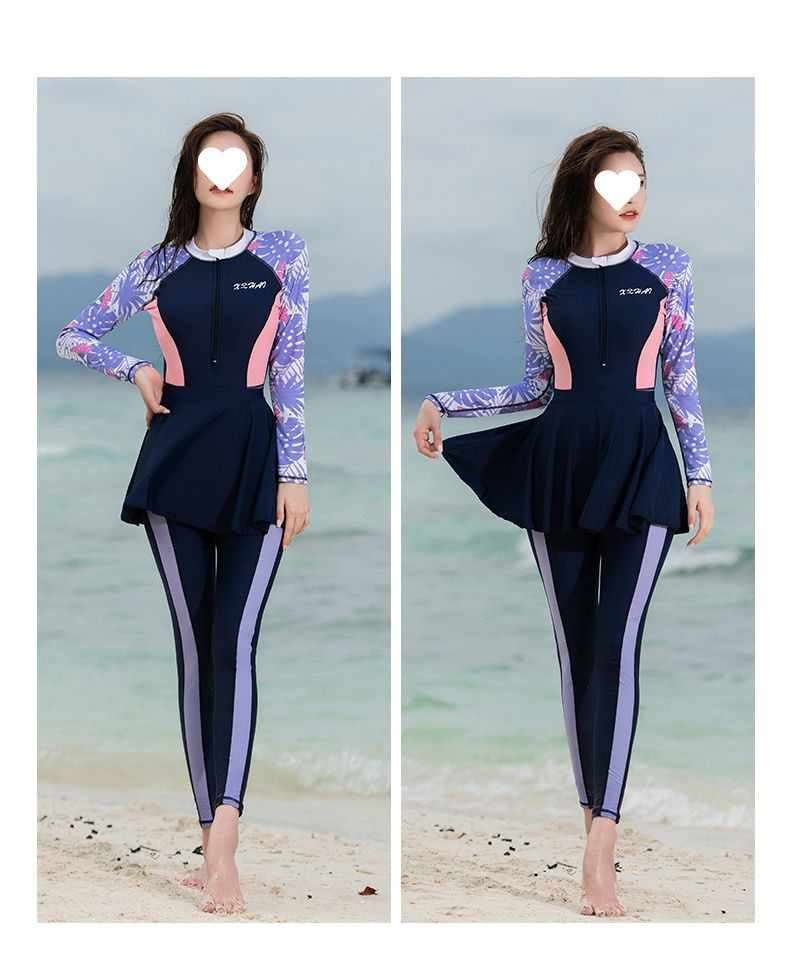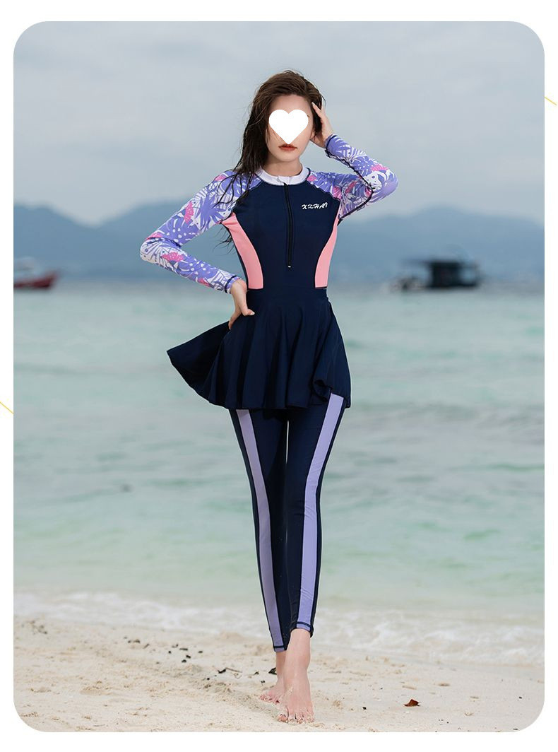 Z5J 수영복 여성용 원피스 긴팔 바지 보수적 자외선 차단 대형 탈착식 스커트 슬리밍 스노클링 서핑 수영스토어 가기