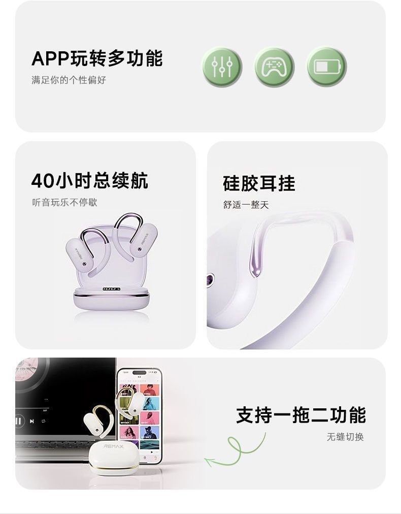 Remax Real Wireless Bluetooth 헤드셋 인 이어 음악 통화 헤드셋 없음 통증 긴 내구성스토어 가기