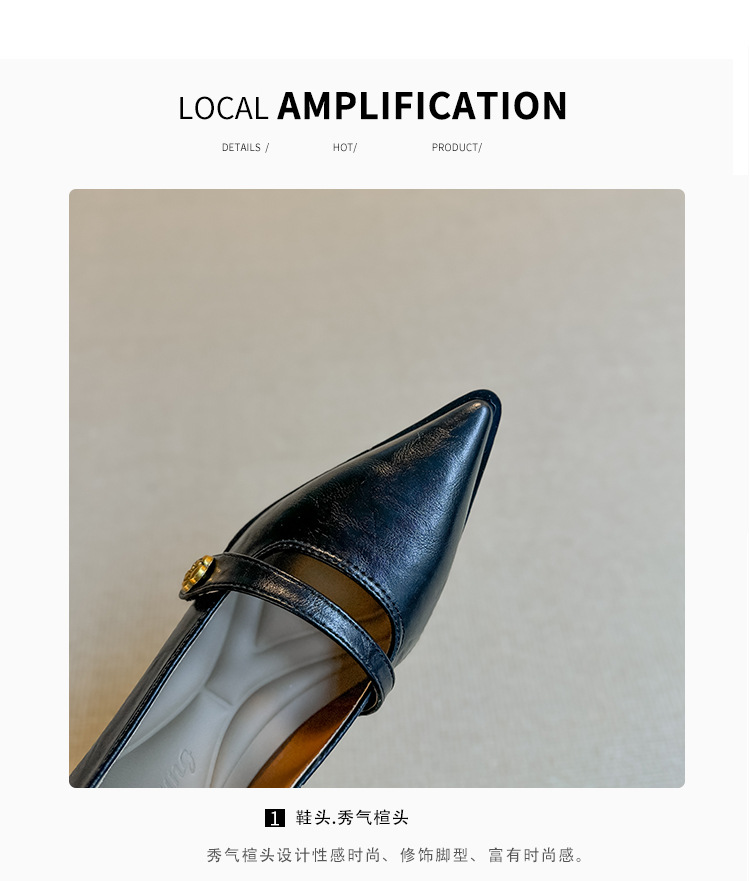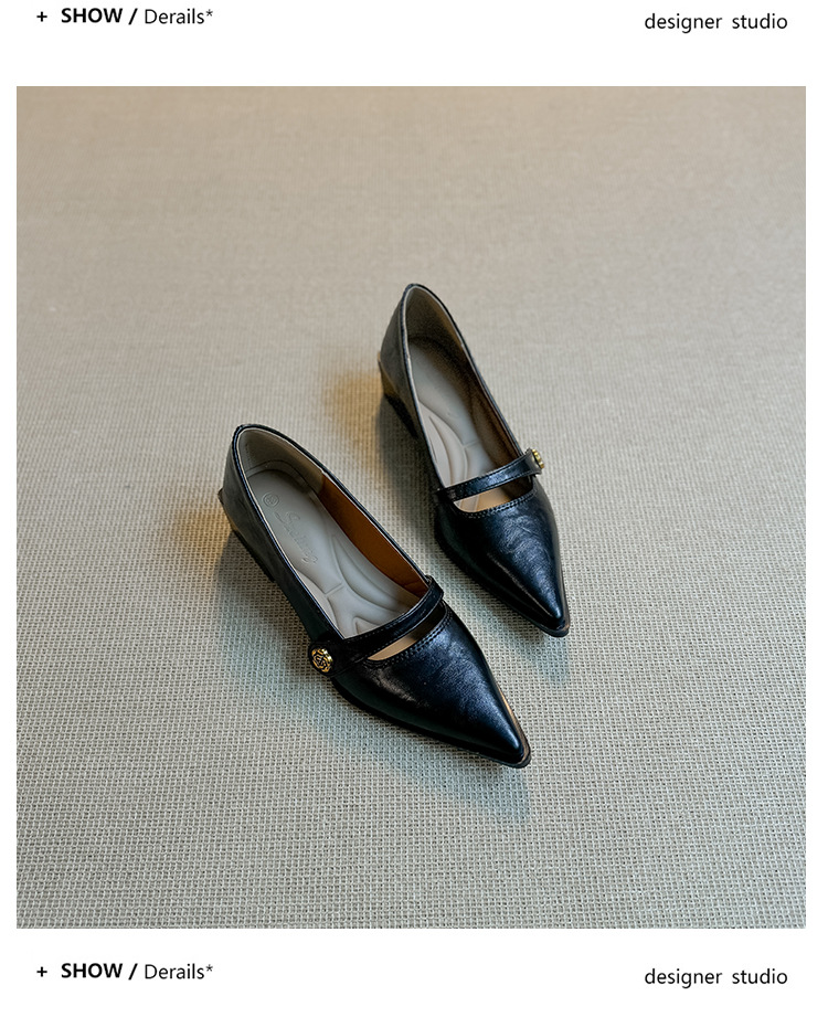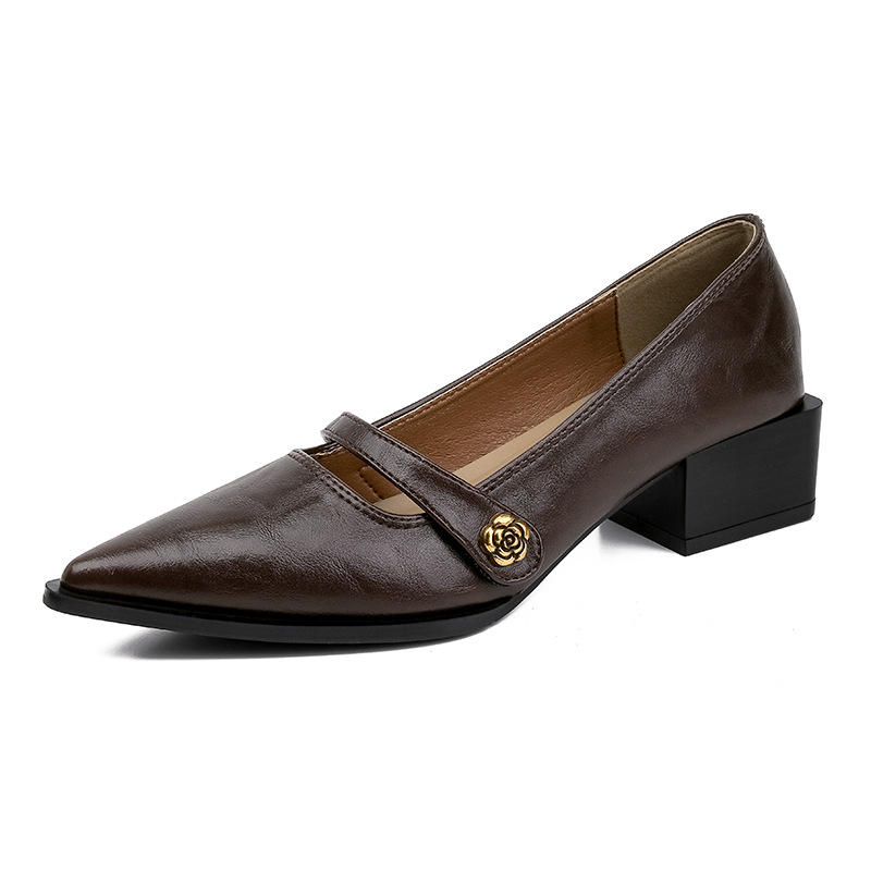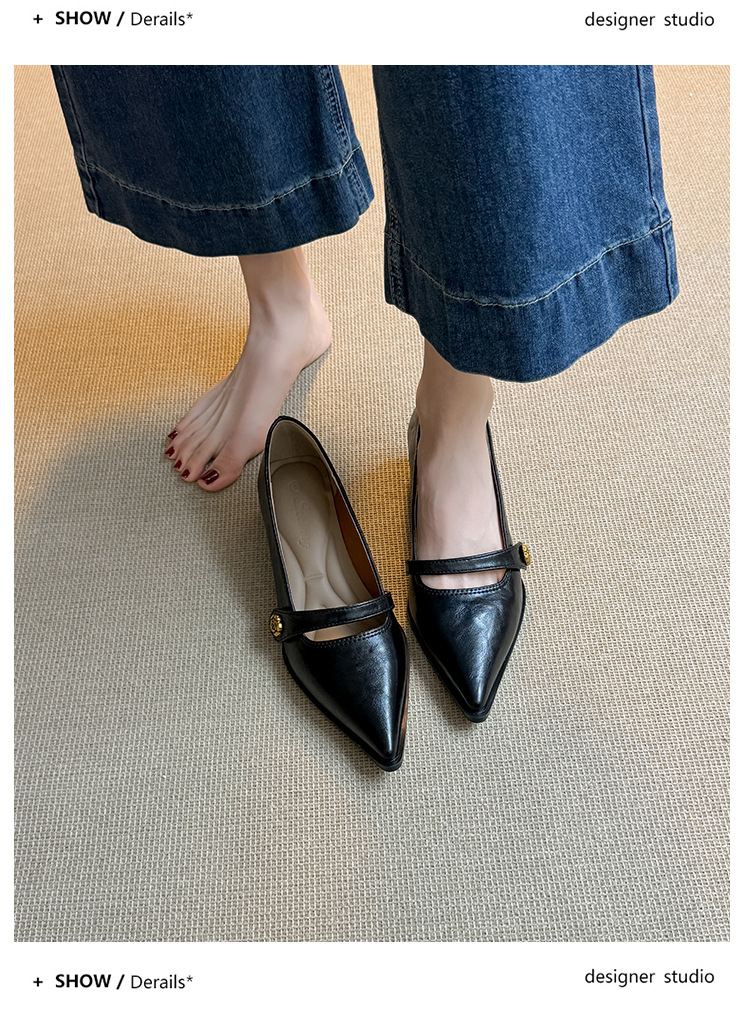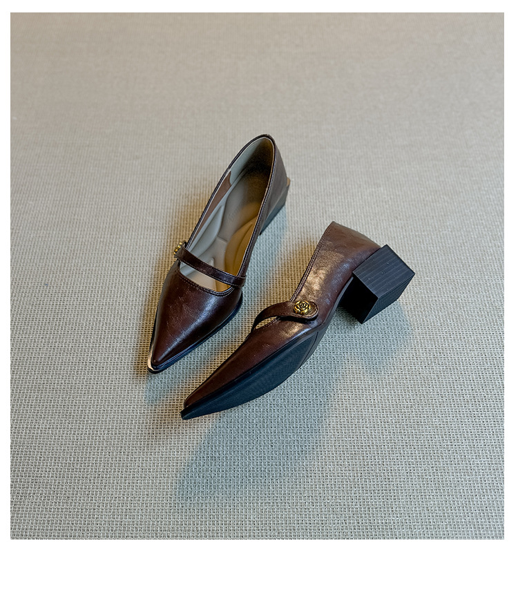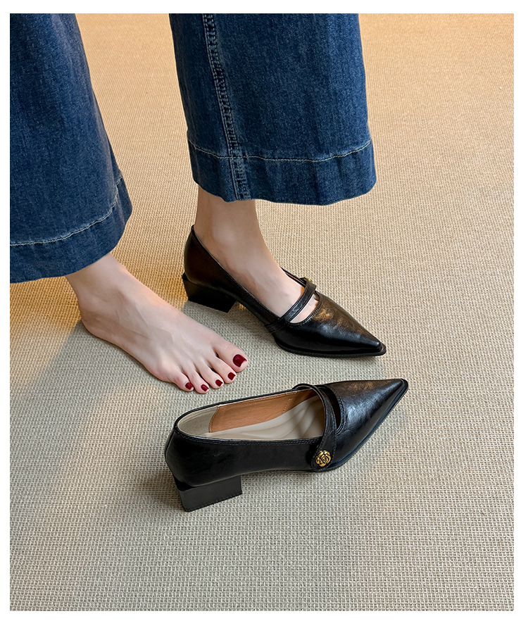 봄, 가을 여성용 뾰족코 얕은 구두, 프렌치 스타일, 아름다운 복고풍, 다용도, 두꺼운 굽, 중간 굽, 패셔너블한 여성화스토어 가기