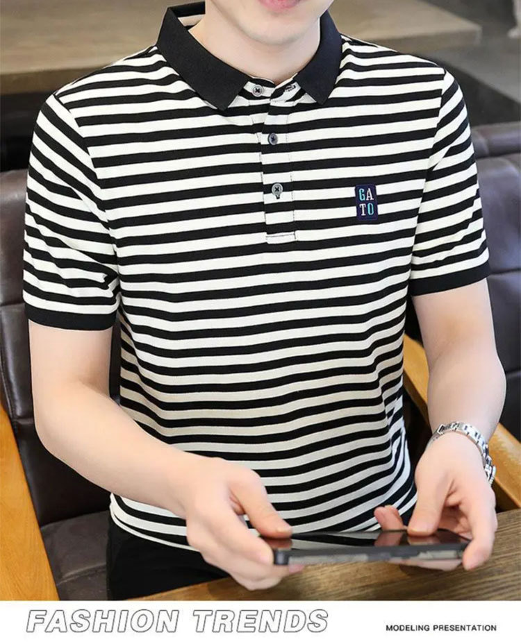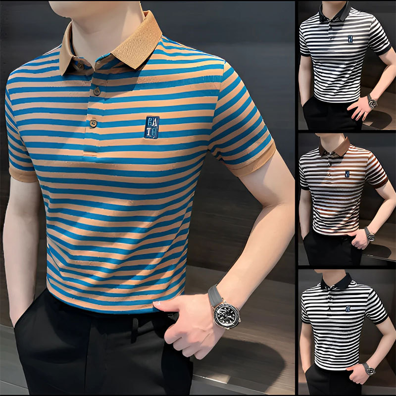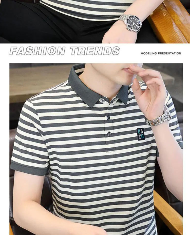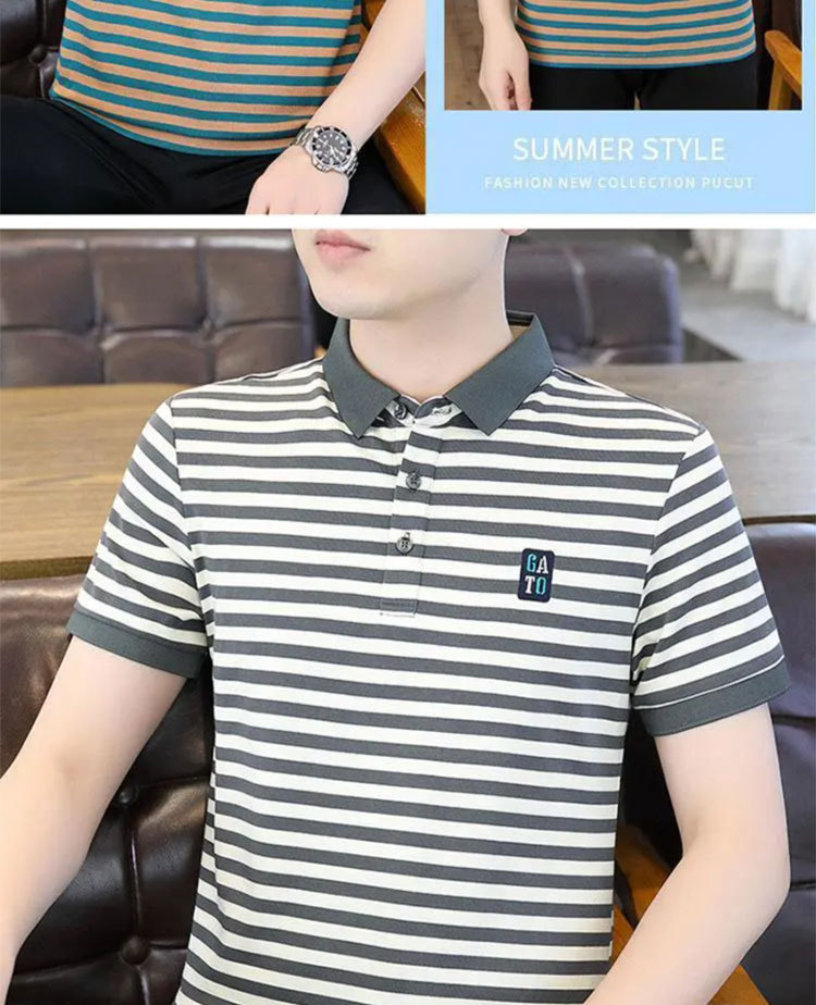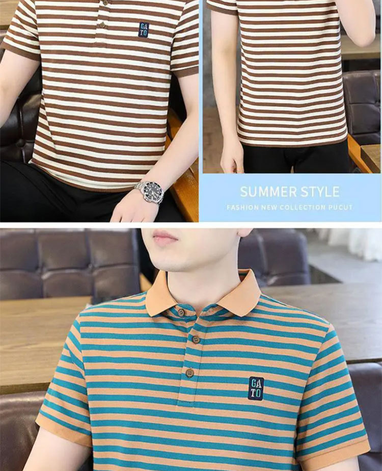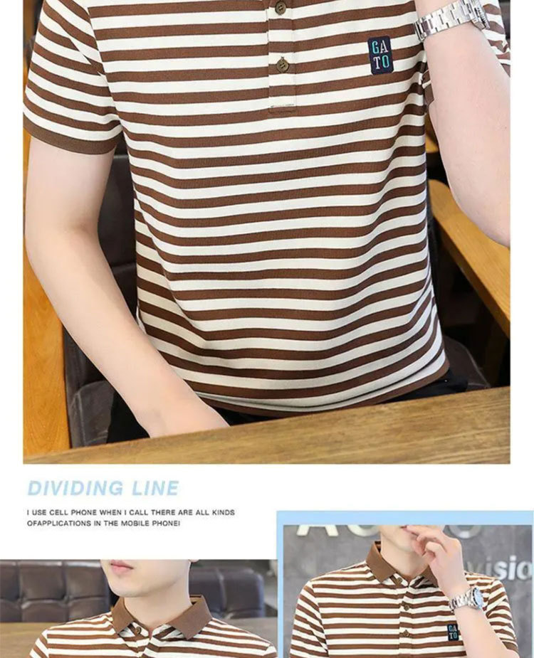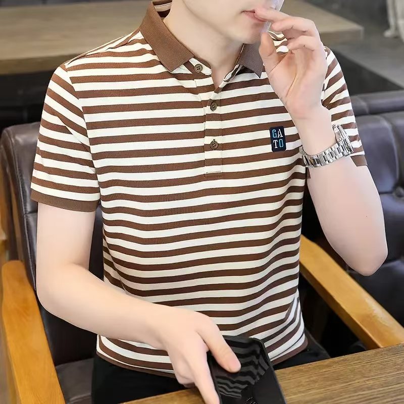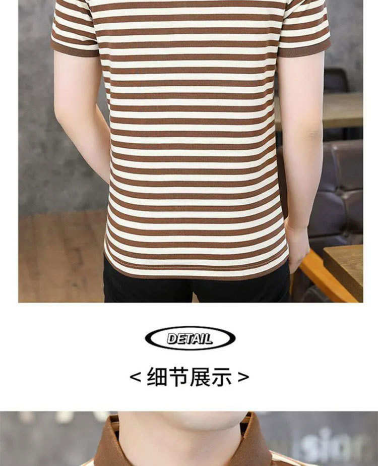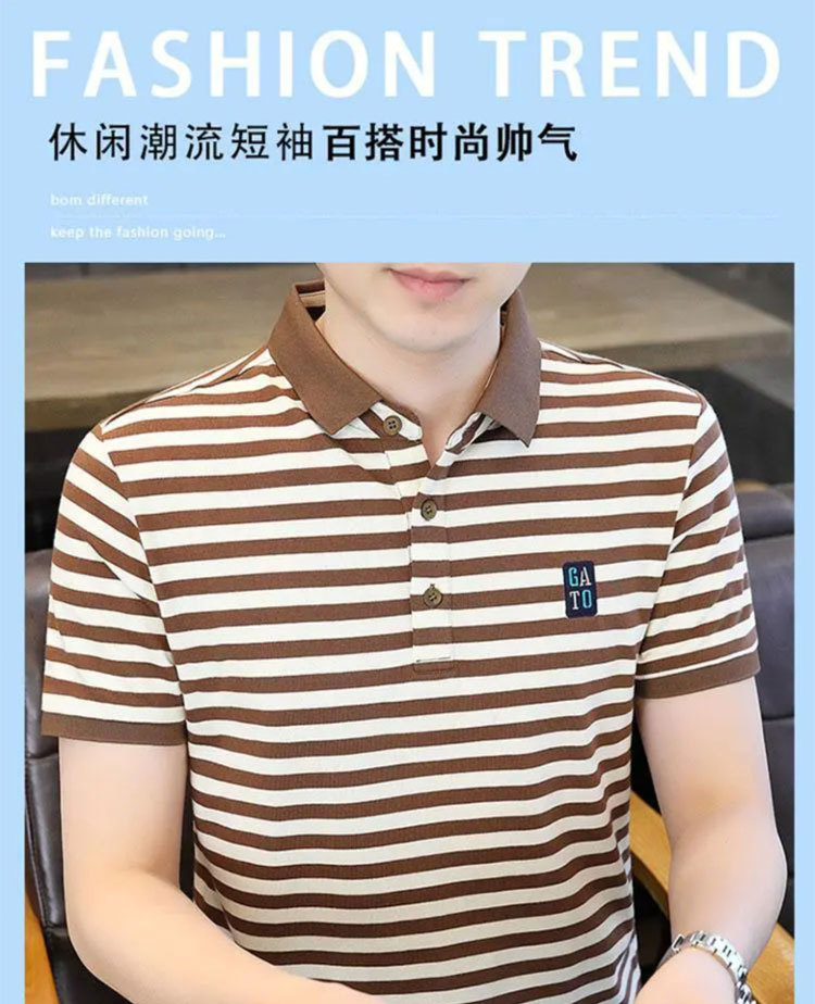 Moyao 남성 카운터 패션 스트라이프 대비 컬러 폴로 셔츠 남성 반팔 여름 하이 엔드 잘 생긴 옷깃 티셔츠스토어 가기