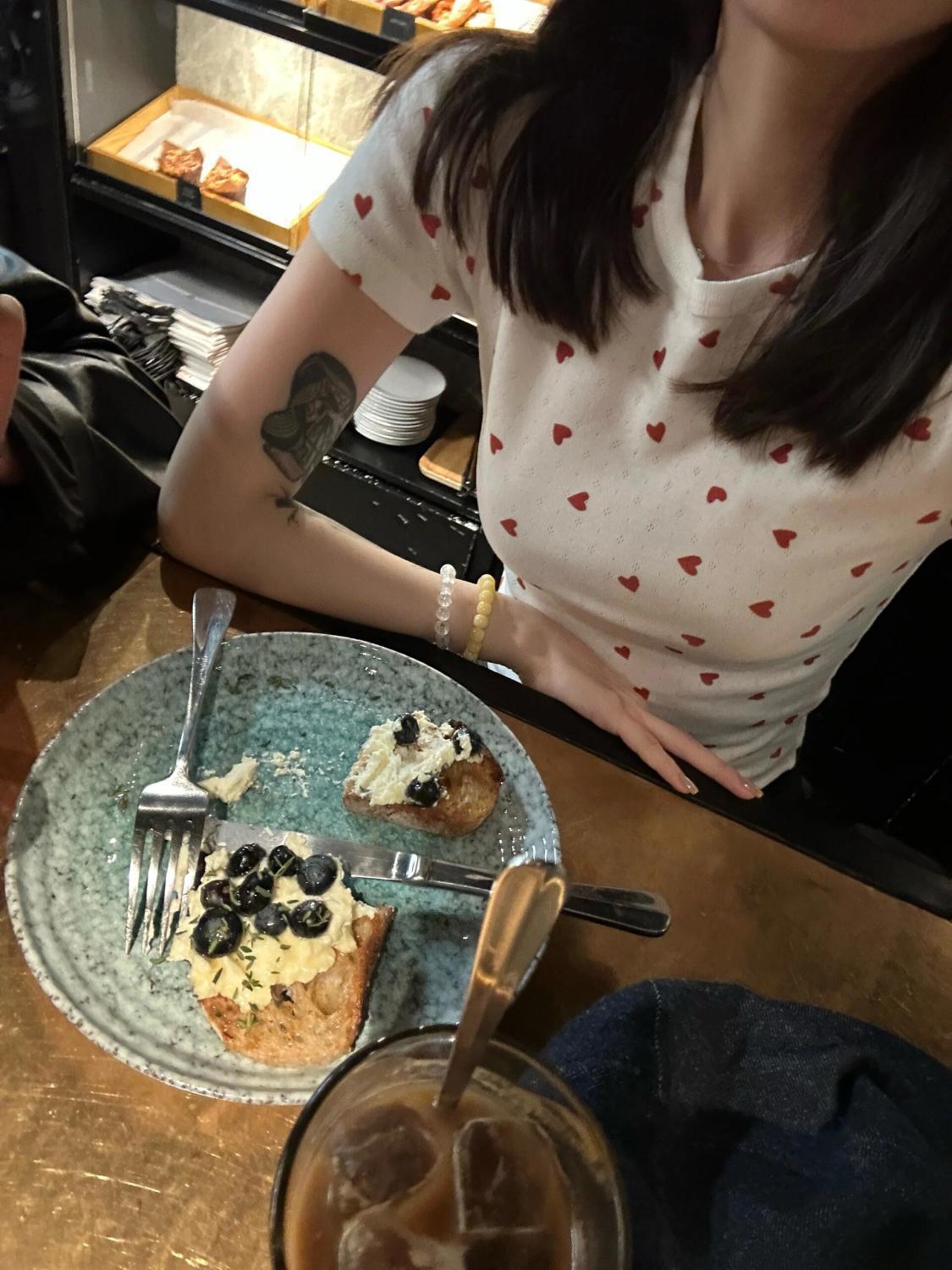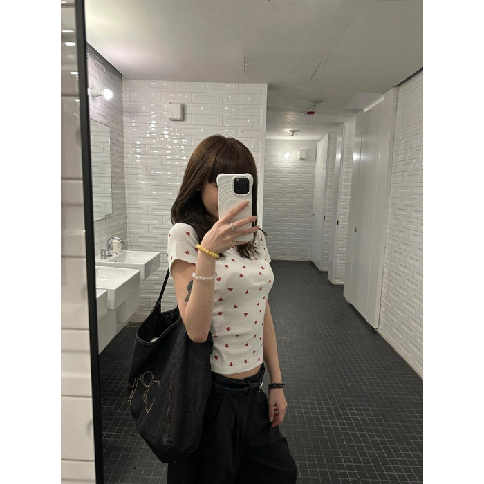[오리지널 원단] 러브 프린트 반팔 티셔츠 여성 오른쪽 어깨 슬림 숏탑 화이트 아메리칸 핫걸