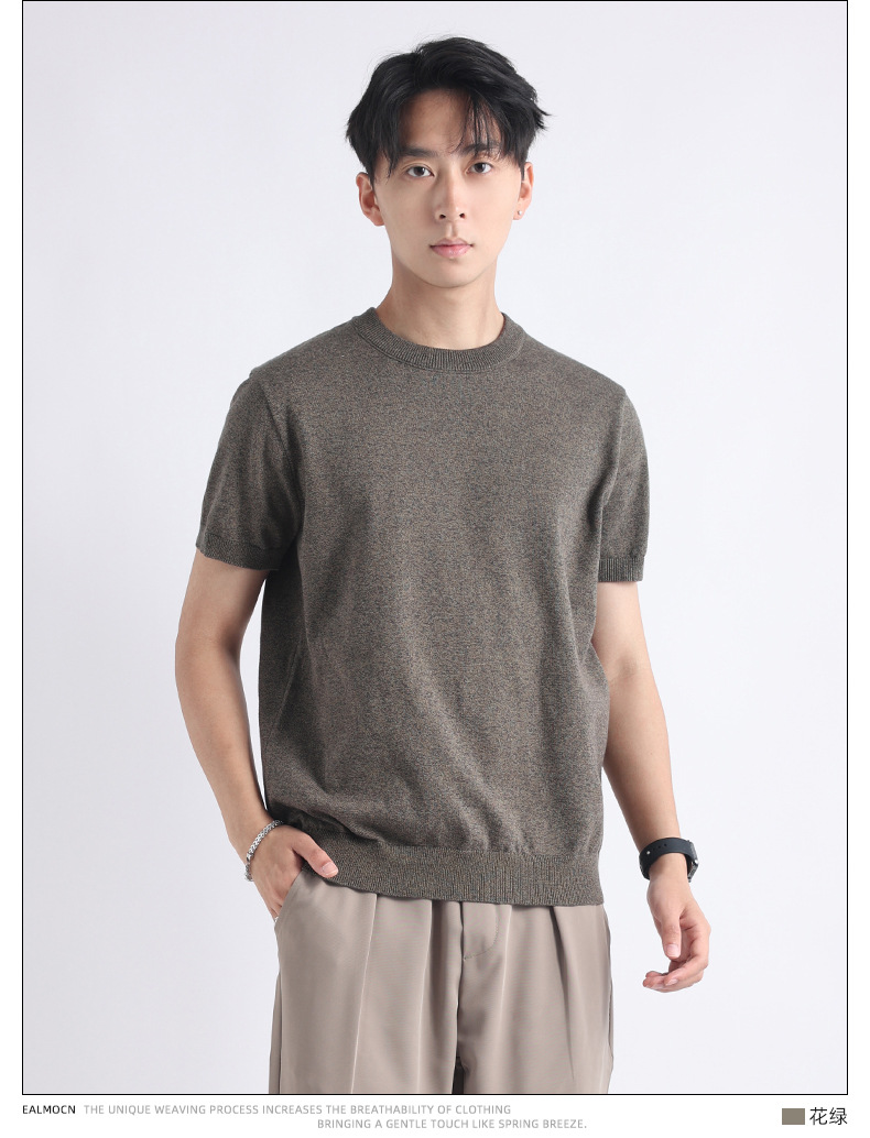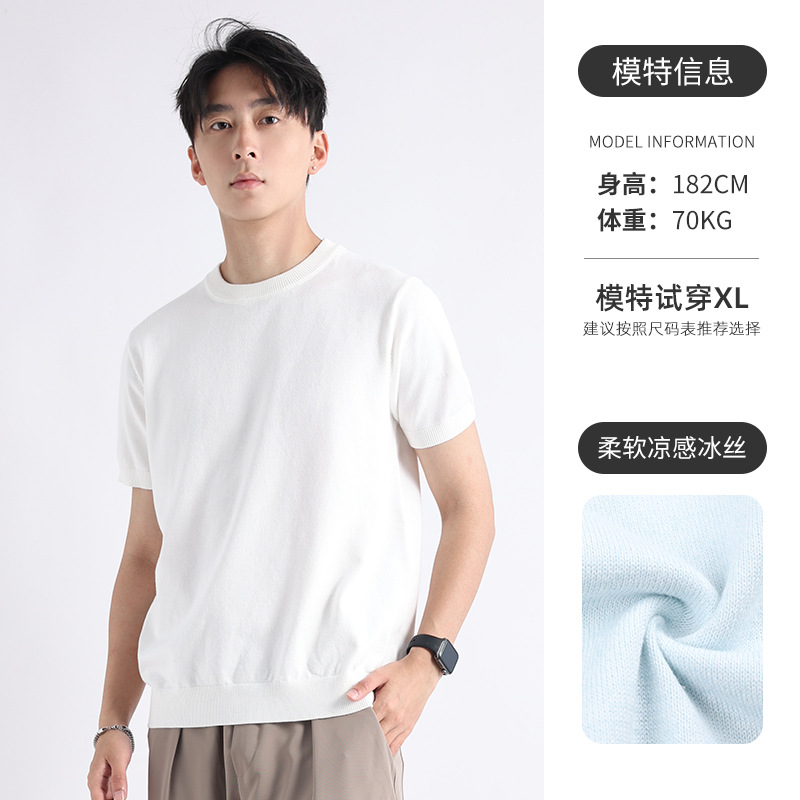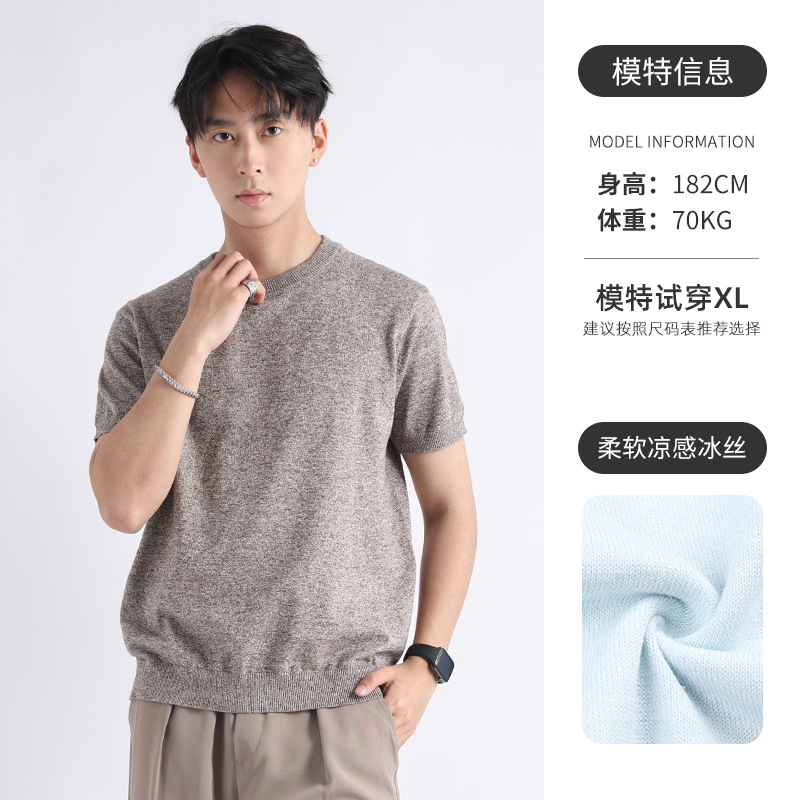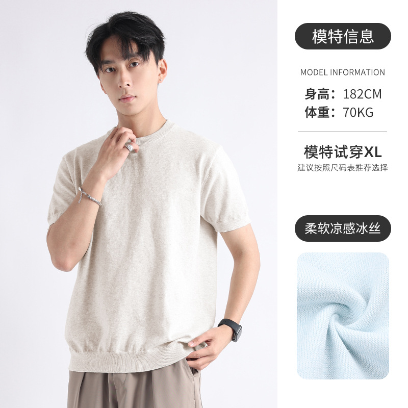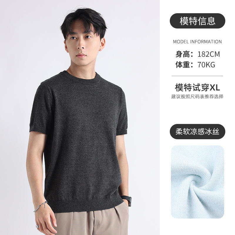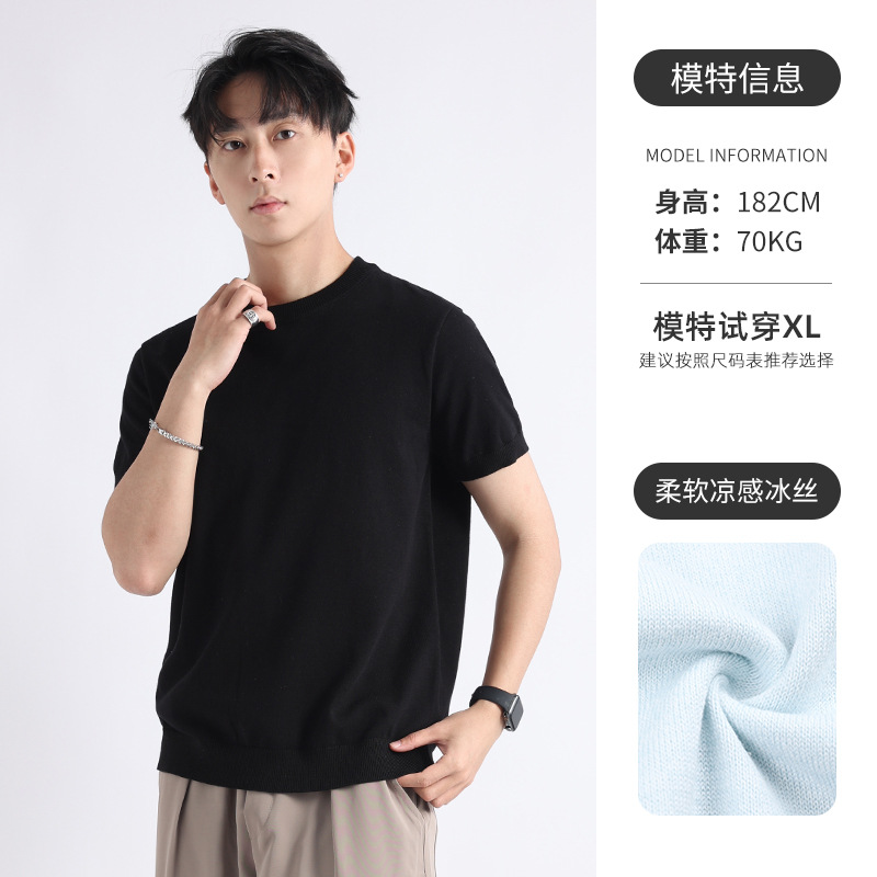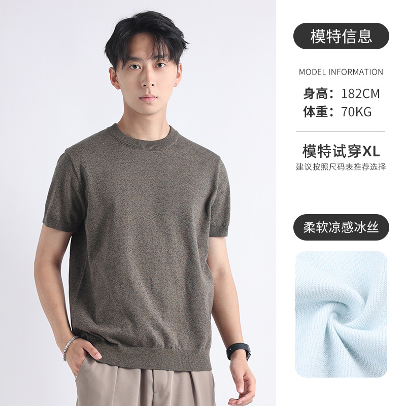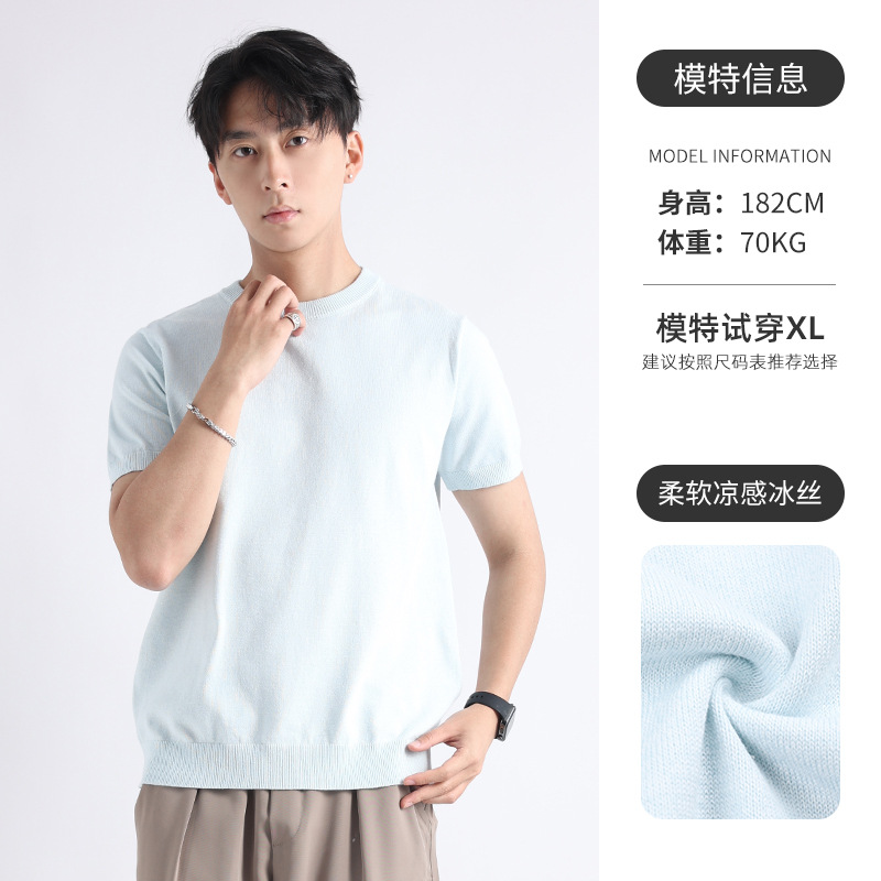 니트 남성 반팔 트렌디 남성 티셔츠 2025 뉴 남성 피트니스 캐주얼 남성 하이 엔드 남성복