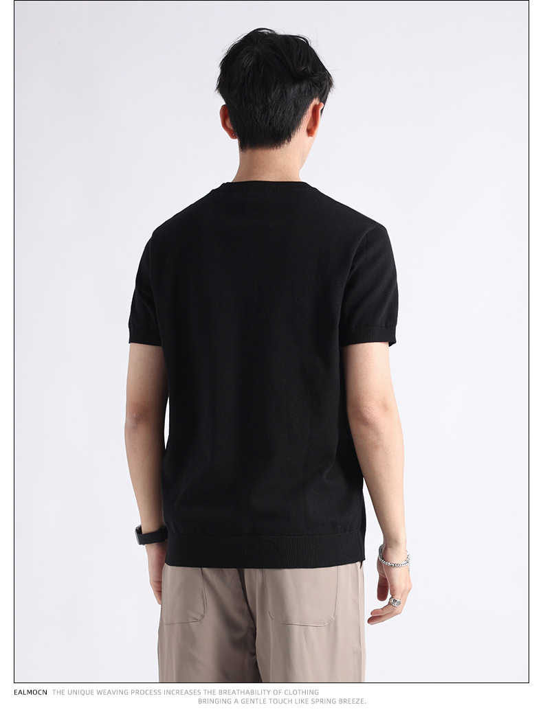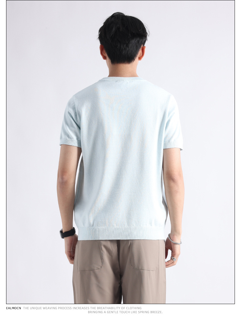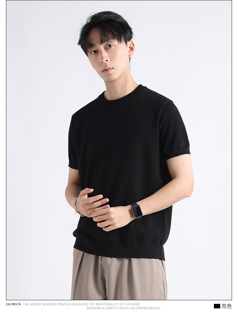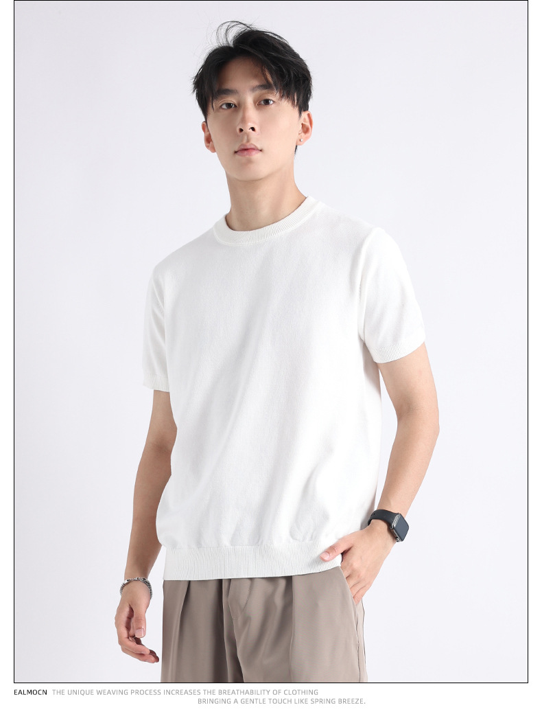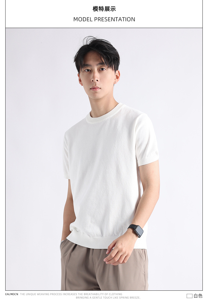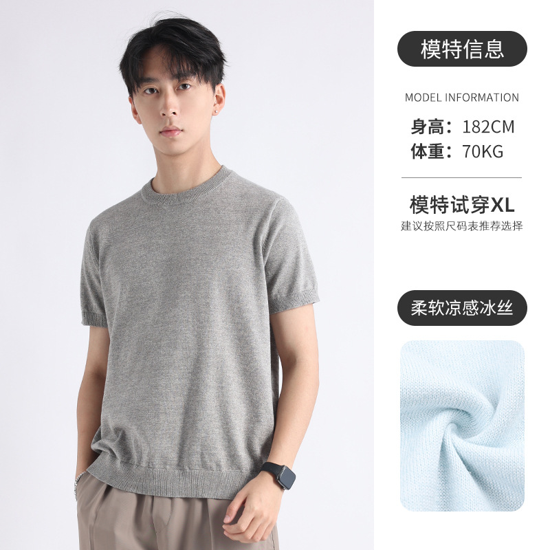 니트 남성 반팔 트렌디 남성 티셔츠 2025 뉴 남성 피트니스 캐주얼 남성 하이 엔드 남성복