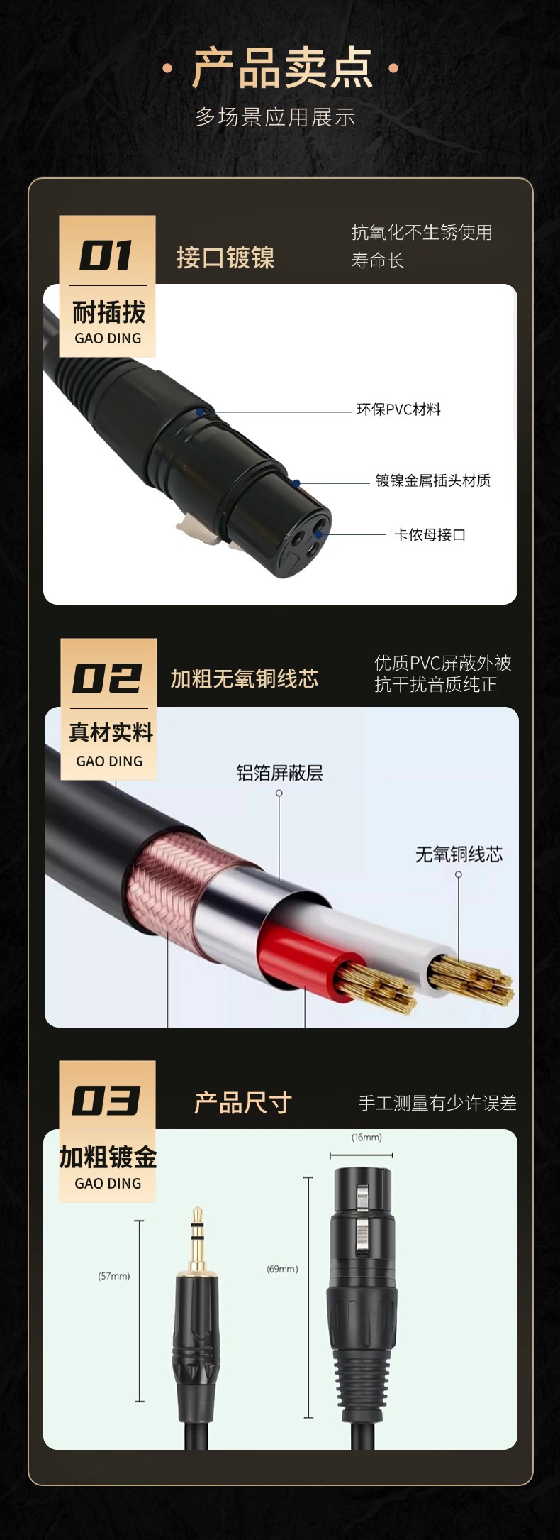 국경 간 3.5mm 캐논 남성-여성 오디오 케이블 48V 휴대 전화 사운드 카드 마이크 마이크 믹서 오디오 케이블