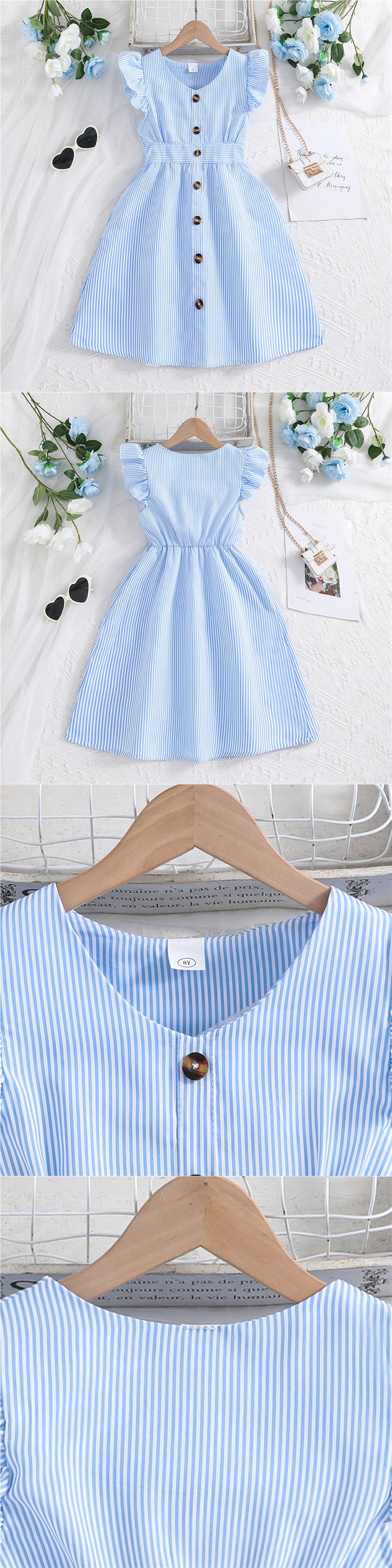 여성 중대형 아동복 대외 무역 어린이 원피스 2025 여름 새로운 스타일리스트 플라잉 슬리브 스트라이프 공주 원피스 배치 트렌드스토어 가기