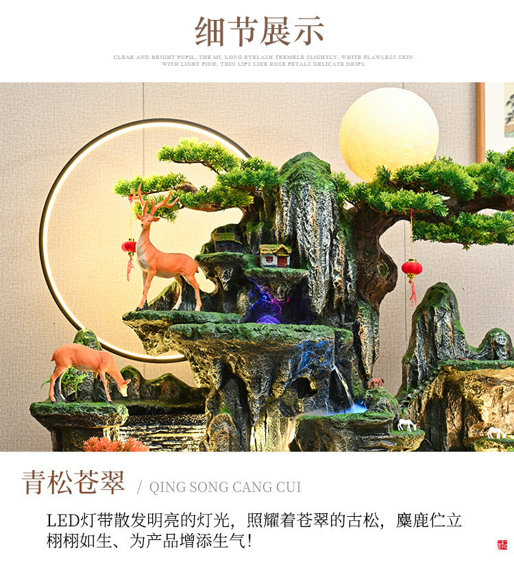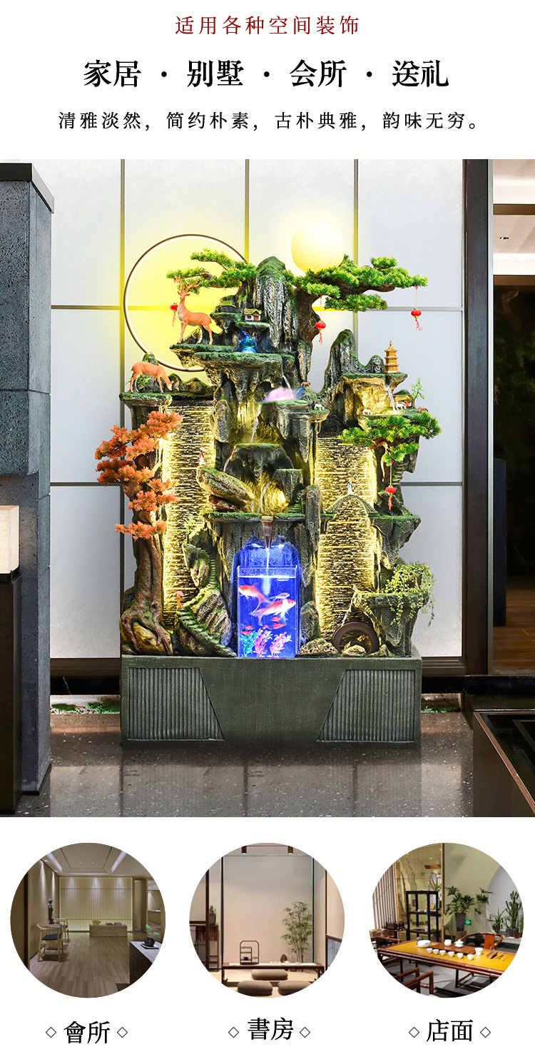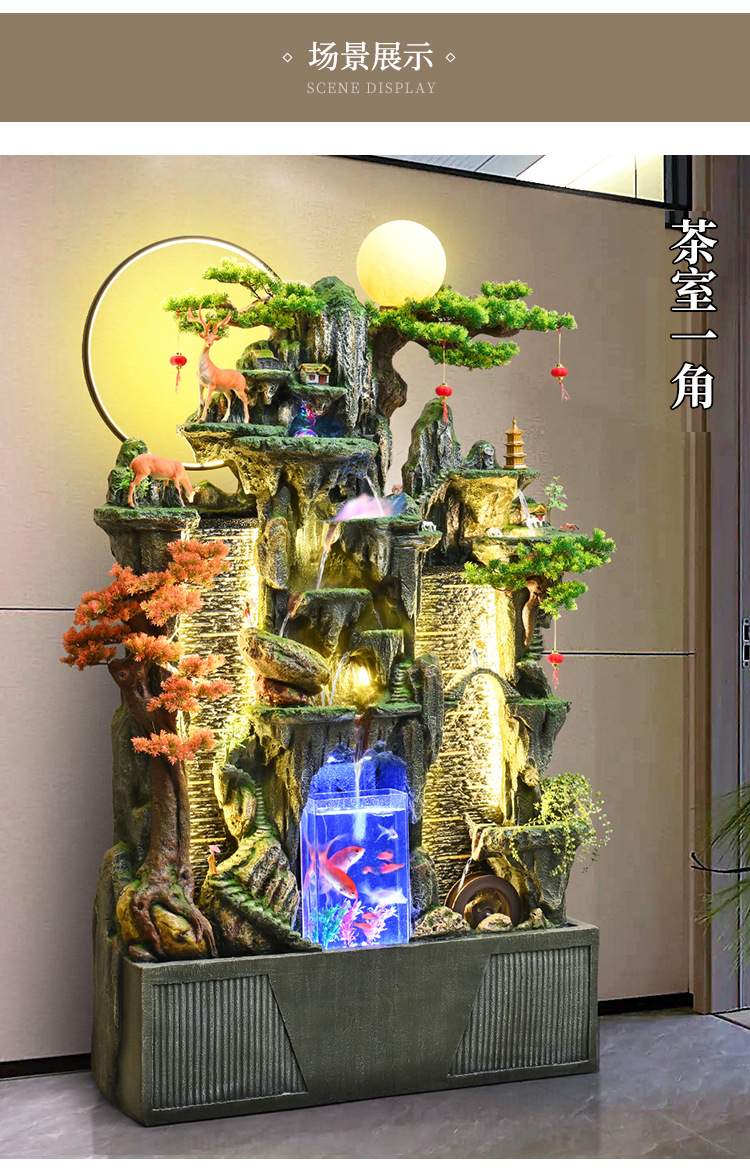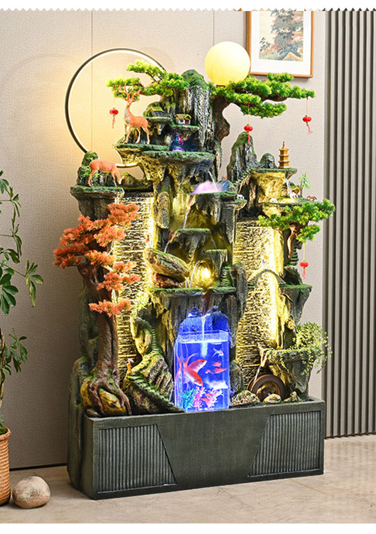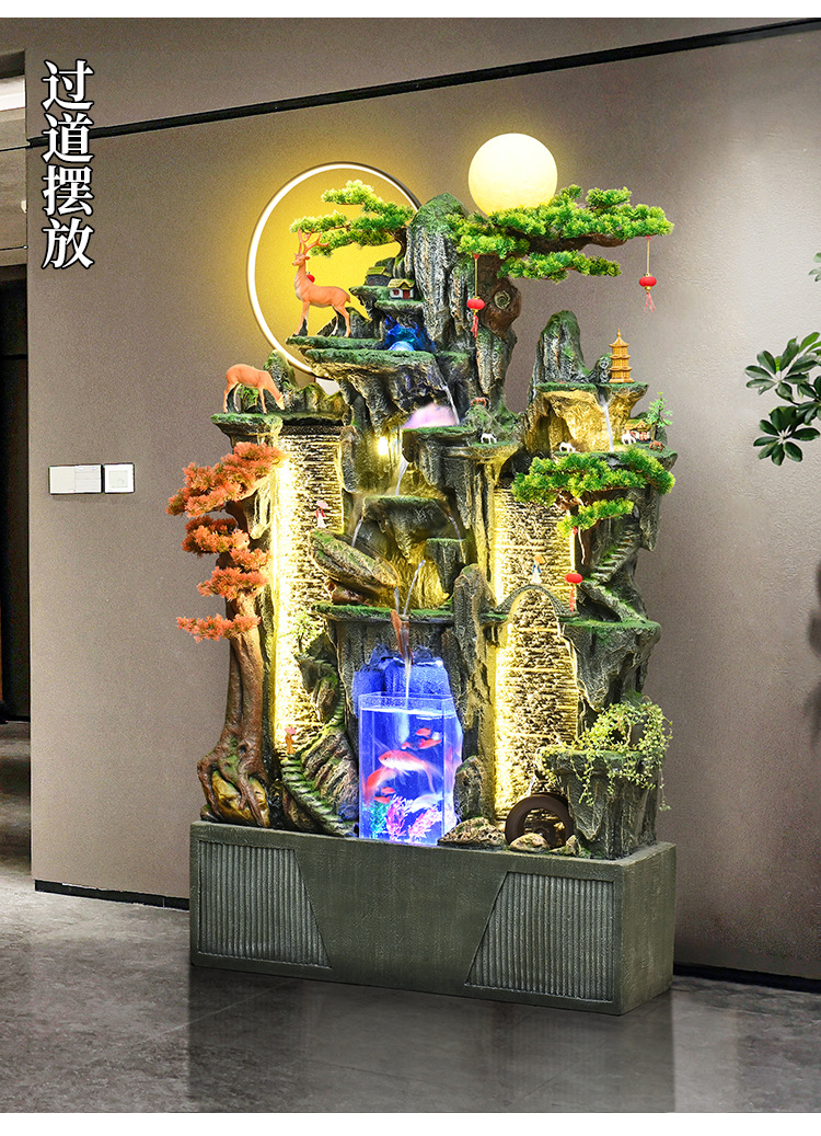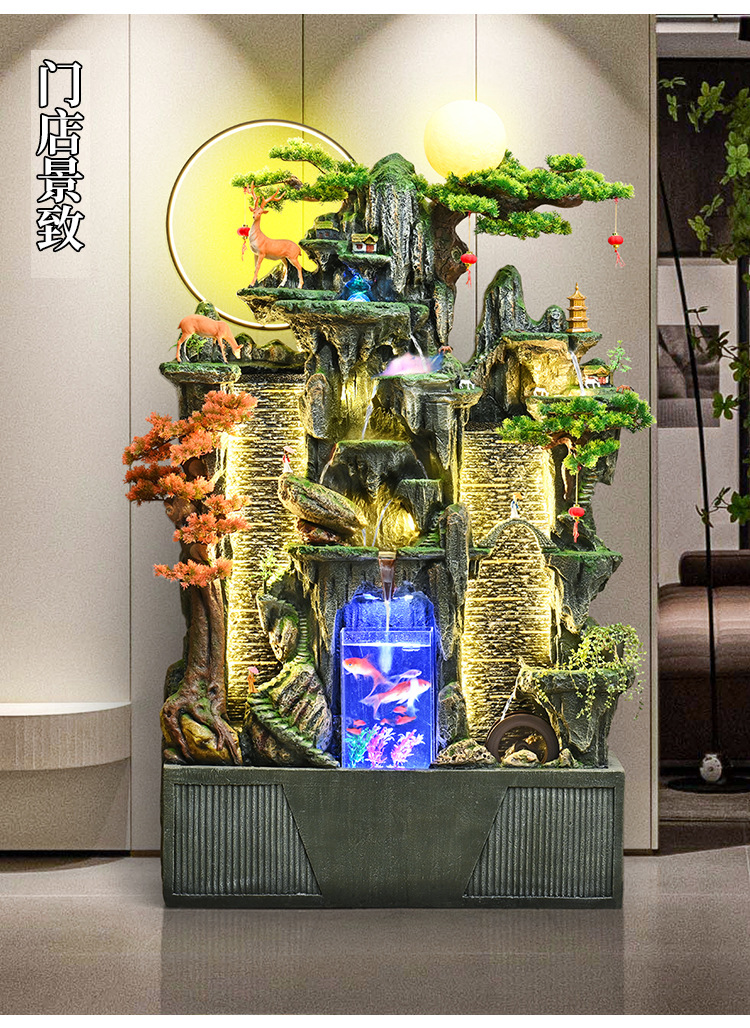 바닥부터 시작된 석가대, 흐르는 물 분수, 순환하는 물, 거실, 사무실, 연못, 풍수 휠, 풍경, 산 폭포 장식품
